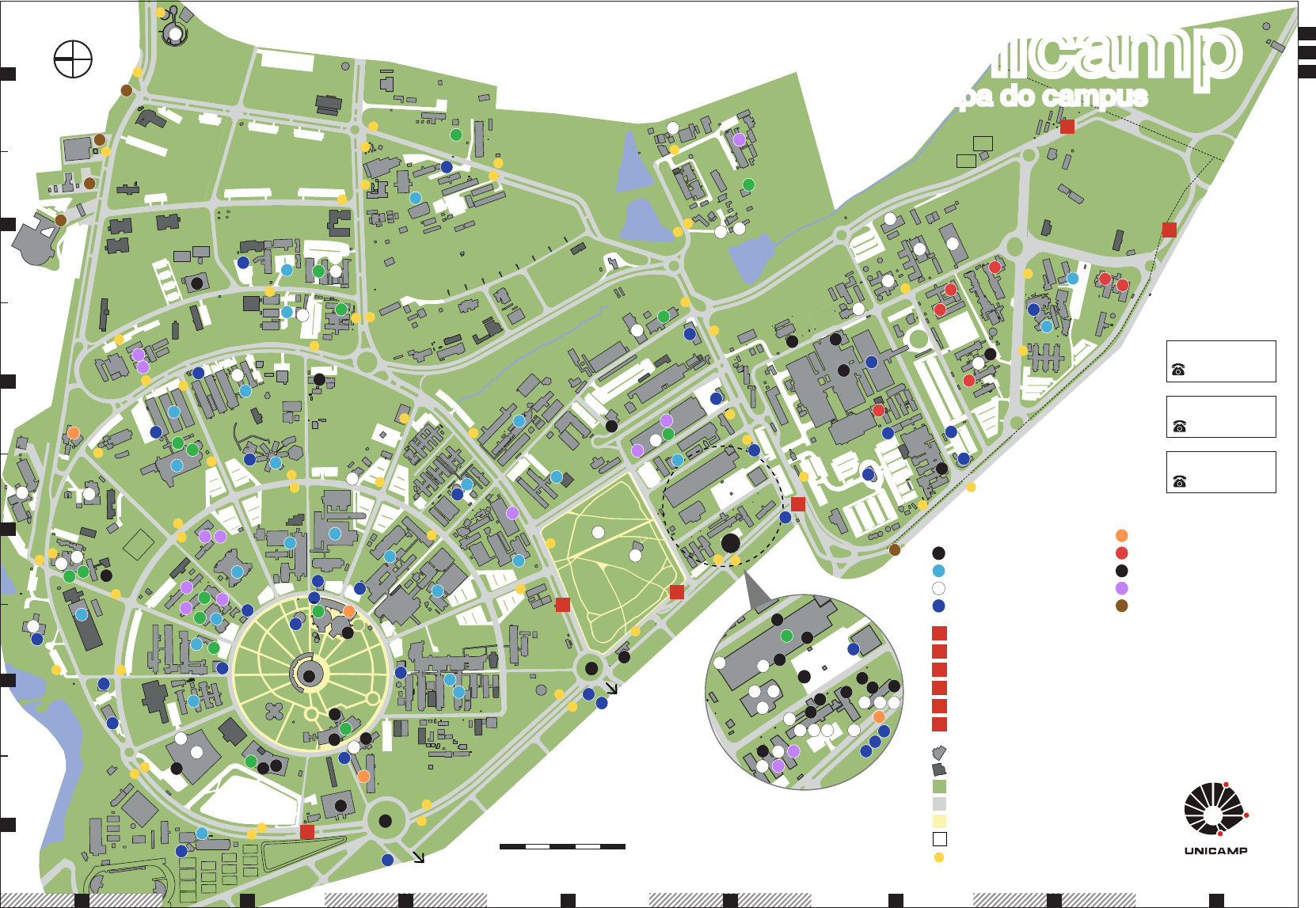 N m 0 50 150 250 m 0 50 150 250 1 53 72 64 8 A C B D E F Informações (019) 3521 7000 Portaria 1 - “Avenida 1” - Av. Dr. Romeu Tórtima Portaria 2 - “Avenida 2” - Av. Prof. Atílio Martini Portaria 3 - Av. Albert Einstein Portaria 4 - Av. Adolfo Lutz Portaria 5 - Av. Pref. José Roberto Magalhães Teixeira Portaria 6 - Av. Guilherme Campos Edifícios existentes Edifícios em reforma Áreas Verdes Ruas Caminho de pedestre Estacionamentos Pontos de ônibus Pronto Socorro (019) 3521 8770 Vigilância (019) 3521 6000 Pontos de Referência Faculdades e Institutos Unidades Administrativas Bancos e serviços Entidades e Associações Centros e Áreas de Saúde Outros Centros Núcleos Conexões externas 1 2 3 4 5 6 1 4 2 5 9 7 6 10 12 19 14 21 26 16 24 17 25 27 11 18 13 22 20 15 23 8 27 26 3 29 30 28 31 1 4 7 9 10 12 15 7 20 21 21 18 18 19 16 17 14 13 7 8 6 5 3 2 19 11 1 4 2 5 9 7 3 6 10 8 12 11 29 22 28 21 31 39 18 13 14 15 16 17 18 19 20 23 24 25 26 27 32 33 34 36 37 38 35 12 30 1 4 5 9 7 2 6 10 11 8 16 14 34 17 21 23 26 29 19 2225 18 24 27 31 30 32 35 33 28 3 15 13 12 20 1 3 2 4 1 2 3 10 4 5 6 7 8 9 11 12 13 14 16 15 17 1 5 9 4 8 2 6 3 7 10 12 11 13 1 5 2 3 4 1 2 3 4 5 6 1 5 4 2 6 3 7 Av. Albert Einstein Rua 6 de Agosto Rua O swaldo Cruz Av . E ric o V erí ss im o “A ve nid a 1 ” - Av . D r. R om eu Tó rtim a Av. Erico Veríssim o Ru a R ox o M ore ira Ru a d a R eito ria Ru a d os Fla mb oya nts Ru a J oão Pa ndi á C aló ger as Ru a C ând ido Po rtin ari Ru a B ern ard o S ayã o R. Paulo Anna Bobbio R. Josiah W illard G ibbs Ru a J osu é d e C ast ro Rua 5 d e J unh o Av . A do lfo Lu tz Rua Ca rlos Ch aga s Av. Pr ef. Jos é R obe rto Ma gal hãe s R ua A lb er t S ab in Ru a Al ex an dr e Fl em in g Ru a Vi ta l B ra sil Av. Ja me s M axw ell Rua Mo nteir o Lo bato Ru a M en de le ye v R ua L ev L an da uRua Pitágoras Rua Corá Rua Elis Re gina Rua Cláudio Ábramo Av. An tôn io d a C ost a S ant os Rua Daniel Hogan Rua Walter August Hadler R ua D r. A nd ré T os el lo Av. Cândido Rondon Av. Erico Veríssimo Av. A lbert Einstein Rua Sérgio Buarque de Holanda Av . B er tra nd R us se l Av . A la n Tu rin g Rua Carlos Gomes Rua Tessália Vieira de Camargo Rua Carl Von Linaeus Rua Sat urino de B rito “A ve nid a 2 ” - Av . P rof . A tíli o M art ini Ru a N ico las Le on ard S ad i C arn ot R. Je an B ap tis te Jo se ph Fo uri er R ua O sc ar N ie m ey er Rua Michel Debru n unicamp mapa do campus 1 1 1 1 5 5 5 9 9 1 4 4 4 4 8 8 4 2 2 2 2 6 6 6 2 5 5 9 9 7 7 3 3 3 3 7 7 7 3 6 6 10 10 12 19 12 14 21 22 25 29 31 26 30 16 27 17 24 28 14 17 20 23 26 32 29 35 38 11 18 11 13 20 13 16 19 22 25 31 28 34 37 36 15 23 15 18 21 24 27 33 30 39 8 8 Núcleos NEA - Núcleo de Economia Agrícola [C2] NEE - Núcleo de Estudos Estratégicos [C2] NEIT - Núcleo de Economia Industrial e da Tecnologia [C2] NEPA - Núcleo de Estudos e Pesquisas em Alimentação [C4] NEPAM - Núcleo de Est. e Pesquisas Ambientais [D5] NEPO - Núcleo de Estudos da População [D1] NEPP - Núcleo de Estudos de Políticas Públicas [D1] NICS - Núcleo de Comunicação Sonora [C5] NIED - Núcleo de Informática Aplic. à Educação [C4] NIPE - Núcleo Interdisciplinar de Planejamento Energético [C2] NMCE - Núcleo de Medicina e Cirurgia Experimental [F5] NUDECRI - Núcleo de Desenvolv. da Criatividade (LABEURB/ LABJOR) [C5] PAGU - Núcleo de Estudos de Gênero Pagu [B2] Unidades Administrativas e de Serviços AEPLAN - Assessoria de Economia e Planejamento [C5] AFPU - Agência de Formação Profissional da UNICAMP [C5] Almoxarifado Central [E6] ASCOM - Assessoria de Comunicação e Imprensa [C5] CDC - Coordenadoria de Desenvolvimento Cultural [B2] CECI - Centro de Convivência Infantil [E6] CGU - Coordenadoria Geral da Universidade/ SIC [C5] COCEN - Coord. de Centros e Núcleos Interdisciplinares de Pesquisa [C5] COMVEST - Comissão Permanente para os Vestibulares [C1] CSS/CECOM - Coordenadoria de Serviços Sociais [D7] DGRH - Diretoria Geral de Recursos Humanos [C5] DMA - Divisão de Meio Ambiente/Prefeitura [F5] EB - Engenharia Básica [D5] Editora da UNICAMP [E5] EMBRAPA - Empresa Brasileira de Pesquisa Agropecuária [E3] Escola Estadual Sérgio Porto Físico [E6] EXTECAMP - Escola de Extensão da UNICAMP [C5] FUNCAMP - Fundação para o Desenvolvimento da UNICAMP [C1] Gráfica Central [D5] INOVA/ INCAMP - Agência de Inovação da UNICAMP [C5] ITCP - Incubadora Tecnológica de Cooperativas Populares [C5] LABEURB - Laboratório de Estudos Urbanos [E5] LABJOR - Laboratório de Estudos Avançados em Jornalismo [C5] LABORARTE - Laboratório de Estudos sobre Ensino de Arte [C3] LAPAC - Lab. de Automação e Prototipagem para Arq. e Construção [D2] Museu Exploratório de Ciências [F2] PRDU - Pró-Reitoria de Desenvolvimento Universitário [C5] PREAC - Pró-Reitoria de Extensão e Assuntos Comunitários [C5] PRG - Pró-Reitoria de Graduação/ CCG [C5] PRODECAD - Prog. de Integ. e Desenv. da Criança e do Adolescente [E6] PRP - Pró-Reitoria de Pesquisa/ FAEPEX [C5] PRPG - Pró-Reitoria de Pós-Graduação/ CCPG [D6] RTV UNICAMP - Rádio e TV da UNICAMP [D2] SAPPE - Serviço de Apoio Psic. e Psiq. ao Estudante da UNICAMP [B3] SIARQ - Arquivo Central do Sistema de Arquivos da UNICAMP [C1] Faculdades e Institutos FENF - Faculdade de Enfermagem [E7] FCF - Faculdades de Ciências Farmacêuticas [B3] FCM - Faculdade de Ciências Médicas [D7] FE - Faculdade de Educação [C2] FEA - Faculdade de Engenharia de Alimentos [C4] FEAGRI - Faculdade de Engenharia Agrícola [E3] FEC - Faculdade de Engenharia Civil, Arquitetura & Urbanismo [E2]/ CPROJ [D2] FEEC - Faculdade de Engenharia Elétrica e de Computação [C4] FEF - Faculdade de Educação Física [A2] FEM - Faculdade de Engenharia Mecânica [C3] FEQ - Faculdade de Engenharia Química [D4] IA - Instituto de Artes [B2] IB - Instituto de Biologia [B3] IC - Instituto de Computação [D2] IE - Instituto de Economia/ CESIT [C2] IEL - Instituto de Estudos da Linguagem [B