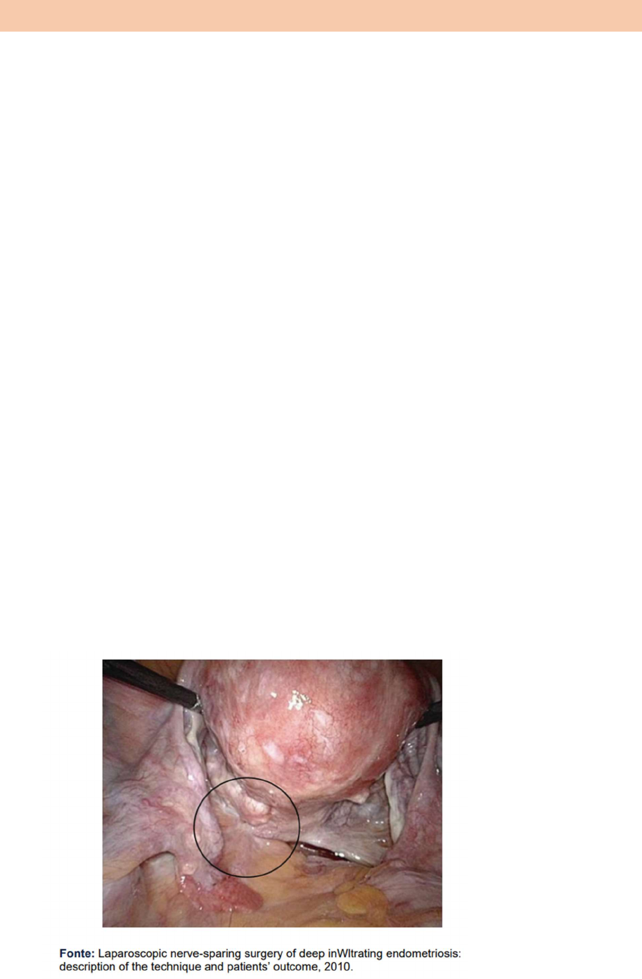 ENDOMETRIOSE Definição e formas de apresentação A endometriose caracteriza-se pela presença de tecido endometrial – glândula e/ou estroma endometrial – em localização ectópica, fora da cavidade endometrial. Confirma-se a presença desses tecidos à microscopia, associados ou não a macrófagos repletos de hemossiderina (pigmento resultante da destruição da hemoglobina). Acomete cerca de 10% das mulheres em idade fértil, e atualmente acredita-se que mais de 7 milhões de brasileiras tenham a doença. A endometriose pode apresentar-se na forma de lesões vermelhas, acastanhadas ou negras, assim como pode se distinguir entre lesões pigmentadas – típicas – e não pigmentadas – atípicas –, as quais incluem vesículas, lesões “em chama de vela” e aderências. As lesões vermelhas e as não pigmentadas são precoces e mais ativas e parecem reagir melhor ao tratamento hormonal, em comparação com lesões ovarianas ou profundas. As aderências podem ser extensas e envolver o intestino, a bexiga e os ureteres, levando, inclusive, à hidronefrose (é a dilatação do rim. Isso acontece quando a urina não consegue passar até à bexiga e, por isso, se acumula dentro do rim). Nos ovários, a lesão mais comum é o endometrioma, um cisto de conteúdo espesso e cor escura achocolatada. De acordo com a profundidade com que o implante endometrial penetra no tecido, classifica-se a doença em superficial ou profunda; esta última determina implantes que penetram mais de 5 mm na espessura do tecido. A endometriose profunda pode infiltrar o espaço retrouterino, o septo retovaginal, a bexiga e a parede intestinal. Casos no pulmão, mamas, ossos, sistema nervoso central, fígado, vesícula biliar, rins e uretra já foram descritos, mas são extremamente raros. Ainda não está claro se as diferentes formas diferem com relação à dor, à infertilidade ou ao prognóstico. Figura 10.1 - Foco de endometriose: visão laparoscópica Figura 10.2 - Foco de endometriose ativa: visão laparoscópica A variante adenomiose, antigamente englobada no mesmo processo, compreende a presença de tecido endometrial implantado no interior das fibras miometriais, denominada por alguns autores endometriose interna. Atualmente, endometriose e adenomiose são reconhecidas como patologias distintas. Figura 10.3 - Focos de adenomiose: pontos escuros que correspondem a focos de endométrio infiltrados no miométrio Localização Diversos locais podem ser acometidos pela doença, isolados ou simultaneamente. A forma mais comum é a multifocal, e os sítios principais são o peritônio pélvico, principalmente nas fossetas ovarianas e nos ligamentos uterossacros, os órgãos pélvicos – ovários, tubas, bexiga, sigmoide e reto – e, mais raramente, órgãos extrapélvicos, como fígado, pulmões, pleura e outros. A frequência exata em que os diversos locais são acometidos diverge na literatura. Para a endometriose pélvica, forma mais frequente de manifestação da doença, os ovários – superficial ou profundamente –, os ligamentos uterossacros e o fundo de saco de Douglas representam as localizações preferenciais. Os focos de endometriose no ovário tornam-se encapsulados, formando cistos denominados endometriomas. A endometriose extragenital, na maioria dos casos, é assintomática, mas deve ser suspeitada quando há dor ou massa fora da pelve com sintomas cíclicos. O local mais comum de acometimento é o intestino, principalmente na região do sigmoide e do reto (85%), seguido pelo apêndice cecal e intestino delgado. Etiopatogenia As hipóteses etiopatogênicas para explicar o desenvolvimento da doença são muitas. As mais aceitas estão relacionadas a seguir. Hipóteses etiopatogênicas mais aceitas: 1. Teoria da menstruação retrógrada – teoria de Sampson: defende ser o refluxo do sangue menstrual, por meio das tubas uterinas pérvias, o responsável pelo distúrbio. O sangue menstrual contém células viáveis, com capacidade de implantação, que, por fatores locais e sob estímulo estrogênico, formariam focos de tecido endometrial ectópico. Apesar da plausibilidade biológica, essa teoria é muito contestada, pois a maioria das mulheres apresenta menstruação retrógrada e não tem endometriose; 2. Teoria da metaplasia celômica: algumas células indiferenciadas – pluripotenciais – situadas nos ovários, no peritônio e em outros locais sofrem diferenciação em células de endométrio. A incitação para tal diferenciação seria o estímulo hormonal sobre esse epitélio celômico indiferenciado, que se transforma em tecido endometrial, em vez do tecido correspondente – tecido peritoneal, ovariano etc.; 3. Teoria combinada ou teoria de Javert: aceita ambas as hipóteses concomitantemente e explica, em parte, a ocorrência dos focos pélvicos – pelo refluxo de células endometriais, de acordo com a teoria de Sampson; por outro lado, os focos longínquos seriam explicados pela metaplasia celômica; 4. Teoria imunológica: proposta de meados da década de 1990, considera uma série de alterações imunológicas, principalmente relacionadas à resposta imune celular Th1, como fator principal. Essa teoria explicaria o fato de apenas algumas mulheres desenvolverem endometriose, mesmo com a maioria delas apresentando menstruação retrógrada. Os defeitos imunológicos estudados e já comprovados nessa teoria incluem alteração na ação citotóxica e no reconhecimento de antígenos das células NK (Natural Killer) e alteração na secreção de diversas citocinas – IL-1, IL- 6, IL-8, TNF-alfa, IL12, IL-18 e outras; 5. Teoria da implantação: propõe que células endometriais manipuladas durante cirurgias – parto cesárea – podem ser implantadas na cavidade endometrial e na parede pélvica, criando focos de endometriose. Tal teoria foi desenvolvida na tentativa de explicar o aparecimento de focos de endometriose cicatricial. Como exposto, apesar da alta prevalê