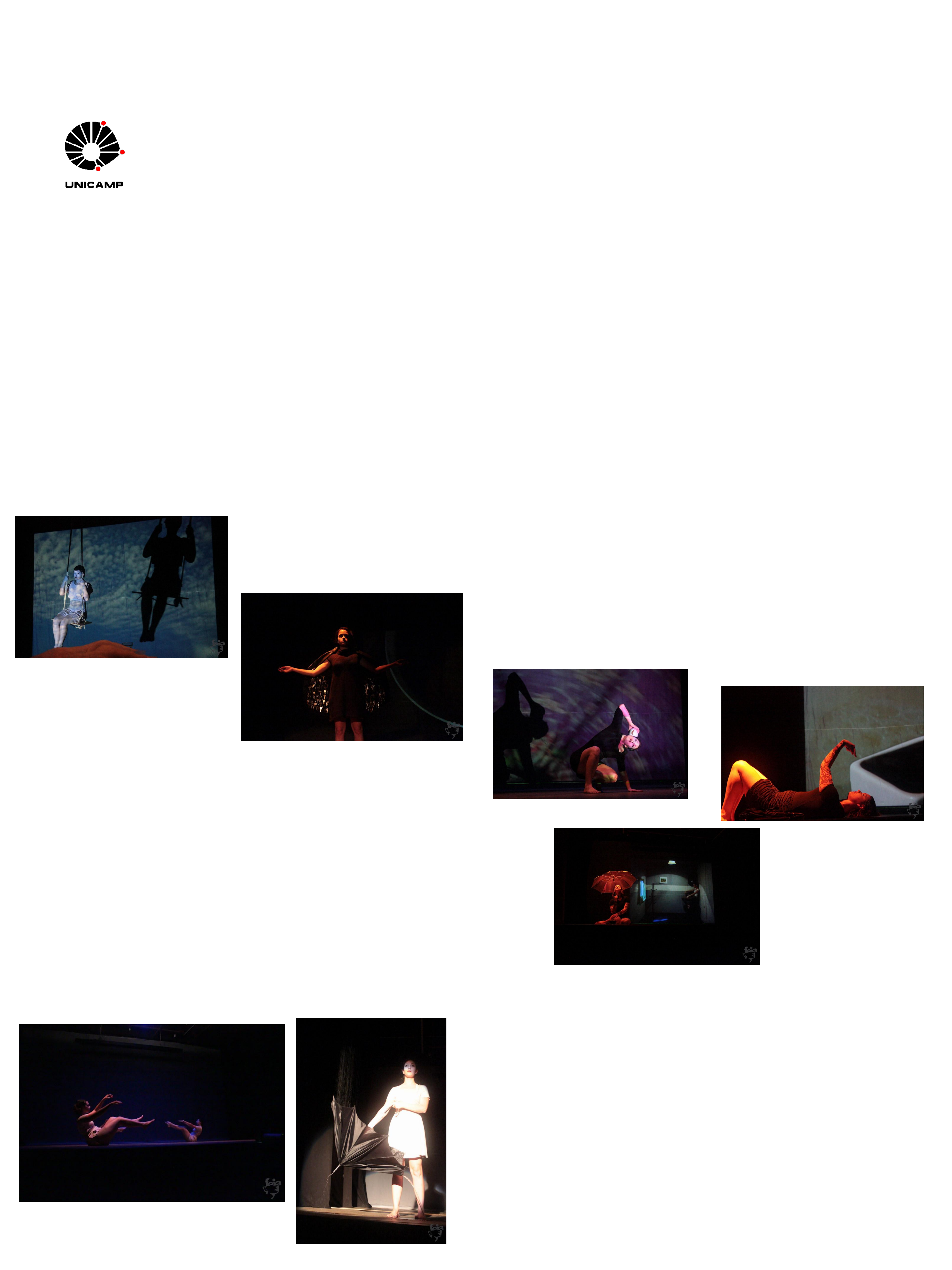 SURREALISMO E EXPRESSIONISMO: PARA ALÉM DA REALIDADE NA CONSTRUÇÃO CÊNICA EM DANÇA Isabela Claudio Razera - isarazera@yahoo.com.br INSTITUTO DE ARTES – DEPARTAMENTO DE ARTES CORPORAIS - UNICAMP Agência financiadora: Pibic/CNPq Orientação: Profª. Drª. Cassia Navas Alves de Castro Co-Orientação: Ângela Nolf Palavras chave: Dança – Composição Coreográfica – Vanguardas Modernistas INTRODUÇÃO Essa pesquisa tem como foco central a criação de um trabalho cênico de dança a partir do estudo teórico das vanguardas modernistas, com recorte para o “Surrealismo” e “Expressionismo”, e de sonhos (entende-se por “sonho” o conjunto de imagens, lembranças ou de impulsos inconscientes, condensados, elaborados, simbolizados ou então distorcidos, que experimentamos durante o sono) contados no blog “Coletando Sonhos”, livremente postados por pessoas que tiveram acesso ao site. Esses pequenos fragmentos do inconsciente dos espectadores serviram como principal fonte inspiradora do trabalho, que procurou utilizar da estética surrealista e expressionista para materializar e concretizar na cena o material onírico narrado de forma interativa pelos usuários do blog. Para a realização dessa criação coreográfica conto com a participação de mais quatro colegas de trabalho, pois assim o processo de pesquisa em dança se tornará mais rico no METODOLOGIA O desenvolvimento dessa pesquisa se faz por meio do método teórico – prático, que possibilita a ma compreensão e análise mais profunda sobre o tema em questão. Para isso, primeiramente foi feita uma revisão bibliográfica sobre autores que escrevem sobre as vanguardas modernistas, Expressionismo e Surrealismo, além de uma análise de obras artísticas – literárias, visuais e musicais – desenvolvidas no período histórico em questão. Também foi nesse momento que criamos o blog “Coletando Sonhos”, com o intuito de recolher materiais que estimulassem nossa capacidade criativa. Foi então que surgiu a idéia de tentar trazer para o palco os elementos mais recorrentes e interessantes dos sonhos contados no blog, na tentativa de criar “um sonho em cena”.A partir de então, o tema passou a ser explorado por meio de laboratórios práticos que envolveram técnicas corporais diversas, e que permitiram que os embasamentos teóricos e as histórias contadas se moldassem no corpo e no espaço, fazendo com que o trabalho se estruturasse a cada encontro. RESULTADOS Esse processo resultou em um espetáculo de dança composto por diversas cenas bastante distintas entre si, mas que se relacionavam através de alguns elementos comuns que surgiam em todos os momentos, criando um fio condutor para o espetáculo. Esses elementos variavam entre objetos cênicos que apareciam e desapareciam em diversas situações, movimentações que se repetiam e quase todas as cenas, elementos comuns do cenário e do figurino, entre outros. O espetáculo foi apresentado uma única vez, denominado “Abri uma porta que até então não estava lá. De repente, caí.” no Auditório do Instituto de Artes da Unicamp, encerrando, portanto, as atividades da pesquisa. http://coletando-sonhos.blogspot.com Fotos: João Boccaletto joaoboccaletto@gmail.com âmbito das reflexões e das movimentações, além de criar maiores possibilidades estéticas na composição cênica. PROCESSO CRIATIVO Partindo da temática escolhida foram realizados laboratórios práticos de criação em dança, contando com a participação de quatro bailarinas voluntárias também alunas do curso de dança da Unicamp. Como estímulos, foram utilizados dados coletados de maneira interativa no blog coletando-sonhos, além de elementos da literatura, artes visuais e música que se inserem no contexto da arte modernista. Estes elementos serviram de base para as pesquisas corporais no decorrer dos laboratórios, que aconteceram em aulas direcionadas para o processo criativo, onde foi utilizada como principal ferramenta de criação as improvisações em dança. A cada laboratório uma proposta de improvisação era dada, poderia ser a partir de uma obra plástica, uma poesia, um estímulo sonoro ou a partir de um sonho postado no blog, aos poucos o grupo foi acumulando material corporal e a temática foi cada vez mais se estabelecendo, a simbologia dos sonhos e suas relações com todo esse contexto se coloca de uma maneira direta, o que faz com que a temática onírica encontre coerência dentro da exploração corporal, que por sua vez, buscou utilizar da estética surrealista e expressionista para materializar e concretizar na cena o material onírico narrado de forma interativa pelos usuários do blog.