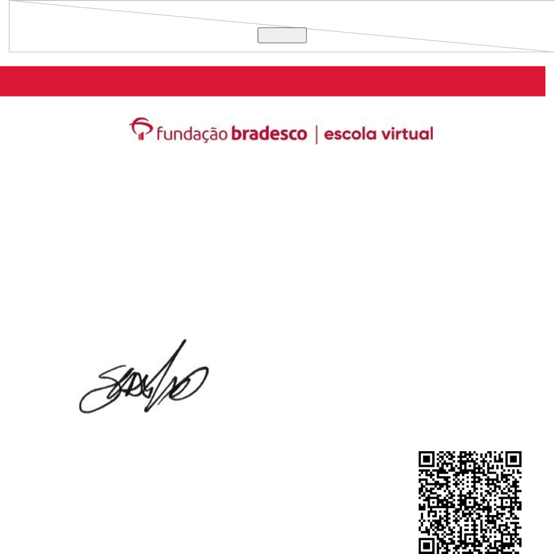 ( Por favor, pressione o botão "imprimir" e ajuste o formato da página para "Paisagem". Imprimir ) C e r t i f i c a d o d e C o n c l u s ã o Certificamos que BRUNA RAMOS concluiu o curso de ESTRATÉGIA DE NEGÓCIOS, com carga horária de 20 hora(s), no período de 11.01.2023 a 11.01.2023. Osasco, 11 de janeiro de 2023. Simone Claudino de Carvalho Flores Escola Virtual Bruna Ramos Aluno (a) ( www.ev.org.br Fundação Bradesco )Código de Autenticidade: 0425A6C9-6992-4680-8308-F5FC502AC648 ou utilize o QR Code do site ev.org.br