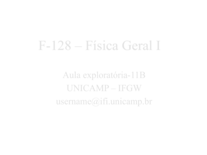 Aula exploratória-11B UNICAMP – IFGW username@ifi.unicamp.br F-128 – Física Geral I Momento Angular F128 – 2o Semestre de 2012 2 pr ×= O momento angular de uma partícula de momento em relação ao ponto O é: (Note que a partícula não precisa estar girando em torno de O para ter momento angular em relação a este ponto). p d dt = ddt ( r × p) = r × F = τ Para um sistema de partículas, Para um corpo rígido em torno de um eixo fixo, τ ext = d L dt L = I ω zmpz iiii z i ˆˆ 2)( ωρρ =×= iiiii mvmp ρω ×==Como temos: ou ωρ 2)( ii z i m= ωωρ ImL i ii i z i z === ∑∑ 2)()( ω xˆ yˆ iz ir iρ iii vmp = , ffiires II ωωτ =⇒= 0 Se Rotação em torno de um eixo fixo F128 – 2o Semestre de 2012 3 Rotação vs. Translação F128 – 2o Semestre de 2012 4 Tabela de analogias Rotação em torno de um eixo fixo Movimento de translação energia cinética equilíbrio 2a lei de Newton 2a lei de Newton momento conservação potência 2 2 1 ωIKR= 22 1 vmK = ατ I=∑ ∑ = amF 0 =∑τ ∑ =0F dt Ld ext =∑ )(τ ∑ = dt pdF ωIL = vmp = fi pp = vFP=ωτ=P fi LL = Rolamento (sem deslizamento) F128 – 2o Semestre de 2012 5 CMv v Rω= = Decomposição do rolamento em rotação + translação Translação pura Rotação pura (acima do centro) (abaixo do centro) v r v r ω ω = = − O ponto de contato está sempre em repouso. Translação + Rotação + = CMv CMv CMv 2Rv ω= Rv ω−= CMv 0=v CM v 0=v Exercício 01 Uma partícula de massa m desce de uma altura h deslizando sobre uma superfície sem atrito e colide com uma haste vertical uniforme (de massa M e comprimento l), ficando grudada nela, conforme a figura abaixo. A haste pode girar livremente em torno de um eixo horizontal que passa por O. a) qual é o momento angular da massa m em relação a O no instante em que ela atinge a haste?; b) qual é a velocidade angular do conjunto (massa+haste) logo após a colisão?; c) encontre a valor do ângulo θ para o qual a haste para momentaneamente. Resp: a) Li = m(2gh)1/2l b) lmM ghm )3( 23 + =ω c) lMmMm hm )3()2( 61cos 2 ++ −=θ F128 – 2o Semestre de 2012 6 Exercício 02 Uma pequena bola de gude sólida de massa m e raio r rola sem deslizar ao longo da pista com um loop no fim, de acordo com a figura abaixo, quando solta do repouso em algum ponto sobre a seção reta da pista. a) de que altura inicial h acima do ponto mais baixo da pista deve ser solta a bola de gude para que ela esteja na iminência de se separar da pista no ponto mais alto do loop? O raio do loop é R; (suponha que R >> r) b) se a bola de gude for solta de uma altura 6R acima do ponto mais baixo da pista, qual será a componente horizontal da força que age sobre ela no ponto P? Resp: mg rR θrRmg F R θr Rh h 7 50cos5 7 10b) 7,2cos 10 17 10 27 a) ≅⎟ ⎠ ⎞⎜ ⎝ ⎛ − += ≅⎟ ⎠ ⎞⎜ ⎝ ⎛ +−= F128 – 2o Semestre de 2012 7 Na figura, uma força horizontal constante F é aplicada a um cilindro maciço de raio R e massa M através de uma linha de pescar enrolada nele. Supondo que o cilindro rola sem escorregar em uma superfície horizontal, mostre que: a) a aceleração do centro de massa do cilindro é 4F/3M; b) encontre a direção e o sentido da força de atrito e mostre que ela tem módulo igual a F/3; c) se o cilindro parte do repouso, qual é a velocidade de seu CM após ter rolado por uma distância d ? M FdvCM 3 8= a) e b): escreva as equações de movimento do CM e da rotação c) Resp: Exercício 03 F128 – 2o Semestre de 2012 8 Exercício 04 Uma tacada horizontal, na altura do centro de massa, comunica a uma bola de bilhar de raio R e massa m uma velocidade inicial v0 (velocidade de translação do CM). Determine: a) o tempo decorrido entre a tacada e o instante em que a fase inicial de deslizamento cessa, e a bola passa a rolar sem deslizar; b) a velocidade angular da bola neste instante; c) o espaço percorrido durante a fase inicial de rolamento com deslizamento; d) a velocidade linear da bola no instante em que começa o rolamento suave. Suponha que o coeficiente de atrito entre a bola e a mesa é µ. Rv 7/5 0=ω Resp: a) t = 2v0 /7 g b) c) d) µ g vx µ49 12 20= 7/5 0vv = F128 – 2o Semestre de 2012 9 Exercício 05 Uma fita leve está enrolada em volta de um disco circular de massa m e raio r, que rola sem deslizar sobre um plano inclinado áspero de inclinação θ. A fita passa por uma roldana fixa de massa desprezível e está presa a um bloco suspenso de massa m’, como mostra a figura. Calcule: a) a aceleração a da massa m’; b) a tração T na fita. c) Discuta o movimento do disco em função de m, m’ e θ . Resp: a) g mm mma ′+ −′= 83 sen48 θ b) ( )agmT −′= c) se o disco sobe o plano, etc ⇒>′ θsen 2 mm F128 – 2o Semestre de 2012 10 Exercício 06 Uma esfera de massa m1 e um bloco de massa m2 são ligados por um fio de massa desprezível que passa por uma polia, conforme figura. O raio da polia é R e o momento de inércia em relação a seu eixo é I. O bloco desliza sobre uma superfície horizontal sem atrito. a) calcule a aceleração linear dos dois objetos, utilizando os conceitos de momento angular e torque; b) quando a esfera tiver descido uma altura h a partir do repouso, qual é a energia cinética da polia? Resp: 221 1 )( R Imm gma ++ = b) ⎟⎟ ⎟ ⎟ ⎠ ⎞ ⎜⎜ ⎜ ⎜ ⎝ ⎛ ++ +−= 221 21 1 )( )(1 R Imm mmghmKrot a) F128 – 2o Semestre de 2012 11 Exercício 7a F128 – 1o Semestre de 2012 12 Um cilindro de massa M e raio R desce rolando ao longo de um plano inclinado de um ângulo θ em relação à horizontal. Determine a velocidade do cilindro ao atingir a base do plano utilizando: a) a 2.a lei de Newton ( para o CM e para o eixo instantâneo) ; b) considerações sobre energia (idem); c) calcule a força de atrito que age sobre o cilindro. Resp: a) e b) c) f = (para cima) ghv 3 4= θsen 3 1mg F128 – 2o Semestre de 2012 12 Exercício 7b Uma esfera de massa M e raio R desce rolando ao longo de um plano 