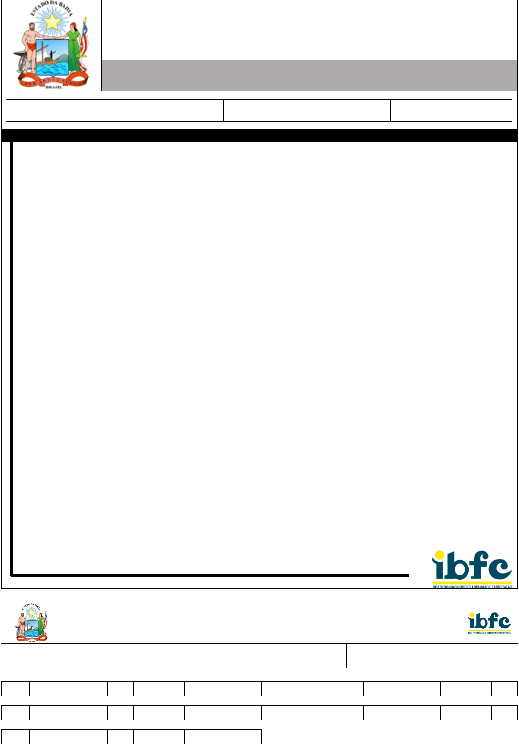 IBFC_10 SECRETARIA DA EDUCAÇÃO DO ESTADO DA BAHIA PROCESSO SELETIVO SIMPLIFICADO - EDITAL Nº 18/2022 PROFESSOR DA EDUCAÇÃO BÁSICA - LÍNGUA PORTUGUESA LEIA COM ATENÇÃO AS INSTRUÇÕES ABAIXO INSTRUÇÕES GERAIS I. Nesta prova, você encontrará 12 (doze) páginas numeradas sequencialmente, contendo 50 (cinquenta) questões objetivas correspondentes às seguintes disciplinas: Língua Portuguesa 05 (cinco) questões, Educação Brasileira - Temas Educacionais e Pedagógicos 05 (cinco) questões, Noções de Igualdade Racial e de Gênero 05 (cinco) questões, Conhecimentos Interdisciplinares 05 (cinco) questões e Conhecimentos Específicos 30 (trinta) questões. II. Verifique se seu nome e número de inscrição estão corretos na Folha de Respostas. Se houver erro, notifique o fiscal. III. Verifique se o Caderno de Questões se refere ao cargo para o qual você se inscreveu. Caso o cargo esteja divergente, solicite ao fiscal de sala para que tome as providências cabíveis, pois não serão aceitas reclamações posteriores nesse sentido. IV. Assine e preencha a Folha de Respostas nos locais indicados, com caneta azul ou preta. V. Verifique se a impressão, a paginação e a numeração das questões estão corretas. Caso observe qualquer erro, notifique o fiscal. VI. Marque a Folha de Respostas cobrindo fortemente o espaço correspondente à letra a ser assinalada, conforme o exemplo na própria Folha de Respostas. VII. O sistema de leitura e processamento das Folhas de Respostas não registrará a resposta em que houver falta de nitidez na marcação e/ou marcação de mais de uma alternativa. VIII. A Folha de Respostas não pode ser dobrada, amassada, rasurada ou manchada. Exceto sua assinatura, nada deve ser escrito ou registrado fora dos locais destinados às respostas. IX. Ao terminar a prova, entregue ao fiscal a Folha de Respostas e este Caderno. As observações ou marcações registradas neste caderno não serão levadas em consideração. X. Você dispõe de 4 (quatro) horas para fazer esta prova. Reserve os 20 (vinte) minutos finais para marcar a Folha de Respostas. XI. O candidato só poderá retirar-se do setor de prova 2 (duas) horas após seu início mediante a entrega obrigatória da sua Folha de Respostas e do seu Caderno de Questões devidamente preenchidos e assinados ao fiscal de sala. XII. O candidato poderá levar seu Caderno de Questões somente após transcorrido o tempo de 2 (duas) horas do seu início. Em hipótese alguma o candidato poderá levar o Caderno de Questões antes do horário permitido. XIII. É terminantemente proibido o uso de telefone celular, e demais aparelhos eletrônicos. Boa Prova! GABARITO DO CANDIDATO - RASCUNHO NOME: ASSINATURA DO CANDIDATO: INSCRIÇÃO: 1 2 3 4 5 6 7 8 9 10 11 12 13 14 15 16 17 18 19 20 21 22 23 24 25 26 27 28 29 30 31 32 33 34 35 36 37 38 39 40 41 42 43 44 45 46 47 48 49 50 NOME DO CANDIDATO ASSINATURA DO CANDIDATO RG DO CANDIDATO RASCUNHO IBFC_10 1 LÍNGUA PORTUGUESA RENDA VARIÁVEL A renda variável, como o próprio nome sugere, é um investimento em que o rendimento não é garantido. Diferente da poupança, na qual você sempre ganha, em um investimento de renda variável, você pode ganhar ou perder, perder até o capital principal, ou seja, o capital que foi investido inicialmente. Quando pensamos em renda variável, pensamos imediatamente em ações, elas são o investimento mais característico da renda variável. Ao comprar uma única ação, o comprador se torna sócio dessa empresa. É muito simples investir, basta criar uma conta em uma corretora ou banco que ofereça o serviço de Home Broker. Esse sistema permite monitorar o fluxo de negócios da Brasil Bolsa Balcão, a bolsa brasileira ou B3 como é conhecida. Após a abertura da conta, é hora de escolher uma empresa para investir, geralmente, as empresas maiores e mais seguras pagam menos dividendos e as empresas menores e menos estáveis procuram atrair mais acionistas pagando mais. Há milhares de vídeos na internet explicando como investir, mas cuidado, além do risco inerente da renda variável, esses vídeos não são sugestões de investimentos. É melhor ser precavido e procurar uma consultoria especializada. 1) Segundo Bechara (2019, p. 616), “A compreensão de texto consiste em analisar o que realmente está escrito, ou seja, coletar dados do texto. E interpretação consiste em saber o que se infere (conclui) do que está escrito”. Analise as afirmativas a seguir e dê valores de Verdadeiro (V) ou Falso (F). ( ) A renda variável é uma modalidade de investimento em que o rendimento é garantido. ( ) A poupança é uma modalidade de investimento na qual você sempre ganha. ( ) Você pode ganhar ou perder em um investimento de renda variável. ( ) Você nunca perderá o capital principal, ou seja, o capital que foi investido inicialmente. Assinale a alternativa que apresenta a sequência correta de cima para baixo. a) F - V - V - F b) V - F - F - V c) V - V - V - F d) F - F - F - F e) V - F - V - V 2) Mantenha o foco na compreensão e interpretação do texto. Releia-o, examine os argumentos e assinale a ÚNICA alternativa CORRETA. a) Segundo o autor, ao pensarmos em renda variável, pensamos em câmbio, criptomoedas, fundos imobiliários, ETFs, mas nunca em ações. b) Segundo o autor, você só se tornará sócio de uma empresa ao comprar uma única ação dessa empresa. c) O autor afirma que não é muito simples investir em renda variável, pois, é necessário conhecer o mercado de ações. d) O autor lembra que você não precisa criar uma conta em uma corretora para investir em renda variável. e) O autor reforça que as empresas maiores e mais seguras pagam mais dividendos, pois negociam mais e têm mais lucros. 3) Assinale a alternativa que não apresenta declarações corretas quanto ao uso do hífen. a) O hífen é usado para separar sílabas de uma mesma palavra. Exemplo: me-ta-fí-si-ca. b) O hífen é usado para ligar 