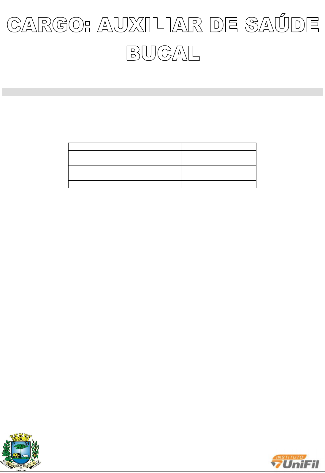 Prova Prefeitura Municipal de Santo Antônio do Sudoeste - Instituto UniFil - 2019 - para Auxiliar de Saúde Bucal.pdf