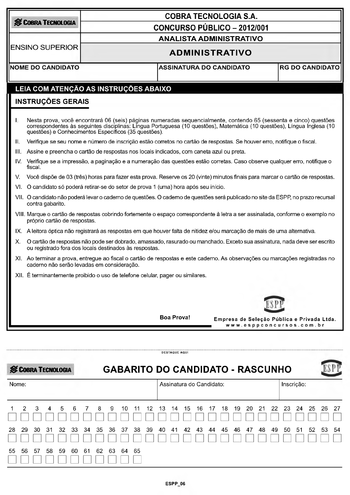 0 C obra Tecnologia GABARITO DO CANDIDATO - RASCUNHO JSPE
