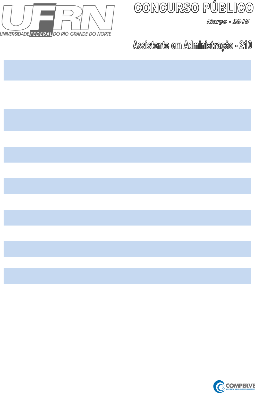 Concurso Público UFRN 2015 Leia estas instruções: 1 Confira se os dados contidos na parte inferior desta capa estão corretos e, em seguida, assine no espaço reservado. Caso se identifique em qualquer outro local deste Caderno, você será eliminado do Concurso. 2 Este Caderno contém, respectivamente, três questões discursivas de Conhecimentos Específicos e 50 questões de múltipla escolha, assim distribuídas: 01 a 10 Língua Portuguesa; 11 a 20 Legislação; 21 a 50 Conhecimentos Específicos. 3 Quando o Fiscal autorizar, verifique se o Caderno está completo e sem imperfeições gráficas que impeçam a leitura. Detectado algum problema, comunique-o, imediatamente, ao Fiscal. 4 As questões discursivas serão avaliadas considerando-se apenas o que estiver escrito no Espaço destinado à Resposta. 5 Escreva de modo legível, pois dúvida gerada por grafia ou rasura implicará redução de pontos. 6 Cada questão de múltipla escolha apresenta quatro opções de resposta, das quais apenas uma é correta. 7 Interpretar as questões faz parte da avaliação; portanto não adianta pedir esclarecimentos aos fiscais. 8 Use exclusivamente caneta esferográfica, confeccionada em material transparente, de tinta preta ou azul . 9 Utilize qualquer espaço em branco deste Caderno para rascunhos e não destaque nenhuma folha. 10 Os rascunhos e as marcações que você fizer neste Caderno não serão considerados para efeito de avaliação. 11 Você dispõe de, no máximo, quatro horas e trinta minutos para responder às questões discursivas, às de múltipla escolha e preencher a Folha de Respostas. 12 O preenchimento da Folha de Respostas é de sua inteira responsabilidade. 13 Antes de se retirar definitivamente da sala, devolva ao Fiscal este Caderno e a Folha de Respostas . _________________________________________________________________________________ Assinatura do Candidato: ______________________________________________________________ Concurso Público UFRN 2015 Assistente em Administração -210 1 PROVA DISCURSIVA Questão 1 Um assistente administrativo solicitou um orçamento para aquisição de um veículo para sua instituição e obteve três propostas distintas. Na primeira delas, o preço do veículo era R$ 35.000,00 e seria necessário contratar um seguro correspondente a 10% do seu valor. Na segunda proposta, o seguro seria de 30% do valor do veículo, que custava R$ 30.000,00. A última proposta exigia um seguro de 5% do valor do veículo, que custava R$ 50.000,00. Considerando que a proposta vencedora deve ser a que possui a melhor relação custo x benefício em relação ao valor do gasto total da compra, qual proposta é a mais econômica para a instituição? Apresente uma justificativa que comprove ser a proposta escolh ida a mais econômica. Espaço destinado à Resposta Fim do espaço destinado à Resposta 2 Concurso Público UFRN 2015 Assistente em Administração - 210 Questão 2 No dia 26/02/2015, o professor José da Silva decidiu pedir desligamento do quadro de docentes da UFRN, tendo apresentado uma carta de demissão à chefe do Departamento de Ciências Administrativas, Francisca Ferreira. O pedido de demissão é em caráter irrevogável, e a chefia do Departamento necessita solicitar a imediata reposição da vaga, por intermédio de um memorando interno para o departamento de pessoal da instituição. Redija o documento, que deve ser encaminhado ao departamento de pessoal, utilizando todos os elementos que devem compor sua estrutura, atentando para o fato de que o demissionário não poderá cumprir aviso prévio. Espaço destinado à Resposta Fim do espaço destinado à Resposta Concurso Público UFRN 2015 Assistente em Administração -210 3 Questão 3 Analise o documento a ser enviado ao SETURN- Sindicato das Empresas de Transporte Urbano do RN, reproduzido a seguir, e atenda ao que se pede: Ofício n o . 015/2015-PROAD/UFRN Considerando as várias manifestações realizadas pelos estudantes do curso de Administração da UFRN, referentes à qualidade dos serviços de transporte circular interno nesta universidade, vimos solicitar que os horários dos itinerários sejam cumpridos regularmente, com vistas a evitar prejuízos acadêmicos aos nossos alunos. Reiteramos que você não pode continuar permitindo que seus motoristas cheguem atrasados no trabalho e os ônibus saiam mais de 15 minutos após o horário regular, pois o pessoal não pode esperar tanto para pegar o coletivo e se deslocar para as salas de aula. Se você não resolver o problema, teremos que acertar as contas. Sem mais para o momento, Chefia do Departamento de Transporte A) Identifique os erros formais que ele apresenta. B) A partir dessa identificação, redija-o novamente, utilizando a estrutura e a linguagem adequadas para a situação em destaque. Espaço destinado à Resposta Mais espaço para Resposta na Folha seguinte 4 Concurso Público UFRN 2015 Assistente em Administração - 210 Continuação do Espaço à Resposta da Questão 3 Fim do espaço destinado à Resposta Concurso Público UFRN 2015 Assistente em Administração -210 5 Língua Portuguesa 01 a 10 Um tiro no escuro A escolha profissional é um caso típico de tomada de decisão na ausência de informações Por Thomaz Wood Jr. O conto Profession, publicado em 1957 por Isaac Asimov, retrata a Terra em um futuro distante e distópico. As crianças são educadas por um sistema central, que liga diretamente seus cérebros a um computador. As futuras profissões são defin idas com base em um algoritmo. Não cabe aos indivíduos escolherem seus ofícios. Profession é uma entre muitas obras de ficção científica a tratar da questão da escolha ou direcionamento profissional. O tema também ocupa lugar de destaque entre as preocupações de jovens, pais, psicólogos, educadores e gestores da área. No Brasil, temos uma associação de orientadores profissionais e uma revista científica dedicada ao tema. Em nosso pa