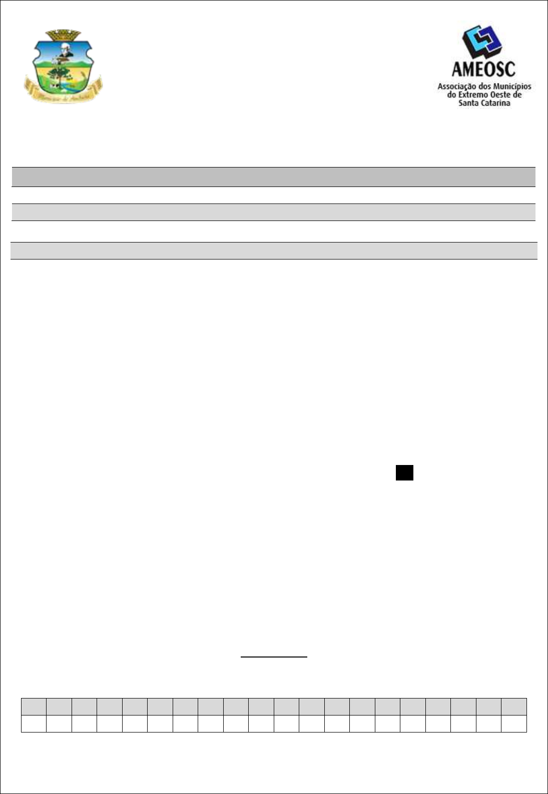 1 Estado de Santa Catarina Prefeitura de Anchieta Edital de Processo Seletivo nº 002/2019 ___________________________________________________________________ Caderno de Prova para o cargo de ENFERMEIRO TIPO DE PROVA: 01 Leia atentamente as instruções abaixo:  Deixe sobre a carteira apenas o documento de identificação e a caneta esferográfica de tinta preta ou azul, feita de material transparente.  Conferir no seu cartão resposta se o tipo de prova destacado, correspondente ao mesmo tipo de prova constante no caderno de prova que lhe foi entregue.  As provas de cada cargo serão identificadas pelos números 1, 2, 3 e 4 e é de responsabilidade do candidato a conferencia do tipo de prova constante no cartão resposta e no caderno de prova.  Confira se sua prova é para o cargo ao qual se inscreveu e se a mesma contém 20 questões, numeradas de 1 a 20. Caso contrário, informe imediatamente ao fiscal de sala.  Não serão aceitas reclamações posteriores por falha de impressão e/ou total de questões.  Preencha o Cartão Resposta, com as informações solicitadas.  Para cada questão existe apenas uma resposta certa.  A resposta certa deve ser marcada no Cartão Resposta.  Segue demonstrado a forma correta de preencher o Cartão de Resposta:  As marcações duplas, rasuradas ou marcadas diferente do modelo acima, ocasionará a anulação da questão.  É de responsabilidade do candidato o preenchimento dos dados do Cartão Resposta.  A prova terá duração de 02h30min, incluído neste horário, o tempo para o preenchimento do Cartão Resposta.  A saída da sala só poderá ocorrer após decorridos 30 (trinta) minutos do início das provas.  Ao sair da sala, entregue o Cartão Resposta ao fiscal da sala e retire-se imediatamente do local de aplicação das provas.  Não é permitido o uso do banheiro após entregar seu Cartão Resposta. BOA PROVA! ___________________________________________________________________________________________________________________________ Rascunho do gabarito: 1 2 3 4 5 6 7 8 9 10 11 12 13 14 15 16 17 18 19 20 2 Questões de Conhecimento Especifico 01. No período neonatal, é achado semiológico no exame físico do recém-nascido (RN) frente ao trabalho respiratório: A) Apneia. B) Respiração periódica. C) Cianose. D) Gemido expiratório. 02. As retrações torácicas decorrem do deslocamento para dentro da caixa torácica, a cada respiração. Quando observa-se retração subcostal no RN, as retrações ocorrem: A) Nas últimas costelas inferiores. B) Na margem superior do esterno. C) Entre as costelas. D) Na margem inferior do esterno. 03. São exemplos de necessidades humanas básicas (NHB) biológicas, exceto: A) Sono, repouso e eliminação. B) Oxigenação, hidratação e sexualidade. C) Religião, ética e filosofia de vida. D) Cuidado corporal, abrigo e percepção. 04. O pensamento crítico é um pensamento focado em resultados e é baseado no Processo de Enfermagem, na aplicação de todas as suas etapas de modo dinâmico e crítico em prol da solução de problemas e: A) Potencialidades humanas. B) Alcance de resultados. C) Identificação das situações de risco envolvidas. D) Padrões, políticas e procedimentos. 05. Na teoria de Calista Roy: A) A Enfermagem estabelece relacionamento interpessoal terapêutico eficaz, visando o reconhecimento e resposta às necessidades de ajuda do cliente. B) Justifica-se a prática da Enfermagem a ausência de capacidade do indivíduo manter continuamente, quantidade e qualidade de autocuidar-se que sejam terapêuticas na manutenção da vida e da saúde, na recuperação da doença, dano ou na maneira de enfrentar seus efeitos. C) A Enfermagem é a ciência e a arte de assistir o ser humano no atendimento de suas necessidades humanas básicas, de torná-lo independente desta assistência o quanto possível. D) A Enfermagem dá apoio e promove respostas adaptativas em relação aos 04 mecanismos de adaptação. 06. Sobre os registros de enfermagem, considere a alternativa que traz exemplo de anotações referentes às ações de enfermagem: A) Eliminações; Sono e repouso; Condições de locomoção. 3 B) Condições emocionais; Queixas e preocupações. C) Medidas de segurança: grades, restrição mecânica; Preparo pré-operatório. D) Transferências; Altas; Encaminhamentos. 07. Analise o trecho a seguir e assinale a alternativa que completa corretamente a lacuna: “__________________ é o processo deliberado, sistemático e contínuo de verificação de mudanças nas respostas da pessoa, família ou coletividade humana em um dado momento do processo saúde doença, para determinar se as ações ou intervenções de enfermagem alcançaram o resultado esperado; e de verificação da necessidade de mudanças ou adaptações nas etapas do Processo de Enfermagem.” A) Avaliação de Enfermagem. B) Implementação. C) Diagnóstico de Enfermagem. D) Planejamento de Enfermagem. 08. O processo logístico da Rede de Frio para conservação dos imunobiológicos, incluindo-se as etapas de recebimento, armazenamento, distribuição e transporte, de forma oportuna e eficiente, para assegurar a preservação de suas características originais, denomina-se: A) Sistema de Informação de Vacinas. B) Cadeia de Frio. C) Estrutura Física de Vacinação. D) Campanha Vacinal. 09. Sobre a Vacina Oral da Poliomielite 1 e 3 (atenuada) – VOP, é correto afirmar que deve-se administrar o primeiro reforço aos: A) 09 meses e o segundo aos 4 anos de idade. B) 12 meses e o segundo aos 5 anos de idade. C) 15 meses e o segundo aos 4 anos de idade. D) 18 meses e o segundo aos 5 anos de idade. 10. A vacina pneumocócica 10 valente tem como esquema vacinal administrar duas doses aos 2 (dois) e 4 (quatro) meses de idade, com intervalo de 60 dias entre as doses. O reforço é administrado aos: A) 09 meses. B) 12 meses. C) 15 meses. D) 04 anos. 11. No período do climatério, alterações endócrinas decorrentes, sobretudo d