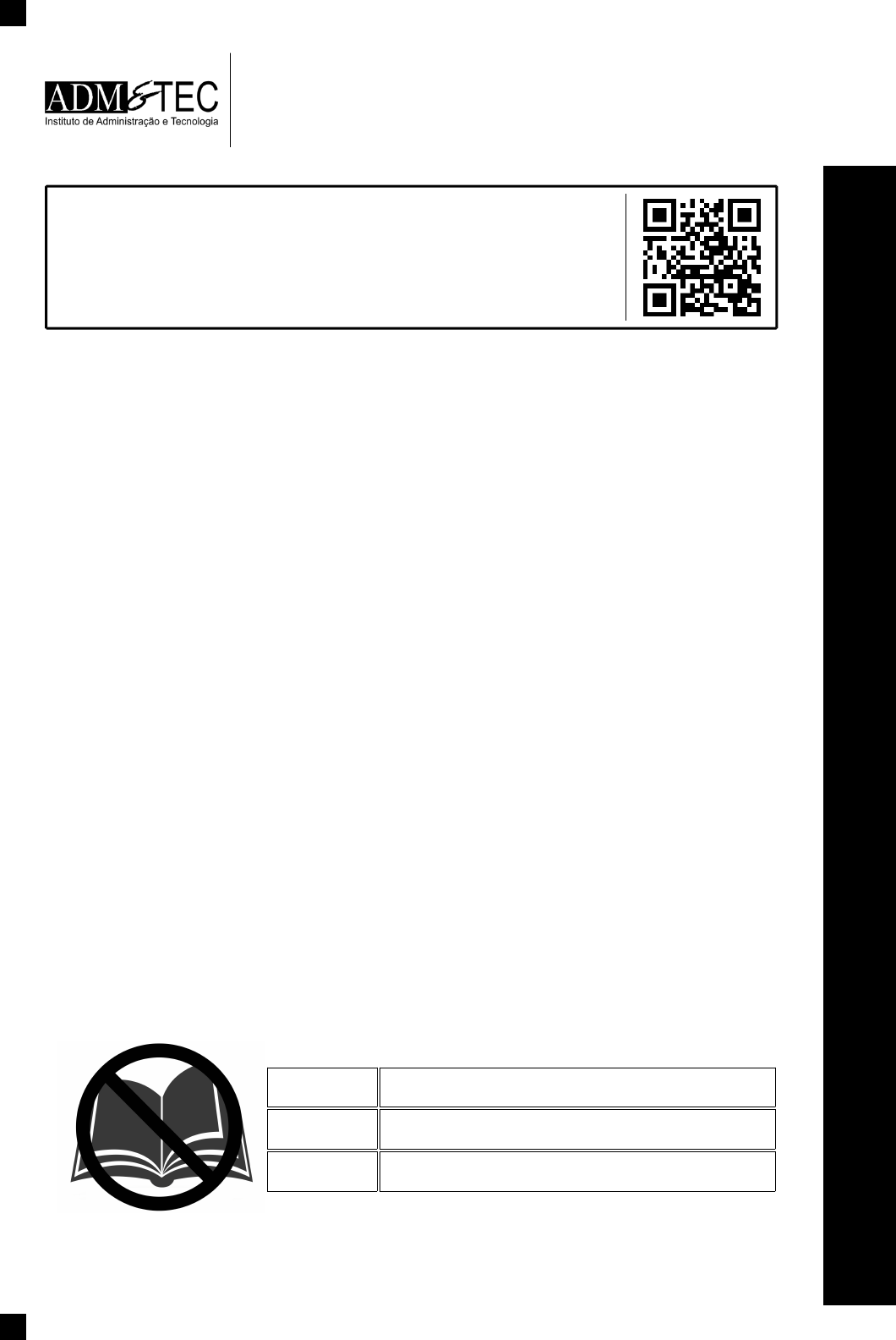 v.Audit.: F2C814732 v.630/2019 CONCURSO PÚBLICO OLIVENÇA (AL) | NÍVEL SUPERIOR CADERNO DE QUESTÕES OBJETIVAS PR O FE SS O R DE H IS TÓ RI A ATENÇÃO! Verifique se as informações descritas neste Caderno de Questões Objetivas coincidem com o registrado no topo de cada página e com o seu Cartão de Respostas. Caso contrário, notifique o fiscal de sala para que sejam tomadas as devidas providências. Informações gerais: Você receberá do fiscal de sala o material descrito a seguir:1. este Caderno de Questões Objetivas, com 30 (trinta) questões de múltipla escolha;a. um Cartão de Respostas destinado às respostas das questões objetivas formuladas na prova.b. Ao receber o Cartão de Respostas você deve:2. conferir seu nome e número de inscrição;a. ler atentamente as instruções para a marcação das respostas das questões objetivas;b. assinar o Cartão de Respostas, no espaço reservado, com caneta de cor azul ou preta.c. As questões são identificadas pelo número que se situa antes do seu enunciado.3. Durante a aplicação da prova não será permitido:4. qualquer tipo de comunicação entre os examinandos;a. levantar da cadeira sem a devida autorização do fiscal de sala;b. portar aparelhos eletrônicos, tais como telefone celular, notebook, receptor, gravador ou máquinac. fotográfica ou equivalente. Não será permitida a troca do Cartão de Respostas por erro do candidato.5. Reserve tempo suficiente para marcar seu Cartão de Respostas.6. Para fins de correção do Cartão de Respostas, serão levadas em consideração apenas as marcações realizadas7. no Cartão de Respostas. No Cartão de Respostas, para cada questão, assinale apenas uma opção, pois atribuir-se-á nota zero a toda8. questão com mais de uma opção assinalada, ainda que dentre elas se encontre a correta. O Cartão de Respostas não pode ser dobrado, amassado, rasurado ou manchado nem pode conter nenhum9. registro fora dos locais destinados às respostas. Quando terminar sua prova, você deverá, OBRIGATORIAMENTE, entregar o Cartão de Respostas devidamente10. preenchida e assinada ao fiscal da sala. Aquele que descumprir esta regra será ELIMINADO. Não folheie a prova antes da autorização do fiscal NOME: INSCRIÇÃO: CPF: Para mais informações, acesse nosso site www.admtec.org.br Instituto ADM&TEC | OLIVENÇA (AL) | NÍVEL SUPERIOR v.Audit.: F2C814732 PROFESSOR DE HISTÓRIA - Página 2 de 5 v.630/2019 CONHECIMENTOS ESPECÍFICOS Questões de 1 a 20 QUESTÃO 1 • Leia as afirmativas a seguir: I. A psicologia educacional ajuda o professor a adquirir e desenvolver qualidades e habilidades necessárias para lidar com situações próprias do ambiente escolar. II. A avaliação deve desconsiderar a variedade de produções realizadas pelos alunos. Marque a alternativa CORRETA: a) As duas afirmativas são verdadeiras. b) A afirmativa I é verdadeira, e a II é falsa. c) A afirmativa II é verdadeira, e a I é falsa. d) As duas afirmativas são falsas. QUESTÃO 2 • Leia as afirmativas a seguir: I. O educador deve reconhecer como ilegítimo e ilícito, por parte das crianças e dos jovens, a busca do prazer. II. A avaliação deve ser realizada utilizando alguns instrumentos, como o registro em tabelas, listas de controle, diário de classe e outros. Marque a alternativa CORRETA: a) As duas afirmativas são verdadeiras. b) A afirmativa I é verdadeira, e a II é falsa. c) A afirmativa II é verdadeira, e a I é falsa. d) As duas afirmativas são falsas. QUESTÃO 3 • Leia as afirmativas a seguir: I. A cultura afro-brasileira remonta ao período colonial, quando o tráfico transatlântico de escravos forçou milhões de africanos a virem para o Brasil. II. Ao tratar do tema orientação sexual, busca-se considerar a sexualidade como algo estranho à vida e à saúde. Marque a alternativa CORRETA: a) As duas afirmativas são verdadeiras. b) A afirmativa I é verdadeira, e a II é falsa. c) A afirmativa II é verdadeira, e a I é falsa. d) As duas afirmativas são falsas. QUESTÃO 4 • Leia as afirmativas a seguir: I. A cultura afro-brasileira está marcada por sua relação com outras referências culturais, sobretudo indígenas e europeias. II. A avaliação não deve permitir a utilização de diferentes códigos, como o verbal e o escrito. Marque a alternativa CORRETA: a) As duas afirmativas são verdadeiras. b) A afirmativa I é verdadeira, e a II é falsa. c) A afirmativa II é verdadeira, e a I é falsa. d) As duas afirmativas são falsas. QUESTÃO 5 • Leia as afirmativas a seguir: I. A origem distinta dos africanos trazidos ao Brasil forçou-os a apropriações e adaptações para que suas prát icas e representações culturais sobrevivessem. II. Entre as festividades populares da cultura afro-brasileira, é possível citar o Carnaval e a Festa de Yemanjá. Marque a alternativa CORRETA: a) As duas afirmativas são verdadeiras. b) A afirmativa I é verdadeira, e a II é falsa. c) A afirmativa II é verdadeira, e a I é falsa. d) As duas afirmativas são falsas. QUESTÃO 6 • Leia as afirmativas a seguir: I. A avaliação não deve possibilitar avaliar as diferentes capacidades e conteúdos curriculares. II. Durante o Primeiro Reinado, a separação entre o Brasil e Portugal não foi aceita, e os indivíduos declarados fieis às Cortes de Lisboa não reconheciam D. Pedro I como governante. Marque a alternativa CORRETA: a) As duas afirmativas são verdadeiras. b) A afirmativa I é verdadeira, e a II é falsa. c) A afirmativa II é verdadeira, e a I é falsa. d) As duas afirmativas são falsas. QUESTÃO 7 • Leia as afirmativas a seguir: I. Compreender os estágios de desenvolvimento da vida humana pode ajudar o educador a determinar os métodos mais adequados de ensino. II. As atividades específicas para a avaliação devem ser semelhantes às situações de aprendizagem comumente estruturadas em sala de aula. Marque a alternativa CORRETA: a) As duas afirmativas são verdadeiras