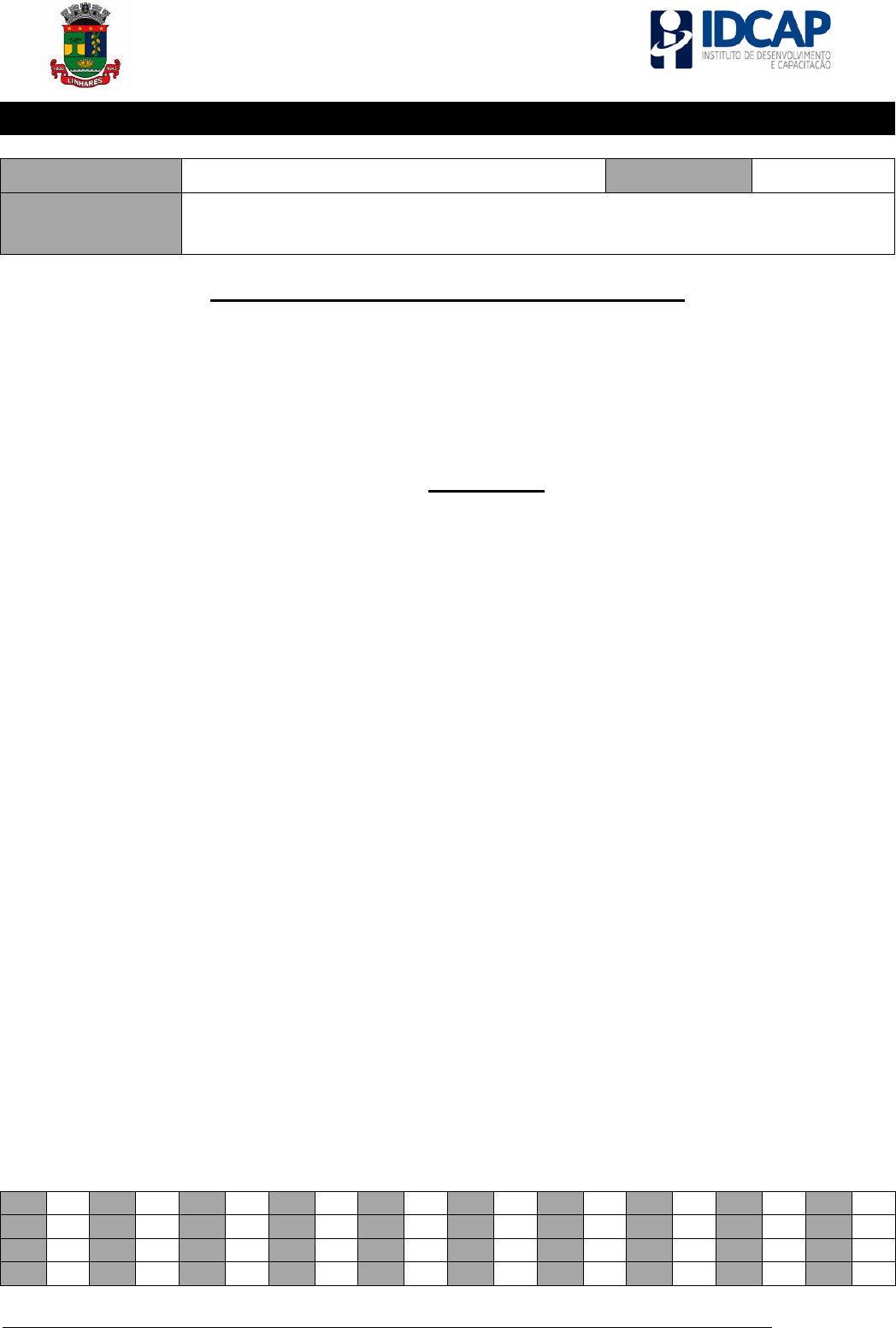PREFEITURA MUNICIPAL DE LINHARES/ES SECRETARIA MUNICIPAL DE EDUCAÇÃO PROCESSO SELETIVO 10/2018 Página 1 de 12 PROFESSOR DE GEOGRAFIA Nome do Candidato: Nº de Inscrição: Assinatura: LEIA COM ATENÇÃO AS INSTRUÇÕES ABAIXO: 1. É proibido folhear o caderno de provas antes da autorização do fiscal. 2. Confira se este caderno de provas corresponde ao cargo (cabeçalho desta página) para o qual você se candidatou. 3. Confira os dados impressos no cartão resposta. Quaisquer problemas deverão ser comunicados ao fiscal de sala, para registro em ata. 4. Assine o cartão de respostas. 5. Verifique se este caderno de prova contém 40 questões. Não serão consideradas reclamações posteriores ao término da prova. 6. Cada questão da prova objetiva constitui-se de cinco alternativas, identificadas pelas letras A, B, C, D e E, das quais apenas uma será a resposta correta. 7. Preencha primeiramente o rascunho do cartão de respostas da prova objetiva, que se encontra no final desta página; em seguida, passe-o a limpo, com caneta esferográfica azul ou preta. Qualquer outra cor de tinta no cartão de respostas não será aceita pela leitora ótica. 8. Preencha o cartão de respostas da prova objetiva completando totalmente a opção, ao lado dos números, que corresponde à resposta correta. 9. Serão consideradas incorretas questões para as quais o candidato tenha preenchido mais de uma opção no cartão de respostas, bem como questões cuja opção apresente rasuras no cartão de respostas. 10. O cartão resposta não será substituído em hipótese alguma; portanto, evite rasuras. 11. Em sala, a comunicação entre os candidatos não será permitida, sob qualquer forma ou alegação. 12. Não será permitido o uso de calculadoras, dicionários, telefones celulares, pen drive ou de qualquer outro recurso didático, elétrico ou eletrônico, nem o uso de qualquer acessório que cubra as orelhas do candidato. 13. A prova objetiva terá duração máxima de 3h e 30 min, incluído o tempo para preenchimento do cartão de respostas. 14. O candidato somente poderá retirar-se do local de prova após 1 (uma) hora de seu início e poderá levar o caderno de provas 1 (uma) hora antes de seu término. 15. Os (3) três últimos candidatos somente poderão retirar-se da sala de prova simultaneamente e devem fazê-lo após a assinatura da ata de sala. 16. As saídas para: banheiro, tomar medicamento e água, só serão permitidas acompanhadas por um fiscal. 17. Os fiscais NÃO estão autorizados a prestar informações de interpretação das questões. Sua função é apenas fiscalizar e orientar quanto ao funcionamento do certame. 18. Ao concluir a prova, entregue ao fiscal de sala o cartão de respostas. Boa prova! 01 02 03 04 05 06 07 08 09 10 11 12 13 14 15 16 17 18 19 20 21 22 23 24 25 26 27 28 29 30 31 32 33 34 35 36 37 38 39 40 PREFEITURA MUNICIPAL DE LINHARES/ES SECRETARIA MUNICIPAL DE EDUCAÇÃO PROCESSO SELETIVO 10/2018 Página 2 de 12 RASCUNHO PREFEITURA MUNICIPAL DE LINHARES/ES SECRETARIA MUNICIPAL DE EDUCAÇÃO PROCESSO SELETIVO 10/2018 Página 3 de 12 LÍNGUA PORTUGUESA As questões de 01 a 10 dizem respeito ao Texto. Leia-o atentamente antes de respondê-las. (Texto) 01. De acordo com as ideias do Texto, analise as afirmativas abaixo: I- Ao longo da vida, muitas informações referentes ao histórico de saúde do paciente tiveram que ser repetidas inúmeras vezes; II- O volume de informações que são desperdiçadas ao longo da vida do paciente é gigantesco; III- Um dos casos em que as informações do paciente são perdidas é no caso de ganhar um novo emprego e ficar sem plano de saúde. Dos itens acima: a) Apenas o item II está correto. b) Apenas o item III está correto. c) Apenas os itens I e II estão corretos. d) Apenas os itens II e III estão corretos. e) Apenas os itens I e III estão corretos. 02. Há erro de concordância no seguinte trecho retirado do Texto: a) “Você já passou dos 50 ou 60 [...]” (linha 1) b) “Ou está na frente do doutor para uma primeira consulta.” (linhas 2 e 3) c) “Já pensou quantas vezes teve que repetir as mesmas informações?” (linhas 3 a 5) d) “O volume de informações desperdiçadas são gigantescas: [...]” (linhas 9 e 10) e) “Se perdeu o emprego e ficou sem plano de saúde, [...]” (linhas 13 e 14) 03. Em relação à pontuação do trecho a seguir retirado do Texto, assinale a alternativa correta: “[...]: se trocou de médico, deixou para trás anos de conversas importantes, de resultados de exames – coisas das quais nem se lembra mais.” (linhas 10 a 13) a) É facultativo o uso de vírgula no trecho, mantendo-se o sentido original da frase caso ela fosse suprimida. b) O travessão utilizado no trecho foi empregado pelo autor para substituir a vírgula e até mesmo os parênteses, indicando uma pausa mais extensa, mais profunda, mais enfática. c) Os dois pontos utilizados (:) foram empregados para indicar uma citação, alheia ou própria. d) Manteria a correção da pontuação caso acrescentássemos uma vírgula imediatamente após “trocou”. PREFEITURA MUNICIPAL DE LINHARES/ES SECRETARIA MUNICIPAL DE EDUCAÇÃO PROCESSO SELETIVO 10/2018 Página 4 de 12 e) Manteria a correção da pontuação caso acrescentássemos uma vírgula imediatamente após “lembra”. 04. Assinale a alternativa que contém a justificativa de acentuação da palavra “episódio” (linha 17) retirada do Texto: a) Acentuam-se os ditongos semiabertos quanto tônicos em palavras oxítonas. b) A palavra em destaque perdeu o acento com o Novo Acordo Ortográfico. c) Acentuam-se as palavras proparoxítonas terminadas em ditongo. d) Acentuam-se as palavras paroxítonas terminadas em “L”. e) Acentuam-se as monossílabas terminadas em “o”. 05. Assinale a alternativa cuja substituição do termo seja possível, mantendo a correta concordância verbal ou nominal e o sentido original do Texto: a) “passou” (linha 1) por “p
