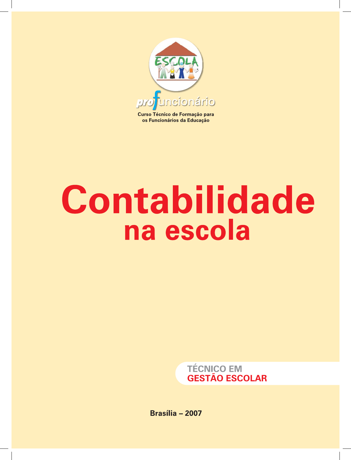 Governo Federal Ministro da Educação Secretária de Educação Básica Diretor do Departamento de Articulação e Desenvolvimento dos Sistemas de Ensino Universidade de Brasília – UnB Reitor Timothy Martin Mulholland Vice-Reitor Edgar Nobuo Mamiya Coordenação Pedagógica do Profuncionário Bernardo Kipnis – FE/UnB Dante Diniz Bessa – Cead/UnB Francisco das Chagas Firmino do Nascimento – SEE-DF João Antônio Cabral de Monlevade – FE/UnB Maria Abádia da Silva – FE/UnB Tânia Mara Piccinini Soares – MEC Centro de Educação a Distância – Cead/UnB Diretor – Sylvio Quezado de Magalhães Coordenação Executiva – Ricardo de Sagebin Coordenação Pedagógica – Tânia Schmitt Unidade de Pedagogia Gestão da Unidade Pedagógica – Ana Luísa Nepomuceno Gestora Pedagógica – Juliana C. Jungmann Gestão da Unidade Produção – Rossana M. F. Beraldo Designer Educacional – Luciana Kury Revisão – Valdinea P. da Silva Editoração – Raimunda Dias Ilustração – Rodrigo Mafra Unidade de Apoio Acadêmico e Logístico Gerente da Unidade – Lourdinéia Martins da Silva Cardoso Gestora do Projeto – Diva Peres Gomes Portela Dados Internacionais de Catalogação na Publicação (CIP) Mo692 Módulo 14 : Contabilidade na escola. / Carlos Mat- tos de Souza Junior, Carlos Augusto de Me- deiros. – Brasília : Universidade de Brasília, 2007. 96 p. ISBN: 978-85-230-0991-5 1. Educação a distância. 2. Do simples registro à contabilidade na escola. 3.Aplicação da parcela dos recursos do orçamento público vinculados ao financiamento da educação. I. Souza Junior, Carlos Mattos de. II. Medeiros, Carlos Augusto de. III. Uni- versidade de Brasília. Centro de Educação a Distân- cia. CDD 357 Apresentação Quando um país direciona recursos para a manutenção e o desenvolvimento do ensino da sua população e valoriza os profissionais da educação, tendo sempre a preocupação com a qualidade, permite que um número crescente de seus cidadãos ingresse e permaneça nas escolas. Temos observado o resultado de países que estão investindo na educação: redução da pobreza, maior distribuição de renda e participação cidadã nos destinos da nação. O presente Módulo de Contabilidade na escola, do curso para funcionários da escola – Profuncionário, tem o propósito de debater sobre a Contabilidade como ferramenta necessária ao desenvolvimento humano, apresentar a origem e a aplicação dos recursos da educação básica pública no Brasil. Por meio desse conhecimento, acreditamos, estaremos aptos para refletir sobre como garantir o acesso de um número cada vez maior de pessoas à escola pública, gratuita e de qualidade. Além disso, não basta ter acesso; é preciso permanecer nela, pois, afinal, trata-se de escolaridade básica ou não? Essa escolaridade básica é consenso social ou não? De acordo com dados do Ministério da Educação (MEC), o Brasil alcançou nos últi- mos 30 anos uma das maiores conquistas de sua história na educação: democrati- zou o acesso ao ensino fundamental. Hoje, 97% das crianças entre 7 a 14 anos es- tão na escola. Faltam somente 3%: o que podemos fazer para alcançar os 100%? Ainda de acordo com o MEC, no ensino médio, faltam vagas: de cada 100 pesso- as, apenas 31 terminam a 8a série e avançam para o ensino médio. Na educação infantil, das 22 milhões de crianças do país de até seis anos, mais de 9 milhões não freqüentam instituições de ensino. Aqui o problema é maior. Depois de concluir o presente Módulo de estudo, você se sentirá mais seguro para refletir criticamente e apresentar sugestões para mudar esse quadro para melhor. A propósito: não fal- tarão parceiros para “brigar” pela causa. O Módulo de Contabilidade na escola nos remete para a seguinte reflexão: qual a relação entre a Contabilidade e o desenvolvimento humano? Caso tenhamos nos convencido dessa verdadeira imbricação, resta-nos uma alternativa: ou lançamos mão da contribuição da “ciência” da Contabilidade em favor de nosso crescimen- to social e pessoal ou continuaremos contribuindo para a crescente exclusão que persiste, ao longo dos séculos, promovida por uma escola boa para alguns e de qualidade duvidosa para muitos. Nosso estudo focará, também, as principais fontes de financiamento da educação públi- ca, mostrando que é por meio da arrecadação de impostos que podemos desenvolvê- la. Esse fato conduz ao compromisso da sociedade em direção à melhoria da economia, o que possibilita novos direcionamentos para a educação. Uma questão se faz neces- sária: como melhorar a economia? Bem, para além da dimensão dessa resposta, arris- camos dizer que é com mais educação e qualidade social por onde podemos começar. Esse é o limite de nossa contribuição: a educação é uma importante parcela que, sem dúvida, não esgota a necessidade de avanços em outras áreas. Por fim, trataremos da aplicação dos recursos destinados para a educação. O Governo entende que faz a sua parte ao garantir, sobretudo, na Constituição Federal, dinheiro para a educação. Os desafios para melhorar a educação pública são enormes e necessários porque, so- bretudo, acreditamos tratar-se de um instrumento para redução das desigualdades so- ciais do nosso país. Faltam mais adeptos para essa “briga”. Você aceita esse desafio? O convite está feito. Ementa Noções básicas de Contabilidade. Prática contábil. Contabilidade na escola. Finanças públicas. Receita e tributação. Classificação de despesas. Balanços. Orçamentos. Con- tabilidade da escola e da rede escolar. Mensagem do autor Antes da jornada, as apresentações. Como, no momento, não posso conhecê-lo, gostaria de me apresentar. Sou Car- los Augusto de Medeiros e moro em Brasília. Sou profes- sor de Matemática da rede pública de ensino há 14 anos. Atualmente, atuo como docente em cursos de Pedagogia e Letras, em uma Institui