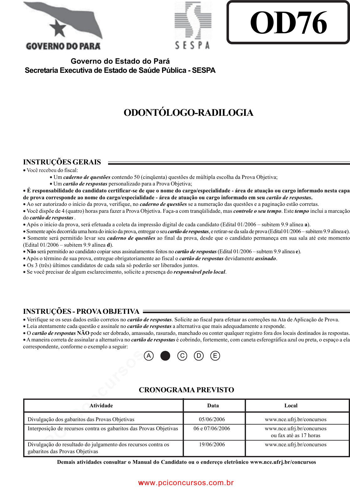 pcimarkpci MDAwMDowMDAwOjAwMDA6MDAwMDowMDAwOmZmZmY6MzZjZjo0YjY2:RnJpLCAxMCBTZXAgMjAyMSAxNDoxOTo1OSAtMDMwMA== OD76 ODONTÓLOGO-RADILOGIA CRONOGRAMA PREVISTO Atividade Data Local Divulgação dos gabaritos das Provas Objetivas 05/06/2006 www.nce.ufrj.br/concursos Interposição de recursos contra os gabaritos das Provas Objetivas 06 e 07/06/2006 www.nce.ufrj.br/concursos ou fax até as 17 horas Divulgação do resultado do julgamento dos recursos contra os 19/06/2006 www.nce.ufrj.br/concursos gabaritos das Provas Objetivas Demais atividades consultar o Manual do Candidato ou o endereço eletrônico www.nce.ufrj.br/concursos INSTRUÇÕES GERAIS • Você recebeu do fiscal: • Um caderno de questões contendo 50 (cinqüenta) questões de múltipla escolha da Prova Objetiva; • Um cartão de respostas personalizado para a Prova Objetiva; • É responsabilidade do candidato certificar-se de que o nome do cargo/especialidade - área de atuação ou cargo informado nesta capa de prova corresponde ao nome do cargo/especialidade - área de atuação ou cargo informado em seu cartão de respostas. • Ao ser autorizado o início da prova, verifique, no caderno de questões se a numeração das questões e a paginação estão corretas. • Você dispõe de 4 (quatro) horas para fazer a Prova Objetiva. Faça-a com tranqüilidade, mas controle o seu tempo. Este tempo inclui a marcação do cartão de respostas . • Após o início da prova, será efetuada a coleta da impressão digital de cada candidato (Edital 01/2006 – subitem 9.9 alínea a). • Somente após decorrida uma hora do início da prova, entregar o seu cartão de respostas, e retirar-se da sala de prova (Edital 01/2006 – subitem 9.9 alínea c). • Somente será permitido levar seu caderno de questões ao final da prova, desde que o candidato permaneça em sua sala até este momento (Edital 01/2006 – subitem 9.9 alínea d). • Não será permitido ao candidato copiar seus assinalamentos feitos no cartão de respostas (Edital 01/2006 – subtem 9.9 alínea e). • Após o término de sua prova, entregue obrigatoriamente ao fiscal o cartão de respostas devidamente assinado. • Os 3 (três) últimos candidatos de cada sala só poderão ser liberados juntos. • Se você precisar de algum esclarecimento, solicite a presença do responsável pelo local. INSTRUÇÕES - PROVA OBJETIVA • Verifique se os seus dados estão corretos no cartão de respostas. Solicite ao fiscal para efetuar as correções na Ata de Aplicação de Prova. • Leia atentamente cada questão e assinale no cartão de respostas a alternativa que mais adequadamente a responde. • O cartão de respostas NÃO pode ser dobrado, amassado, rasurado, manchado ou conter qualquer registro fora dos locais destinados às respostas. • A maneira correta de assinalar a alternativa no cartão de respostas é cobrindo, fortemente, com caneta esferográfica azul ou preta, o espaço a ela correspondente, conforme o exemplo a seguir: A C D E Governo do Estado do Pará Secretaria Executiva de Estado de Saúde Pública - SESPA www.pciconcursos.com.br www.pciconcursos.com.br www.pciconcursos.com.br www.pciconcursos.com.br pcimarkpci MDAwMDowMDAwOjAwMDA6MDAwMDowMDAwOmZmZmY6MzZjZjo0YjY2:RnJpLCAxMCBTZXAgMjAyMSAxNDoxOTo1OSAtMDMwMA== 2 Concurso Público - 2006GOVERNO DO PARÁ LÍNGUA PORTUGUESA Por que o Budismo encanta o Ocidente? Frei Betto O budismo faz tanto sucesso no Ocidente porque possui características que correspondem às tendências da pós- modernidade neoliberal. Num mundo em que muitas religiões se sustentam em estruturas autoritárias e apresentam desvios fundamentalistas, o budismo apresenta-se como uma não- religião, uma filosofia de vida que não possui hierarquias, estruturas nem códigos canônicos. No budismo não há a idéia de Deus, nem de pecado. Centrado no indivíduo e baseado na prática da yoga e da meditação, o budismo não exige compromissos sociais de seus adeptos, nem submissão a uma comunidade ou crença em verdades reveladas. Há, contudo, muitos budistas engajados em lutas sociais e políticas. Nessa cultura do elixir da eterna juventude, em que o envelhecimento e morte são encarados, não como destinos, mas como fatalidades, o budismo oferece a crença na reencarnação. Acreditar que será possível viver outras vidas além dessa é sempre consolo e esperança para quem se deixa seduzir pela idéia da imortalidade e não se sente plenamente realizado nessa existência. Outro aspecto do budismo que o torna tão palatável no Ocidente é a sua adequação a qualquer tendência religiosa. Pode-se ser católico ou protestante e abraçar o budismo como disciplina mental e espiritual, sem conflitos. Mesclar diferentes tradições religiosas é uma tendência crescente para quem respira a ideologia pós-moderna do individualismo exacerbado, segundo a qual cada um de nós pode ser seu próprio papa ou pastor, sem necessidade de referências objetivas. Como método espiritual, o budismo é de grande riqueza, pois nos ensina a lidar, sem angústia, com o sofrimento; a limpar a mente de inquietações; a adotar atitudes éticas; a esvaziar o coração de vaidades e ambições desmedidas; a ir ao encontro do mais íntimo de nós mesmos, lá onde habita aquele Outro que funda a nossa verdadeira identidade. 01 - Considerando a pergunta presente no título do texto – Por que o Budismo encanta o Ocidente? – pode-se dizer que o texto: (A) evita respondê-la de forma direta; (B) indica várias razões que a respondem; (C) não a responde por tratar-se de tema polêmico; (D) mostra somente probabilidades de respostas; (E) em lugar de respondê-la, propõe outras perguntas. 02 - A alternativa abaixo que mostra, segundo o texto, uma oposição INADEQUADA entre o budismo e outras religiões é: (A) centrado no indivíduo X não exige compromissos sociais; (B) estruturas autoritárias X não possui hierarquias; (C) crença em verdades reveladas X não-re