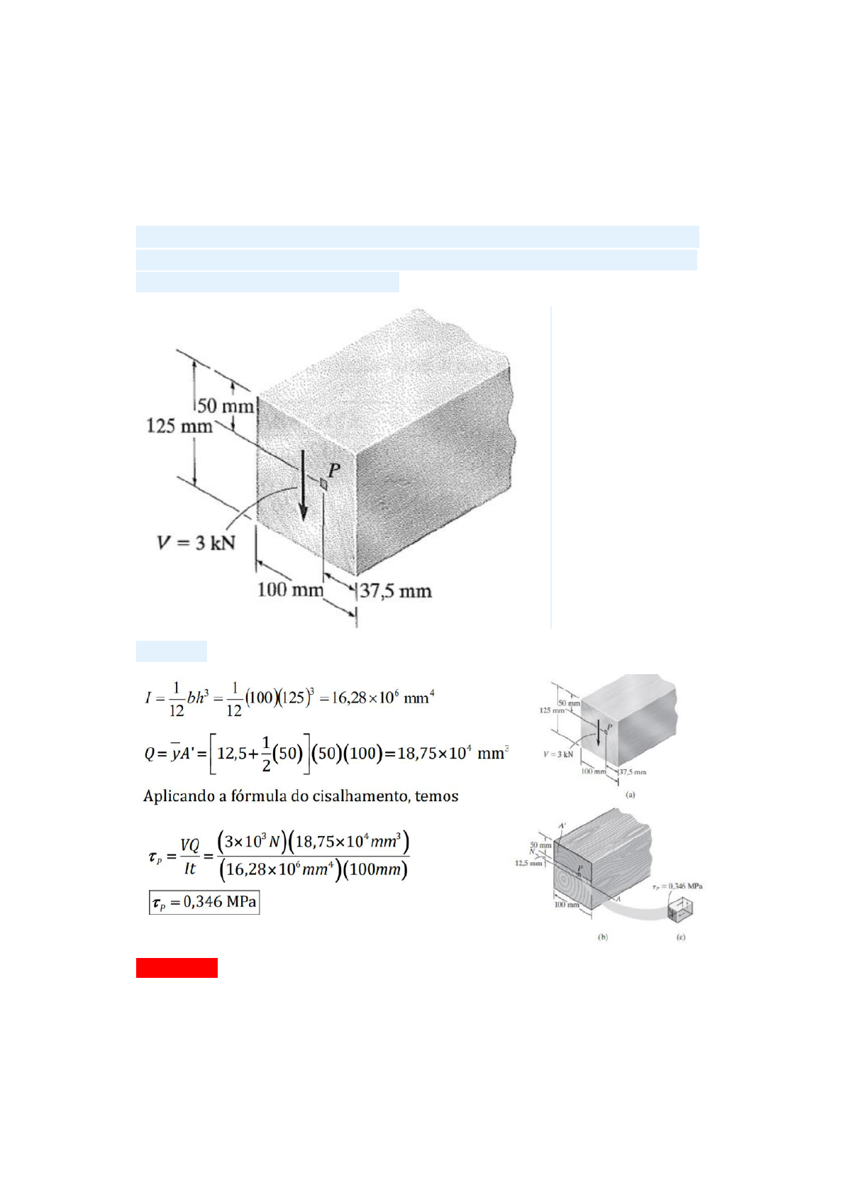 Impresso por Maria Passei, E-mail mariapassei2@gmail.com para uso pessoal e privado. Este material pode ser protegido por direitos autorais e não pode ser reproduzido ou repassado para terceiros. 20/01/2023 20:58:08 Complementos Resistencia de Materiais - DP Np1 A viga mostrada na figura abaixo é fabricada em madeira e está sujeita a uma força de cisalhamento vertical interna resultante V=3 kN. Determine a tensão de cisalhamento na viga no ponto P. Resposta: 0,316 Mpa Impresso por Maria Passei, E-mail mariapassei2@gmail.com para uso pessoal e privado. Este material pode ser protegido por direitos autorais e não pode ser reproduzido ou repassado para terceiros. 20/01/2023 20:58:08 A viga mostrada na figura abaixo é fabricada em madeira e está sujeita a uma força de cisalhamento vertical interna resultante V=3 kN. Determine a tensão de cisalhamento máxima na viga. 0,36 Mpa Impresso por Maria Passei, E-mail mariapassei2@gmail.com para uso pessoal e privado. Este material pode ser protegido por direitos autorais e não pode ser reproduzido ou repassado para terceiros. 20/01/2023 20:58:08 Se a viga abaixo for submetida a um cisalhamento V=15 kN, determine a tensão de cisalhamento na alma em A. Considere w=125 mm. 1,99 Mpa Se a viga abaixo for submetida a um cisalhamento V=15 kN, determine a tensão de cisalhamento na alma em B. Considere w=125 mm. Resposta no Exercício acima 1,65 Mpa Impresso por Maria Passei, E-mail mariapassei2@gmail.com para uso pessoal e privado. Este material pode ser protegido por direitos autorais e não pode ser reproduzido ou repassado para terceiros. 20/01/2023 20:58:08 Se a força P=4 kN, determine a tensão de cisalhamento máximo na seção crítica da viga. Os apoios A e B exercem comente reações verticais sobre a viga. Impresso por Maria Passei, E-mail mariapassei2@gmail.com para uso pessoal e privado. Este material pode ser protegido por direitos autorais e não pode ser reproduzido ou repassado para terceiros. 20/01/2023 20:58:08 0,750 Mpa As extremidade da viga de madeira abaixo devem ser entalhadas como mostrado.Se a viga tiver de suportar o carregamento mostrado, determine a menor profundidade d a viga no entalhe se a tensão de cisalhamento adimissível for de 450 MPa.A largura da viga é de 8 metros. 0,042 mm Determine a tensão de cisalhamento nos pontos B e C localizados na alma da viga abaixo. Impresso por Maria Passei, E-mail mariapassei2@gmail.com para uso pessoal e privado. Este material pode ser protegido por direitos autorais e não pode ser reproduzido ou repassado para terceiros. 20/01/2023 20:58:08 0,572 MPa O raio da haste de aço é de 30 mm. Se ela for submetida a um cisalhamento V=50 kN, determine a tensão de cisalhamento máxima. 11,79 MPa Impresso por Maria Passei, E-mail mariapassei2@gmail.com para uso pessoal e privado. Este material pode ser protegido por direitos autorais e não pode ser reproduzido ou repassado para terceiros. 20/01/2023 20:58:08 O suporte de aço é usado para ligar as extremidades de dois cabos. Se a força P=2,5 kN for aplicada, determine a tensão normal máxima no suporte. O suporte possui espessura de 12 mm e largura de 18 mm. 239,2 Mpa A força vertical P age na parte inferior da chapa cujo peso é desprezível. Determine a distância máxima d até a borda da chapa na qual aquela força pode ser aplicada de modo a não produzir nenhuma compressão na seção a-a da chapa. 100 mm Determine o estado de tensão no E na seção transversal a-a. Impresso por Maria Passei, E-mail mariapassei2@gmail.com para uso pessoal e privado. Este material pode ser protegido por direitos autorais e não pode ser reproduzido ou repassado para terceiros. 20/01/2023 20:58:08 tensão normal -1,01 MPa, tensão de cisalhamento = 1,96 Mpa = Determine o estado de tensão no ponto A quando a viga está sujeita à força de 4 kN no cabo. Impresso por Maria Passei, E-mail mariapassei2@gmail.com para uso pessoal e privado. Este material pode ser protegido por direitos autorais e não pode ser reproduzido ou repassado para terceiros. 20/01/2023 20:58:08 tensão normal = 0,444 MPa, tensão de cisalhamento = 0,217 Mpa A viga de abas largas está sujeita à carga mostrada na figura. Determine as componentes da tensão no ponto A. tensão normal = -70,98 MPa, tensão de cisalhamento = 0 O guindaste AB consiste em um tubo que é usado para levantar o feise de hastes que tem massa total de 3 toneladas. Se o tubo tiver diâmetro externo de 70mm e 10mm de espessura de parede, determine o estado de tensão que age no ponto C. Impresso por Maria Passei, E-mail mariapassei2@gmail.com para uso pessoal e privado. Este material pode ser protegido por direitos autorais e não pode ser reproduzido ou repassado para terceiros. 20/01/2023 20:58:08 tensão normal = 52,1 MPa, tensão de cisalhamento = 0 A haste maciça mostrada abaixo tem raio de 0,75 cm. Se estiver sujeita à carga mostrada, determine o estado de tensão no ponto A. tensão normal = 214,09 MPa, tensão de cisalhamento = 175,05 Mpa Impresso por Maria Passei, E-mail mariapassei2@gmail.com para uso pessoal e privado. Este material pode ser protegido por direitos autorais e não pode ser reproduzido ou repassado para terceiros. 20/01/2023 20:58:35 O painel de sinalização está sujeito à uma carga uniforme do vento. Determine as componentes da tensão no ponto C no poste de sustentação de 100 mm de diâmetro. tensão normal = 107 MPa, tensão de cisalhamento 15,3 Mpa Um tubo de aço com 7,2 m de comprimento e a seção transversal mostrada na figura abaixo, deve ser utilizado como uma coluna presa por pinos nas extremidades. Determine a carga axial admissível que a coluna por suportar sem sofrer flambagem. Considere o módulo de elasticidade E=200 GPa. Impresso por Maria Passei, E-mail mariapassei2@gmail.com para uso pessoal e privado. Este material pode ser protegido por direitos autorais e não pode ser reproduzido ou repassado para terceiros. 20/01/2023 20:58:35 228 kN O 
