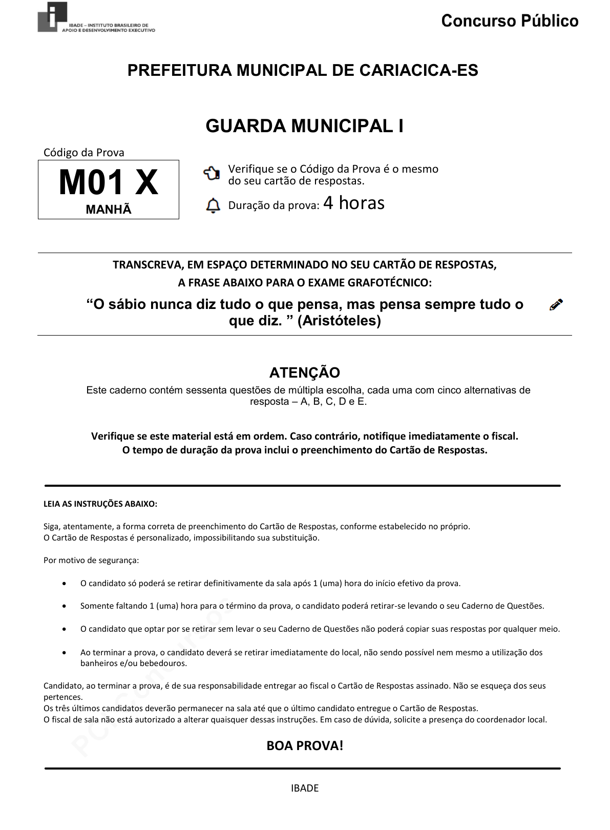 PREFEITURA MUNICIPAL DE CARIACICA/ES - GUARDA MUNICIPAL