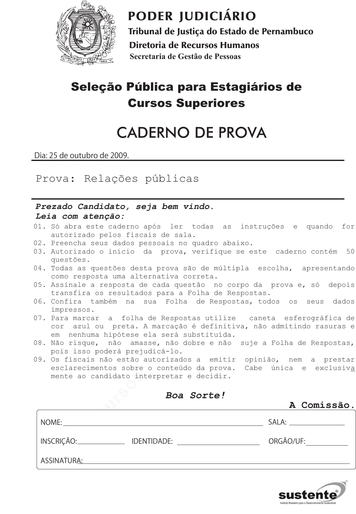 pcimarkpci MDAwMDowMDAwOjAwMDA6MDAwMDowMDAwOmZmZmY6MzZlOTpjMjU5:RnJpLCAxMCBTZXAgMjAyMSAyMDo0NjoxMCAtMDMwMA== Prezado Candidato, seja bem vindo. Leia com atenção: Boa Sorte! A Comissão. 01. Só abra este caderno após ler todas as instruções e quando for autorizado pelos fiscais de sala. 02. Preencha seus dados pessoais no quadro abaixo. 03. Autorizado o início da prova, verifique se este caderno contém 50 questões. 04. Todas as questões desta prova são de múltipla escolha, apresentando como resposta uma alternativa correta. 05. Assinale a resposta de cada questão no corpo da prova e, só depois transfira os resultados para a Folha de Respostas. 06. Confira também na sua Folha de Respostas, todos os seus dados impressos. 07. Para marcar a folha de Respostas utilize caneta esferográfica de cor azul ou preta. A marcação é definitiva, não admitindo rasuras e em nenhuma hipótese ela será substituída. 08. Não risque, não amasse, não dobre e não suje a Folha de Respostas, pois isso poderá prejudicá-lo. 09. Os fiscais não estão autorizados a emitir opinião, nem a prestar esclarecimentos sobre o conteúdo da prova. Cabe única e exclusiv mente ao candidato interpretar e decidir. a Prova: Relações públicas Dia: 25 de outubro de 2009. NOME: INSCRIÇÃO: IDENTIDADE: ORGÃO/UF: ASSINATURA: CADERNO DE PROVA SALA: Secretaria de Gestão de Pessoas Seleção Pública para Estagiários de Cursos Superiores pcimarkpci MDAwMDowMDAwOjAwMDA6MDAwMDowMDAwOmZmZmY6MzZlOTpjMjU5:RnJpLCAxMCBTZXAgMjAyMSAyMDo0NjoxMCAtMDMwMA== PROGRAMA DE ESTÁGIO DE NÍVEL SUPERIOR – TJPE 2009 SELEÇÃO PÚBLICA PROVA: LÍNGUA PORTUGUESA TEXTO 1 A consagração dos direitos do homem e do cidadão A cidadania é um processo em constante construção, que teve origem historicamente com o surgimento dos direitos civis, no decorrer do século XVIII – chamado Século das Luzes−, sob a forma de direitos de liberdade, mais precisamente, a liberdade de ir e vir, de pensamento, de religião, da reunião, pessoal e econômica, rompendo-se com o feudalismo medieval na busca da participação na sociedade. A concepção moderna de cidadania surge então, quando a ruptura com o Ancien Régime,em virtude de ser ela incompatível com os privilégios mantidos pelas classes dominantes, passando o ser humano a deter o status de “cidadão”. O conceito de cidadania, entretanto, tem sido freqüentemente apresentado de uma forma vaga e imprecisa. Uns identificam-na com a perda ou aquisição de nacionalidade, outros, com os direitos políticos de votar e ser votado. No Direito Constitucional, aparece o conceito, comumente relacionado à nacionalidade, aos direitos políticos. Já na Teoria Geral do Estado, aparece ligado ao elemento povo como integrante do conceito de Estado. Dessa forma, fácil perceber que, no discurso político dominante, a cidadania não apresenta um estatuto próprio pois na medida em que se relaciona a estes três elementos (nacionalidade, direitos políticos e povo), apresenta-se como algo ainda indefinido. A famosa Déclaration des Droits de l’homme et du Citoyen, de 1789, sob a influência do discurso burguês, cindiu os direitos do “homem” e do “cidadão”, passando a expressão Direitos do Cidadão significar o conjunto dos direitos políticos de votar e ser votado, como institutos essenciais à democracia representativa. [...] A idéia de cidadão, que, na antiguidade clássica, cotava o habitante da cidade –o citadino−firma-se, então como querendo significar aquele indivíduo a quem se atribuem os direitos políticos, quer dizer, o direito de participar ativamente na vida política do Estado, onde vive. Na carta de 1824, por exemplo, falava-se nos arts. 6º e 7º, em cidadãos brasileiros como querendo significar o nacional, ao passo que nos arts. 90 e 91 o termo cidadão aparece designando aquele que pode votar e ser votado. Estes últimos eram chamados de cidadãos ativos, posto que gozavam de direitos políticos. Aqueles, por sua vez, pertenciam à classe dos cidadãos inativos, destituídos dos direitos de eleger e ser eleito. Faziam parte, nas palavras de José Afonso da Silva, de uma “cidadania amorfa”, posto que abstratos e alheios a toda uma realidade sociológica, sem referência política. [...] Esta idéia, entretanto, vai sendo gradativamente modificada, quando do início do processo de internacionalização dos direitos humanos, iniciado com a proclamação da Declaração Universal dos Direitos Humanos, de 1948. Passa-se a considerar como cidadãos, a partir daí, não somente aqueles detentores dos direitos civis e políticos, mas todos aqueles que habitam o âmbito da soberania de um Estado e deste Estado recebem uma carga de direitos (civis, econômicos e culturais) e também deveres, dos mais variados. [...] htpp://jus2.uol.com.br/doutrina/texto acessado em:31/8/09 Para responder às questões, observe o texto: 1. Atente para as seguintes afirmações: I- O Século das Luzes, a que se refere o texto, serviu como um renascer para a humanidade no que condiz à ciência, às artes, e às letras. II- Pelo contexto, infere-se que houve, em relação ao medievalismo, uma ruptura, quando então no século XVIII, adveio o conceito de cidadania. III- No referido século, o homem passou a ser valorizado em sentido amplo, tendo sido disseminadas todas as diferenças sociais até então existentes. IV- Com a burguesia reinando no século XVIII, a Declaração dos Direitos do Homem e do Cidadão passou a reunir tais direitos em um conceito individualizante. V- Enfocando-se os direitos do cidadão, à luz da burguesia, como conjunto de direitos políticos de votar e ser votado surgem princípios essenciais de uma democracia representativa. Estão corretas apenas as afirmações da alternativa: a) I, II, III IV e V b) I, II, III e IV c) I, II, IV e V d) II, III, IV e V e) II, III e IV 2. Considere as alternativas abaixo: I- A primeira manifestação de cidadania e