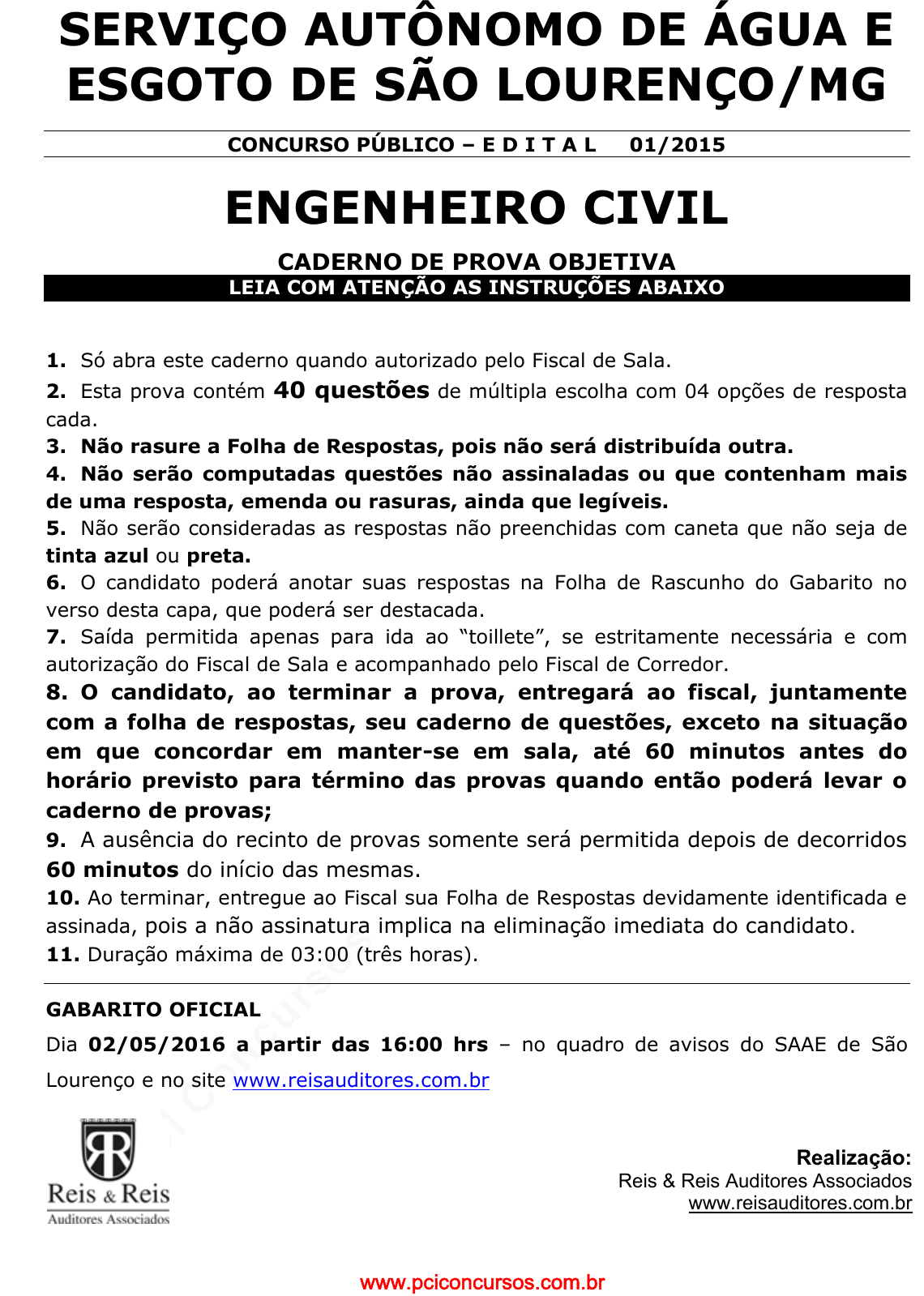 pcimarkpci MDAwMDowMDAwOjAwMDA6MDAwMDowMDAwOmZmZmY6MzZlOTpjMjU5:V2VkLCAxNSBTZXAgMjAyMSAxNjo1MjoyOCAtMDMwMA== SERVIÇO AUTÔNOMO DE ÁGUA E ESGOTO DE SÃO LOURENÇO/MG CONCURSO PÚBLICO – E D I T A L 01/2015 ENGENHEIRO CIVIL CADERNO DE PROVA OBJETIVA LEIA COM ATENÇÃO AS INSTRUÇÕES ABAIXO 1. Só abra este caderno quando autorizado pelo Fiscal de Sala. 2. Esta prova contém 40 questões de múltipla escolha com 04 opções de resposta cada. 3. Não rasure a Folha de Respostas, pois não será distribuída outra. 4. Não serão computadas questões não assinaladas ou que contenham mais de uma resposta, emenda ou rasuras, ainda que legíveis. 5. Não serão consideradas as respostas não preenchidas com caneta que não seja de tinta azul ou preta. 6. O candidato poderá anotar suas respostas na Folha de Rascunho do Gabarito no verso desta capa, que poderá ser destacada. 7. Saída permitida apenas para ida ao “toillete”, se estritamente necessária e com autorização do Fiscal de Sala e acompanhado pelo Fiscal de Corredor. 8. O candidato, ao terminar a prova, entregará ao fiscal, juntamente com a folha de respostas, seu caderno de questões, exceto na situação em que concordar em manter-se em sala, até 60 minutos antes do horário previsto para término das provas quando então poderá levar o caderno de provas; 9. A ausência do recinto de provas somente será permitida depois de decorridos 60 minutos do início das mesmas. 10. Ao terminar, entregue ao Fiscal sua Folha de Respostas devidamente identificada e assinada, pois a não assinatura implica na eliminação imediata do candidato. 11. Duração máxima de 03:00 (três horas). GABARITO OFICIAL Dia 02/05/2016 a partir das 16:00 hrs – no quadro de avisos do SAAE de São Lourenço e no site www.reisauditores.com.br Realização: Reis & Reis Auditores Associados www.reisauditores.com.br www.pciconcursos.com.br pcimarkpci MDAwMDowMDAwOjAwMDA6MDAwMDowMDAwOmZmZmY6MzZlOTpjMjU5:V2VkLCAxNSBTZXAgMjAyMSAxNjo1MjoyOCAtMDMwMA== RASCUNHO DO GABARITO Esta folha pode ser destacada 01 A B C D 02 A B C D 03 A B C D 04 A B C D 05 A B C D 06 A B C D 07 A B C D 08 A B C D 09 A B C D 10 A B C D 11 A B C D 12 A B C D 13 A B C D 14 A B C D 15 A B C D 16 A B C D 17 A B C D 18 A B C D 19 A B C D 20 A B C D 21 A B C D 22 A B C D 23 A B C D 24 A B C D 25 A B C D 26 A B C D 27 A B C D 28 A B C D 29 A B C D 30 A B C D 31 A B C D 32 A B C D 33 A B C D 34 A B C D 35 A B C D 36 A B C D 37 A B C D 38 A B C D 39 A B C D 40 A B C D www.pciconcursos.com.br pcimarkpci MDAwMDowMDAwOjAwMDA6MDAwMDowMDAwOmZmZmY6MzZlOTpjMjU5:V2VkLCAxNSBTZXAgMjAyMSAxNjo1MjoyOCAtMDMwMA== 3 PROVA Nº 13 – PORTUGUÊS SUPERIOR Contraveneno Clarice Lispector Preciso – mas preciso mesmo – lutar contra o consumo que me arrasa. Preciso da contrapropaganda. _______ me perco e passo a comprar tudo, mesmo sem dinheiro, me endividando toda até a boca. Contraveneno. E termino comprando. O mingau muito anunciado? um vômito de mingau mas como, que fazer? Compro duas geladeiras! E quantos liquidificadores? Fico tonta. Liquidificador de marca conhecida: roda, roda, e expulsa o conteúdo num jato. O mingau doce de se vomitar, grosso, pesado. É tão anunciado que não se encontra nas lojas do gênero. Sapataria tal e tal? onde é proibido vender caro? onde você apertará seus pés fazendo bolhas, é barato mas machuca demais. O sorvete que todo mundo toma? Tem gosto de papelão com açúcar. E o café com gosto de barata. O sapato lhe aperta o pé até esmaga-lo – mas você vai e compra, é obrigado. O refrigerante que todo mundo toma tem gosto de sabão Aristolino e esmalte de unhas. Mas você vai e toma e ainda por cima gosta. A casa que anuncia que veste o homem de amanhã na verdade veste o gorducho de amanhã. Vá nessa. E vista seu filho hoje. E jogam dentro do carro em andamento um folheto brilhante, as moças de minissaia. Devo me apressar? Meu Deus, tenho que comprar! “Lançamentos destinados ___pessoas de bom gosto”. Tenho bom gosto? aí é que está. Terrenos a partir de 600m² com o mínimo de vinte metros de frente. Vinte metros de frente é pouco! Quero mais! Tenho bom gosto! Preços ____ partir de 230.250,72. Não esquecer os setenta e dois centavos. Meu Deus, onde arranjo emprestado o dinheiro? As moças de minissaia me ordenam. Obedeço. Me afundo numa riqueza que não tenho. Telefone tal e tal. Vou telefonar e ser roubada. Refugio-me na rádio Ministério de Educação. Sem anúncios. A rádio-relógio me fascina. Os eletrodomésticos – compro ou não? eles mandam que eu compre. Compro então. Fico paupérrima. Mas estou sendo moderna, é o que vale. Anunciam religião também. Deve- se ouvir o pastor tal e tal. Fico religiosa, aliás já acreditava em Deus. Me sinto protegida pelo anúncio e por Deus. E a rádio relógio pinga os minutos. Compro móveis na casa tal e tal. E o supermercado? Encho o meu carrinho de coisas das quais não preciso, até a boca do carrinho. Depois não tenho dinheiro para pagar. Abro o jornal, quero me refugiar nele. Mas eis que anunciam dois apartamentos por andar. Que faço? compro os dois? preço fixo, irreajustável, pagamento até 56 meses. _________ os cinquenta e seis meses? Por ser na Tijuca? Eu na zona Sul. Devo me mudar para a zona Norte? www.pciconcursos.com.br pcimarkpci MDAwMDowMDAwOjAwMDA6MDAwMDowMDAwOmZmZmY6MzZlOTpjMjU5:V2VkLCAxNSBTZXAgMjAyMSAxNjo1MjoyOCAtMDMwMA== 4 A propaganda me entra em casa. Mandam-me uma espécie de aspirina para minhas dores de cabeça. Sou sadia, não tenho dores de cabeça, mas tomo as pílulas. Assim quer Deus. E o mundo. Mandam-me numa caixa um suco de frutas. Dizem que custa três cruzeiros a garrafinha. É barato ou caro? Compro um conjunto estofado: sofá-cama e duas poltronas. Novecentos e noventa cruzeiros ____ vista ou cinquenta e seis cruzeiros e noventa centavos mensais. Pagamento só daqui ____meses. Já tenho grupo estofado mas vou e compro. Estou arruinada mas feliz. Sou uma mulher 