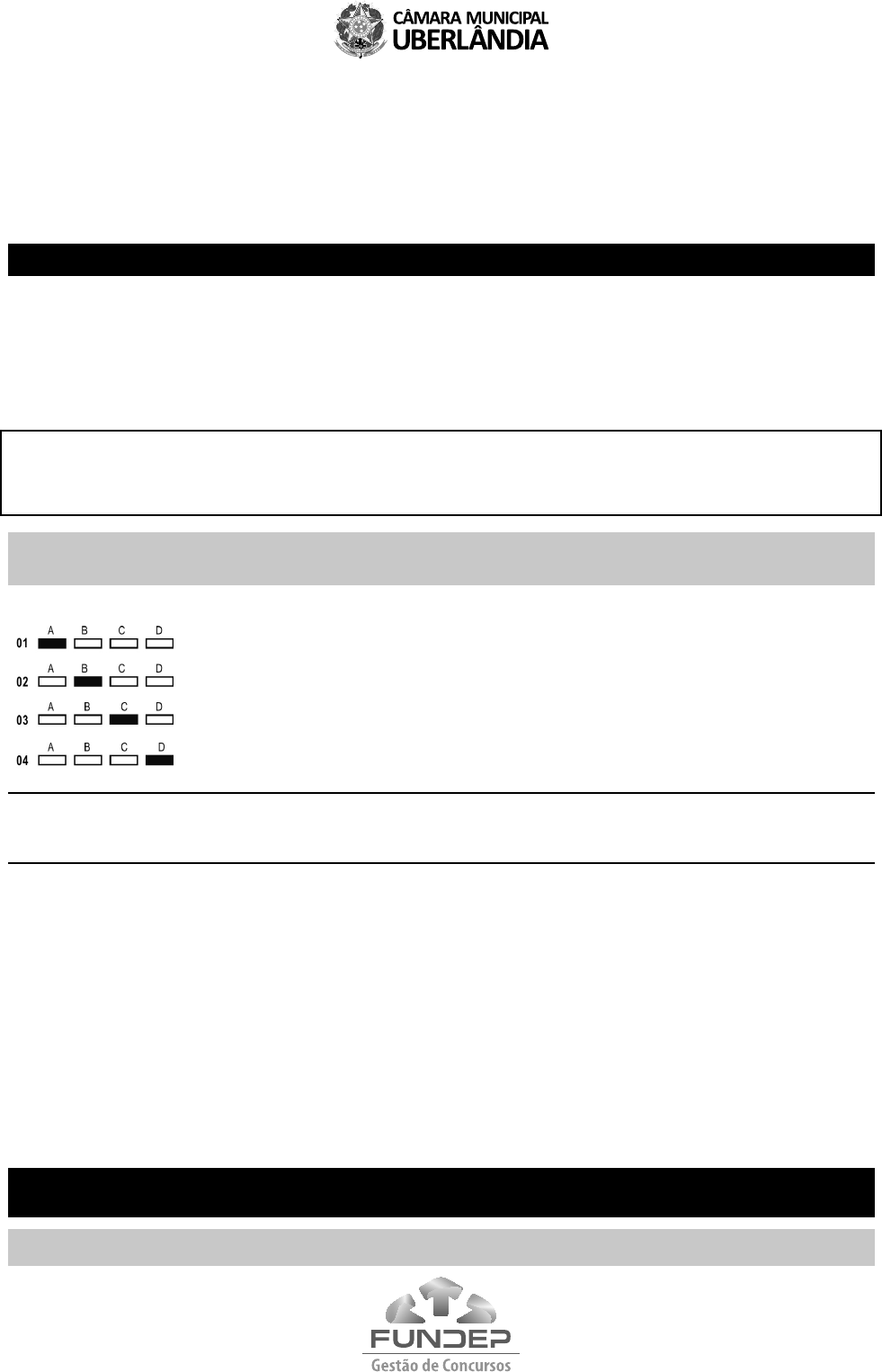 CONCURSO PÚBLICO PARA PROVIMENTO DE CARGOS DA CÂMARA MUNICIPAL DE UBERLÂNDIA ASSESSOR JURÍDICO Código: 301 LEIA COM ATENÇÃO AS SEGUINTES INSTRUÇÕES 1. Este caderno contém as questões da Prova Objetiva e a Prova Discursiva. 2. Use a Folha de Respostas (versão do Candidato) reproduzida ao final deste caderno apenas para marcar o Gabarito. 3. Ao receber a Folha de Respostas da Prova Objetiva e o Caderno Definitivo da prova discursiva: • Confira seu nome, número de inscrição e cargo. • Assine, A TINTA, no espaço próprio indicado. 4. ATENÇÃO: transcreva no espaço apropriado da sua FOLHA DE RESPOSTAS, com sua caligrafia usual, mantendo as letras maiúsculas e minúsculas, desconsiderando aspas e autoria, a seguinte frase: “Mais esperança nos meus passos do que tristeza nos meus ombros” Cora Coralina ATENÇÃO: FOLHAS DE RESPOSTAS SEM ASSINATURA NÃO TÊM VALIDADE. 5. Ao transferir as respostas para a Folha de Respostas: • use apenas caneta esferográfica azul ou preta. • preencha, sem forçar o papel, toda a área reservada à letra correspondente à resposta solicitada em cada questão. • assinale somente uma alternativa em cada questão. Sua resposta NÃO será computada se houver marcação de mais de uma alternativa, questões não assinaladas ou rasuras. NÃO DEIXE NENHUMA QUESTÃO SEM RESPOSTA. As Folhas de Respostas não devem ser dobradas, amassadas ou rasuradas. ATENÇÃO: Período de Sigilo – Não será permitido ao candidato se ausentar em definitivo da sala de provas antes de decorrida 2 (duas) horas do início das provas. Ao terminar a Prova Objetiva de Múltipla Escolha, Prova Redação e/ou Prova Discursiva, quando for o caso, o candidato entregará ao fiscal o Caderno de Provas, o Cartão de Respostas e o caderno de Prova Redação e/ou Discursiva devidamente assinados nos locais apropriados. O candidato não poderá fazer anotação de questões ou informações relativas às suas respostas no Comprovante Definitivo de Inscrição (CDI) ou em quaisquer outros meios, que não os permitidos neste Edital e especificados na capa da prova. O tempo de duração das provas abrange assinatura da Folha de Respostas e a transcrição das respostas do Caderno de Questões da Prova Objetiva, da Prova de Redação e/ou da Prova Discursiva (Folha de Respostas e rascunho) e do rascunho da Prova Redação e/ou Discursiva para o Caderno definitivo. Os candidatos não poderão utilizar-se, em hipótese alguma, de lapiseira, corretivos ou lápis-borracha ou outro material distinto do constante no Edital. Será proibido, durante a realização das provas, fazer uso ou portar, mesmo que desligados, telefone celular, relógios, pagers, beep, agenda eletrônica, calculadora, walkman, notebook, palmtop, gravador, transmissor / receptor de mensagens de qualquer tipo ou qualquer outro equipamento eletrônico. Durante o período de realização das provas, não será permitida qualquer espécie de consulta ou comunicação entre os candidatos ou entre estes e pessoas estranhas, oralmente ou por escrito, assim como não será permitido o uso de livros, códigos, manuais, impressos, anotações ou quaisquer outros meios. Durante o período de realização das provas, não será permitido o uso de óculos escuros, boné, chapéu, gorro, lenço ou similares. As instruções constantes no Caderno de Questões e na Folha de Respostas das Provas Objetiva e da Questão Discursiva, bem como as orientações e instruções expedidas pela FUNDEP durante a realização das provas, complementam o Edital e deverão ser rigorosamente observadas e seguidas pelo candidato. Ao término do prazo estabelecido para a prova, os três últimos candidatos deverão permanecer na sala até que o último candidato termine sua prova, devendo todos assinar a Ata de Sala, atestando a idoneidade da fiscalização das provas, retirando-se da sala de prova de uma só vez. O Caderno de Questões e o Gabarito da Prova Objetiva serão divulgados no endereço eletrônico <www.gestaodeconcursos.com.br>. DURAÇÃO MÁXIMA DA PROVA: 4 (QUATRO) HORAS ATENÇÃO Sr.(a) Candidato(a), Antes de começar a fazer a prova, confira se este caderno contém, ao todo, 45 (quarenta e cinco) questões de múltipla escolha, cada uma constituída de 4 (quatro) alternativas de respostas, assim distribuídas: 10 (dez) questões de Língua Portuguesa, 5 (cinco) questões de Raciocínio Lógico, 20 (vinte) questões de Conhecimentos Específicos, 10 (dez) questões de Legislação e a Questão Discursiva, todas perfeitamente legíveis. Havendo algum problema, informe imediatamente ao aplicador de provas para que ele tome as providências necessárias. Caso não observe essa recomendação, não lhe caberá qualquer reclamação ou recursos posteriores. 3 LÍNGUA PORTUGUESA INSTRUÇÃO: Leia o texto I a seguir para responder às questões de 1 a 4. TEXTO I Por que não é correto comparar os incêndios na Amazônia aos que ocorrem na Austrália Pense na fumaça que sai de um vulcão. Agora, imagine compará-la à fumaça que sai do escapamento de um carro. “São coisas completamente diferentes”, diz Erika Berenguer, pesquisadora brasileira das universidades britânicas de Oxford e de Lancaster. Seria erro semelhante comparar os incêndios na Amazônia brasileira às queimadas atuais na Austrália, aponta ela. “Não é porque é fogo que é igual. Não é uma comparação válida”, afirma Berenguer, que estuda os impactos do fogo na Amazônia. “Por parte de pessoas que têm informações, é uma comparação desonesta.” Na opinião do biólogo Alexander Lees, professor da Manchester Metropolitan University, “há mais diferenças que semelhanças” entre os dois eventos. A influência do aquecimento global sobre a intensidade das situações é uma das poucas semelhanças possíveis. “Os fogos na Austrália, na Sibéria e no Brasil vão ficar piores com o aquecimento do planeta”, afirma. Jos Barlow, pesquisador