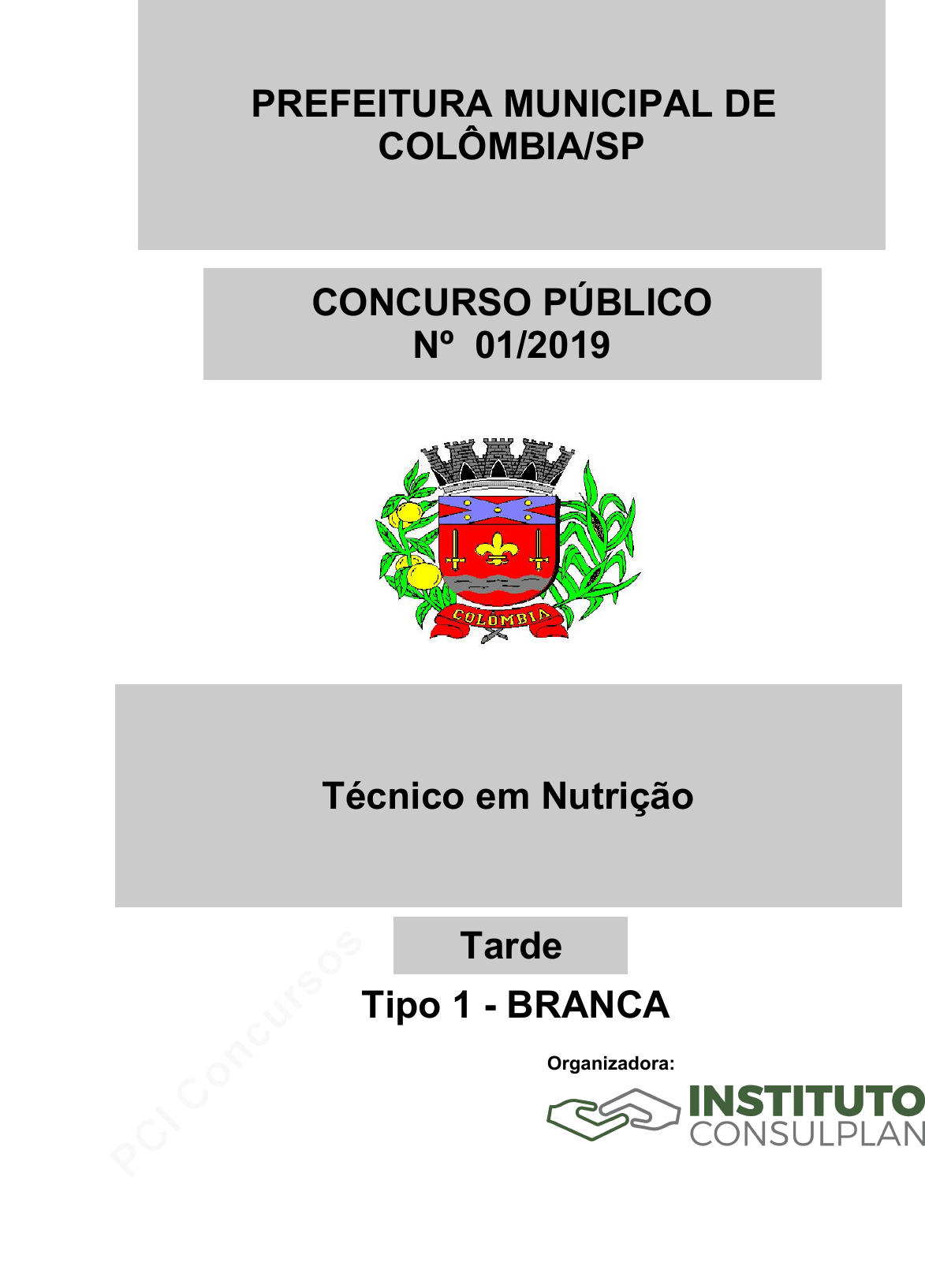pcimarkpci MDAwMDowMDAwOjAwMDA6MDAwMDowMDAwOmZmZmY6MzZlOTpjMjU5:U2F0LCAxMSBTZXAgMjAyMSAxNzowNDo1MiAtMDMwMA== Técnico em Nutrição CONCURSO PÚBLICO Nº 01/2019 Organizadora: PREFEITURA MUNICIPAL DE COLÔMBIA/SP Tipo 1 - BRANCA Tarde pcimarkpci MDAwMDowMDAwOjAwMDA6MDAwMDowMDAwOmZmZmY6MzZlOTpjMjU5:U2F0LCAxMSBTZXAgMjAyMSAxNzowNDo1MiAtMDMwMA== Ꜿ 2 CONCURSO PÚBLICO – PREFEITURA MUNICIPAL DE COLÔMBIA/SP EMPREGO: TÉCNICO EM NUTRIÇÃO (T) EMPREGO: TÉCNICO EM NUTRIÇÃO CONHECIMENTOS BÁSICOS LÍNGUA PORTUGUESA Poluição visual: entenda seus impactos Poluição visual é o excesso de elementos visuais criados pelo homem que são espalhados, geralmente, em grandes cidades e que promovem certo desconforto visual e espa- cial. Esse tipo de poluição pode ser causado por anúncios, propagandas, placas, postes, fios elétricos, lixo, torres de telefone, entre outros. A poluição visual, que atua junto com a poluição luminosa, está muito presente nos grandes centros urbanos por conta da enorme quantidade de anúncios publicitários e sua não harmonia com o ambiente, desviando exagerada- mente a atenção dos habitantes. Além dos danos estéticos, este tipo de poluição pode ser perigoso para motoristas e outras pessoas. Um prédio feito de vidro pode refletir a luz do sol, criando uma poluição visual que obstrui a visão de quem guia veículos nas vias. Também os anúncios publicitários situados perto de malhas viárias podem distrair os motoristas enquanto dirigem, causando acidentes. Problemas como estresse e desconforto visual também estão relacionados com a poluição visual. Um estudo recente da Universidade A&M, do Texas, nos EUA, demonstrou como a poluição visual está relacionada a esses problemas. Depois de ter realizado situações estressantes, as pessoas estudadas utilizaram dois tipos de avenidas: uma em direção ao interior com poucos ou nenhum anúncio publicitário e a outra cheia de anúncios e demais elementos que são causas de poluição visual. Os níveis de estresse diminuíram rapidamente nos indivíduos que utilizaram o primeiro tipo de avenida, enquan- to permaneceu alta naqueles que utilizaram o segundo tipo. Outros danos negativos do excesso de anúncios publicitários são o incentivo ao consumo, que pode gerar problemas, como obesidade, tabagismo, alcoolismo e o aumento de geração de resíduos (seja por conta do anúncio em si ou do descarte dos produtos oferecidos pela publicidade). [...] Aqui no Brasil é fácil perceber o impacto da poluição visual em épocas de eleições. Além do estresse e do incômodo gerados pela propaganda eleitoral, o peso ambiental da distribuição de panfletos com o número dos candidatos (o famoso “santinho”) é imenso. [...] Para inibir ou controlar esse tipo de poluição, uma possibilidade é criação de leis regulamentando o uso de anúncios publicitários, que são os principais causadores desse tipo de dano. Em São Paulo e em algumas outras cidades, houve a implantação de regulamentações, que ordenam a paisagem do município e visam equilibrar os elementos que compõem a paisagem urbana, restringindo a publicidade externa como outdoors, faixas, cartazes e totens. (Poluição visual: entenda seus impactos. Texto adaptado. Disponível em: https://www.ecycle.com.br/2738-poluicao-visual. Acesso em: 20/01/2019.) Questão 01 Em relação ao texto lido, marque V para as afirmativas verdadeiras e F para as falsas. ( ) São Paulo é pioneira na implantação de regulamenta- ções para ordenar a paisagem do município. ( ) A poluição visual está muito presente tanto nos gran- des centros urbanos quanto nas pequenas cidades. ( ) O impacto da poluição visual provocada em épocas de eleições, com a distribuição dos santinhos, é irrelevante. A sequência está correta em A) F, F, F. B) V, F, F. C) F, V, V. D) V, V, V. Questão 02 A oração “Um prédio feito de vidro pode refletir a luz do sol, (...)” (3º§) contém uma locução verbal. Sobre essa locução, marque V para as afirmativas verdadeiras e F para as falsas. ( ) O verbo flexionado é identificado como verbo auxiliar. ( ) O verbo flexionado é identificado como verbo principal. ( ) Ela é composta por um verbo principal em uma de suas formas nominais e um verbo flexionado. A sequência está correta em A) V, F, F. B) V, F, V. C) F, V, V. D) F, V, F. Questão 03 Essa mesma oração também contém uma locução adjetiva. Em qual das orações, a locução adjetiva NÃO corresponde ao adjetivo informado? A) Ele tem uma cabeça de velho. (senil) B) Maria exerce um trabalho de mestre. (magistral) C) O índice de chuva aumentou nos últimos dias. (fluvial) D) Meu filho amanheceu com dor de garganta hoje. (gutural) Questão 04 Quanto à posição da sílaba tônica, as palavras podem ou não receber acento, como as palavras evidenciadas no 5º§ “resíduos” e “produtos”. Relacione adequadamente as colunas a seguir. 1. Proparoxítona. 2. Paroxítona. 3. Oxítona. ( ) Biceps. ( ) Ananas. ( ) Mediuns. ( ) Lampada. ( ) Pessegos. A sequência está correta em A) 1, 2, 2, 3, 3. B) 2, 3, 2, 1, 1. C) 2, 3, 3, 1, 1. D) 3, 2, 2, 3, 3. pcimarkpci MDAwMDowMDAwOjAwMDA6MDAwMDowMDAwOmZmZmY6MzZlOTpjMjU5:U2F0LCAxMSBTZXAgMjAyMSAxNzowNDo1MiAtMDMwMA== Ꜿ 3 CONCURSO PÚBLICO – PREFEITURA MUNICIPAL DE COLÔMBIA/SP EMPREGO: TÉCNICO EM NUTRIÇÃO (T) Questão 05 Sobre o substantivo “homem”, evidenciado no texto, ana- lise as afirmativas a seguir. I. O aumentativo é “homão”. II. O diminutivo é “homúnculo”. III. Classifica-se como derivado. IV. Não forma nomes compostos. Estão corretas apenas as afirmativas A) I e II. B) I e III. C) II e III. D) II e IV. Questão 06 “Desconforto” é uma palavra formada por um prefixo que possui o sentido de ação contrária. Qual dos prefixos a seguir NÃO corresponde ao sentido apresentado? A) Hipérbole (hiper- = excesso). B) Adjunto (ad- = aproximação). C) Introversão (intro- = movimento pa
