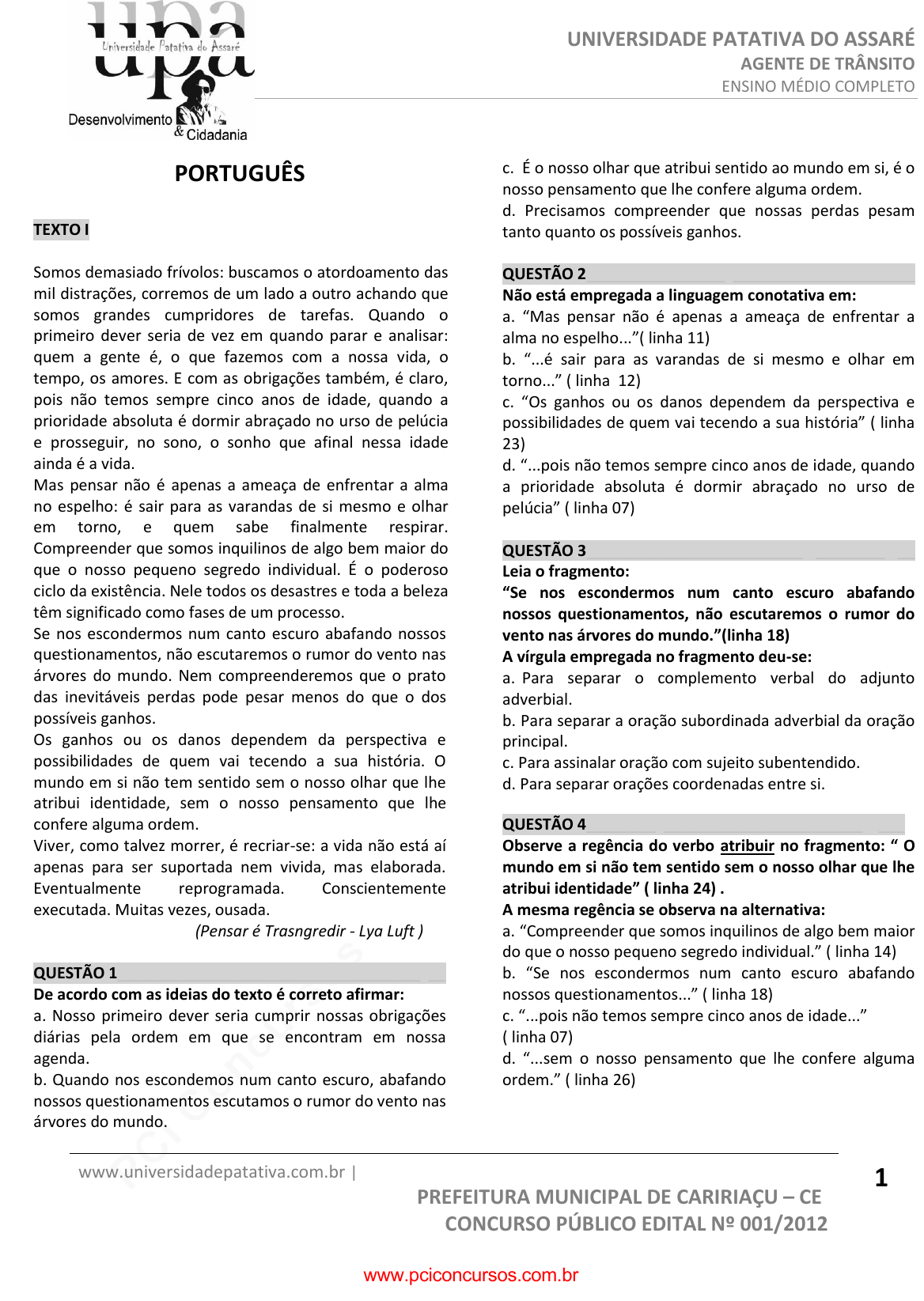 CONCURSO PÚBLICO DA PREFEITURAMUNICIPAL DE CARIRIAÇU - CE