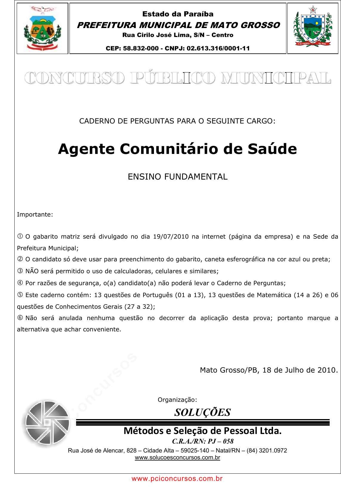 CEP: 58.832-000 - CNPJ: 02.613.316/0001-11