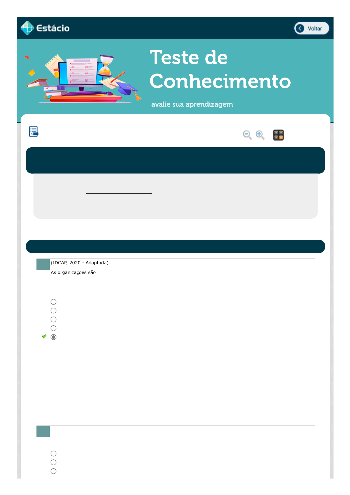 19/10/2022 11:21 Estácio: Alunos https://simulado.estacio.br/alunos/?p0=321717690&user_cod=5895922&matr_integracao=202108061301 1/5 Teste de Conhecimento avalie sua aprendizagem (IDCAP, 2020 - Adaptada). As organizações são constituídas de pessoas e dependem delas para atingir seus objetivos e cumprir suas missões. Por outro lado, as pessoas dependem das organizações para alcançar vários objetivos pessoais. Sem organizações e sem pessoas certamente não haveria a Gestão estratégica de Pessoas. A capacidade das empresas em desenvolver e utilizar as habilidades intelectuais e competências individuais dos seus membros é chamada de: (CESPE/CEBRASPE, 2021 - adaptado). O planejamento se caracteriza pela especificação do estado futuro almejado, ou seja, a missão, os propósitos, os objetivos setoriais, os desafios e as metas. Assinale a alternativa que nomeia esse planejamento. GESTÃO DE PESSOAS Lupa Calc. EGT0059_202108061301_TEMAS Aluno: VIVIAN GUEDES AUGUSTO DE CAMARGO Matr.: 202108061301 Disc.: GESTÃO DE PESSOAS 2022.3 EAD (G) / EX Prezado (a) Aluno(a), Você fará agora seu TESTE DE CONHECIMENTO! Lembre-se que este exercício é opcional, mas não valerá ponto para sua avaliação. O mesmo será composto de questões de múltipla escolha. Após responde cada questão, você terá acesso ao gabarito comentado e/ou à explicação da mesma. Aproveite para se familiarizar com este modelo de questões que será usado na sua AV e AVS. 02223A GESTÃO ESTRATÉGICA DE PESSOAS E O AMBIENTE COMPETITIVO 1. Seleção. Empresabilidade Avaliação. Alocação. Empregabilidade Data Resp.: 12/09/2022 08:52:55 Explicação: Empregabilidade é um termo da moda e que significa ter as competências mais desejadas pelo mercado. Esse temo surge pois ao se colocar um empregado, colaborador, em uma função específica estamos empregando o seu trabalho, suas competências, para trazer um resultado específico para a empresa. As demais alternativas da questão não se referem a questões de aplicação e desenvolvimento de colaboradores, mas sim a questões avaliativas. A alternativa "Empresabilidade" é uma palavra que não existe em nosso vocabulário, sendo um paralelo errado criado a partir da palavra empresário e que deveria ser substituída por empreendedorismo. 2. planejamento de recursos. planejamento de meios. planejamento de atendimento. javascript:voltar(); javascript:voltar(); javascript:diminui(); javascript:aumenta(); javascript:calculadora_on(); 19/10/2022 11:21 Estácio: Alunos https://simulado.estacio.br/alunos/?p0=321717690&user_cod=5895922&matr_integracao=202108061301 2/5 Uma determinada empresa precisa contratar um gestor para a área de vendas. Para isso, João, o colaborador responsável pelo processo de recrutamento, deverá recrutar candidatos que possuem escolaridade de nível superior e no mínimo cinco anos de experiência na área de vendas. O orçamento para essa contratação é baixo, por isso, João terá que realizar um processo de recrutamento externo com baixo custo para encontrar potenciais candidatos para essa vaga. Assinale a opção que indica as ferramentas de recrutamento adequada para atender as necessidades dessa organização. O recrutamento externo é uma forma como as organizações buscam profissionais qualificados no mercado, para atender os requisitos necessários a vaga em aberto. A respeito do tema, assinale a alternativa que indique corretamente uma vantagem da organização ao desenvolver o recrutamento externo. planejamento organizacional. planejamento dos fins. Data Resp.: 12/09/2022 08:54:56 Explicação: Quando planejamos estamos sempre pensando no futuro. Quando esse futuro envolve questões relacionadas com os fins almejados pela empresa, ela recebe o nome de planejamento dos fins. Esse tipo de planejamento está ligado a forma como cada um dos objetivos irá se transformar em resultados. As demais alternativas estão ligadas à outras questões como por exemplo a alternativa "planejamento dos meios" que trata diretamente dos meios, ou seja, o que será empregado para que os fins sejam alcançados. A alternativa "planejamento dos recursos" trata do planejamento dos recursos necessários para que os fins sejam alcançados, algo muito importante para a gestão estratégica de pessoas. RECRUTAMENTO DE PESSOAL 3. Consulta a bancos de dados e Site da empresa. Feira de Empregos e Palestras em Universidades. Indicação e anúncio em jornais e revistas especializados. Headhunters e agência de recrutamento. Cartazes na porta da Empresa e Entidades Governamentais. Data Resp.: 12/09/2022 08:55:38 Explicação: A resposta correta é: Consulta a bancos de dados e Site da empresa. O banco de dados ou de talentos é feito a partir das competências mais importantes e por área de atuação. Para as agências de recrutamento, esse banco representa uma rica fonte de recrutamento. Ao buscar um candidato externo, ele deve ser sua primeira fonte de consulta, já que pode gerar uma série de candidatos potenciais para a vaga em aberto. 4. Trazer profissionais com novas ideias, possíveis vivências de experiências profissionais anteriores e energia revitalizadora à organização. Aproveitar o investimento da organização em treinamento e desenvolvimento do pessoal. Ser um processo mais assertivo, rápido e econômico para a empresa. Atuar como fonte de inspiração e motivação para os funcionários atuais da empresa. Reduzir a incerteza quanto ao perfil do candidato, potencial e capacidade de desempenho das tarefas executadas. Data Resp.: 12/09/2022 08:58:43 Explicação: A resposta correta é: Trazer profissionais com novas ideias, possíveis vivências de experiências profissionais anteriores e energia revitalizadora à organização. 19/10/2022 11:21 Estácio: Alunos https://simulado.estacio.br/alunos/?p0=321717690&user_cod=5895922&matr_integracao=202108061301 3/5 Sobre desenho organizacional, aponte, a seguir, uma vantagem de uma empresa cent
