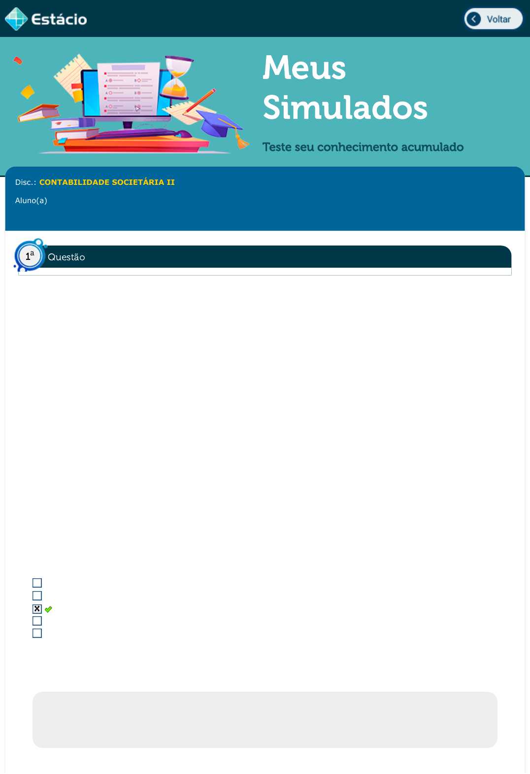 03/02/23, 09:04 Estácio: Alunos https://simulado.estacio.br/bdq_simulados_avaliacao_parcial_resultado.asp?cod_hist_prova=301986879&cod_prova=5999388408&f_cod_disc= 1/6 Meus Simulados Teste seu conhecimento acumulado Disc.: CONTABILIDADE SOCIETÁRIA II Aluno(a): EDYOMAR DIAS RIBEIRO 202103501877 Acertos: 10,0 de 10,0 09/01/2023 Acerto: 1,0 / 1,0 A empresa B foi cindida e seu patrimônio total foi para uma nova empresa ¿ a empresa C, ao qual foi criada para recebê-la. Diante dessa situação se levantou o valor contábil e o valor justo referente as contas da empresa cindida e os saldos são apresentados a seguir. Valor Contábil Ativo R$ 1.000 Passivo R$ 200 Patrimônio Líquido R$ 800 Valor Justo Ativo R$ 1.500 Passivo R$ 200 Patrimônio Líquido R$ 1.300 De acordo com os dados apresentados da empresa cindida e considerando que a operação se enquadra na NBC TG15, assinale a alternativa que corresponde o valor a ser registrado como ajuste de avaliação patrimonial na nova empresa. 1.000 1.500 500 200 1.300 Respondido em 09/01/2023 19:05:49 Explicação: O ajuste de avaliação patrimonial será calculado levando em consideração a diferença entre valor contábil e o valo justo dos ativos e passivos. Nesse caso portanto, tem-se que a diferença entre os valores são de R$500 podendo chegar no resultado avaliando o Ativo ou patrimônio líquido. R$1.500 - R$1.000 ou R$1.300 - R$800. Questão1 a https://simulado.estacio.br/alunos/inicio.asp javascript:voltar(); 03/02/23, 09:04 Estácio: Alunos https://simulado.estacio.br/bdq_simulados_avaliacao_parcial_resultado.asp?cod_hist_prova=301986879&cod_prova=5999388408&f_cod_disc= 2/6 Acerto: 1,0 / 1,0 Imagine que duas empresas (A e B) se juntam para realizar uma fusão e criar uma nova empresa (C) onde, os acionistas da empresa A passarão a controlar a nova empresa criada. Os dados contábeis das empresas são apresentados a seguir. Empresa A Ativo R$ 1.500 Passivo R$ 1.000 Patrimônio Líquido R$ 500 Empresa B Ativo R$ 500 Passivo R$ 250 Patrimônio Líquido R$ 250 O valor justo dos itens da empresa B foram assim levantados: Ativo R$ 600 Passivo R$ 250 Patrimônio Líquido R$ 350 Além disso tem-se que o Valor justo dos instrumentos de capital (ações) emitidos pela Empresa C para os acionistas de Empresa B (o valor que foi pago) R$ 500.De acordo com os dados apresentados e considerando que a operação se enquadra na NBC TG 15, assinale a alternativa que corresponde o valor a ser registrado como ágio na empresa C. 100 150 350 600 250 Respondido em 09/01/2023 19:21:21 Explicação: O valor do ágio será o valor R$ 150, ou seja, o valor justo dos instrumentos de capital (ações) emitidas no valor de R$ 500 menos o valor justo do Patrimônio Líquido da empresa B R$ 350. Acerto: 1,0 / 1,0 (Adaptado de FCC, 2013) As empresas podem realizar alterações em suas estruturas jurídicas. Essas alterações são chamadas de reorganização societária. Diante disso, considere as seguintes assertivas sobre as possibilidades de reorganização societária: Questão2 a Questão3 a 03/02/23, 09:04 Estácio: Alunos https://simulado.estacio.br/bdq_simulados_avaliacao_parcial_resultado.asp?cod_hist_prova=301986879&cod_prova=5999388408&f_cod_disc= 3/6 I. A incorporação é a operação pela qual uma ou mais sociedades são absorvidas por outra, que lhes sucede em todos os direitos e obrigações. II. A fusão é a operação pela qual se unem duas ou mais sociedades para formar sociedade nova, que lhes sucederá em todos os direitos e obrigações. III. A cisão é a operação pela qual a companhia transfere todo o seu patrimônio para uma ou mais sociedades, constituídas para esse fim ou já existentes, extinguindo-se a companhia cindida. A cisão parcial do patrimônio não é permitida. IV. Se a incorporação, fusão ou cisão envolverem companhia aberta, as sociedades que a sucederem serão também companhias abertas. V. O acionista dissidente de sociedade fundida ou incorporada não terá direito de retirada no caso de ação de espécie ou classe que tenha liquidez e dispersão no mercado. Está correto o que consta em: I e V, apenas. I, II, III, IV e V. II e IV, apenas. I, II, IV e V, apenas. I, II e III, apenas. Respondido em 09/01/2023 19:16:36 Explicação: A cisão é a operação pela qual a companhia transfere todo o seu patrimônio para uma ou mais sociedades, constituídas para esse fim ou já existentes, extinguindo-se a companhia cindida. A cisão parcial do patrimônio não é permitida. Na cisão é possível transferência parcial ou total do patrimônio líquido. Acerto: 1,0 / 1,0 (COPS-UEL, 2012 - adaptada). De acordo com a NBC TG 36 "a controladora deve elaborar demonstrações consolidadas utilizando políticas contábeis uniformes para transações similares e outros eventos em circunstâncias similares". Disponível em: https://www1.cfc.org.br/sisweb/SRE/docs/NBCTG36(R3).pdf. Acesso em 30/01/2022. Sendo assim, quando do procedimento de consolidação das demonstrações contábeis, a participação dos não controladores deve ser apresentada no balanço patrimonial consolidado dentro do passivo não circulante, separadamente do exigível a longo prazo da controladora e da controlada. patrimônio líquido, separadamente do patrimônio líquido dos proprietários da controladora. passivo não circulante, separadamente do patrimônio líquido dos proprietários da controladora. passivo circulante, separadamente do patrimônio líquido dos proprietários da controladora. patrimônio líquido, conjuntamente com o patrimônio líquido dos proprietários da controladora. Respondido em 09/01/2023 19:06:29 Explicação: Quando do procedimento de consolidação das demonstrações contábeis, a participação dos não controladores deve ser apresentada no balanço patrimonial consolidado dentro do patrimônio líquido, separadamente do patrimônio líquido dos proprietários da controladora. Alternativa correta: "patrimônio líqui