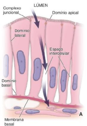 UNIVERSIDADE FEDERAL RURAL DE PERNAMBUCO UNIVERSIDADE FEDERAL DO AGRESTE DE PERNAMBUCO DISCIPLINA: Histologia e Embriologia Veterinária I NOME: Jayne Heloisa de Albuquerque Costa Resumo: 6º aula- tecido epitelial O que é tecido? São aglomerados de células que desempenham uma função específica. Os quatro tecidos básicos são: • Epitelial • Conjuntivo • Muscular • Nervoso Tecido epitelial é caracterizado por células justapostas, sem vascularização, que revestem as superfícies externas e as cavidades internas, além dos tubos corporais. O epitélio também forma a porção secretora e os ductos das glândulas e podem se diferenciar em sensores para olfato, paladar, audição e visão. Definição • Epitélio – do grego Theleo (tecido que cresce), Epi (sobre o outro) • Tecido caracterizado por alta densidade celular, com espaço intercelular muito reduzido e ausência de suprimento vascular direto. • Associado ao tecido conjuntivo e fixado a ele através da membrana basal Principais características • Orientação Polar – um lado voltado para o lúmen (ápice) e o outro oposto fixado a outro tecido (base) • Classificação de acordo com o número de camadas de células e o formato das células da camada mais superficial • Muito pouco espaço extracelular • Pode ter modificações apicais bem desenvolvidas • Aderem firmemente umas às outras por meio de junções intercelulares No caso dos epitélios que revestem as cavidades de órgãos ocos (principalmente nos sistemas digestório, respiratório e urinário), essa camada de tecido conjuntivo recebe o nome de lâmina própria. A porção da célula epitelial voltada para o tecido conjuntivo é denominada porção basal ou polo basal, enquanto a extremidade oposta, geralmente voltada para uma cavidade ou espaço, é denominada porção apical ou polo apical; a superfície desta última região é chamada superfície livre. As superfícies de células epiteliais que confrontam células adjacentes são denominadas superfícies laterais. Essas superfícies normalmente se continuam com a superfície que forma a base das células, sendo então denominadas superfícies basolaterais. Funções • Proteção das superfícies externas e orifícios do corpo • Absorção e secreção de materiais • Transporte superficial de substâncias através de cílios • Recepção sensorial (gustação ou olfação) • Secreção Origem Os epitélios são originados dos três folhetos embrionários: ectoderma, mesoderma e endoderma. Membrana basal A membrana basal foi inicialmente reconhecida em microscopia ótica como uma camada sem forma e densa localizada na base dos epitélios. Em algumas amostras pode ser observada com a coloração HE, porém fica mais evidente se usado o PAS (ácido periódico de Schiff), que tem afinidade por moléculas de açúcar de proteoglicanas, presente na membrana basal, e resulta em uma coloração magenta. O que é? Camada situada entre o epitélio e tecido conjuntivo Visível ao Microscópio de luz através de técnicas especiais Funções • Aderência: epitélio- tecido conjuntivo • Barreira de filtração seletiva • Plataforma, durante a embriogênese e regeneração Lâmina basal É uma estrutura na superfície de contato entre as células epiteliais e o tecido conjuntivo subjacente. Ela contém cerca de 50 proteínas que podem ser classificadas em quatro grupos: colágenos, lamininas, glicoproteínas e proteoglicanos. As funções que desempenha, além da inserção estrutural, são compartimentalização, filtração, esqueleto tecidual, regulação e sinalização. Constituição: • Colágeno • Lamininas • Glicoproteínas • Proteoglicanas Funções • Papel Estrutural • Filtração de moléculas • Influenciar a polaridade das células • Regular a proliferação e a diferenciação celular • Influir no metabolismo celular • Organizar as proteínas nas membranas plasmáticas • Suporte para migração das células Tecido epitelial de revestimento A camada de células epiteliais de revestimento separa o meio externo, cavidades internas ou tecido conjuntivo líquido do tecido conjuntivo subjacente e funciona como uma barreira seletiva, que facilita ou inibe a passagem de substâncias específicas. O epitélio é classificado de acordo com o número de camadas de células e o formato das células superficiais. Simples: se apresenta uma só camada de células Estratificado: se tem duas ou mais camadas As células superficiais podem ser pavimentosas, quando a largura é maior que a altura. Cúbicas, quando a largura, altura e profundidade são aproximadamente as mesmas. Colunar, quando a altura da célula é maior que a largura. Os epitélios podem ser classificados também em pseudoestratificado, parece estratificado, porém todas as células estão associadas a membrana basal, ou de transição, presente no trato urinário inferior. Forma das células epiteliais A forma das células pode ser definida a partir da forma de seu núcleo • células pavimentosas → núcleos achatados • células cúbicas → núcleos esféricos • células colunares → núcleos elípticos Especializações do tecido epitelial de revestimento As apicais podem ser microvilosidades, estereocílios, cílios e glicocálix. As laterais podem ser zônulas de oclusão, de adesão, desmossomos e junção comunicantes. As basais podem ser hemidesmossomos- atuam na aderência das células epiteliais a lâmina basal subjacente. Especializações • Microvilosidades • Glicocálix (glicoproteínas) • Estereocílios • Cílios (móveis) Comunicações Celulares • Zônula de oclusão- As zônulas de oclusão são junções de oclusão em que há fusão entre os folhetos externos das duas membranas das células que participam da junção, evitando que o material tome a rota paracelular para trafegar entre o tecido conjuntivo e o lúmen. Elas se estenderem ao longo de toda a circun