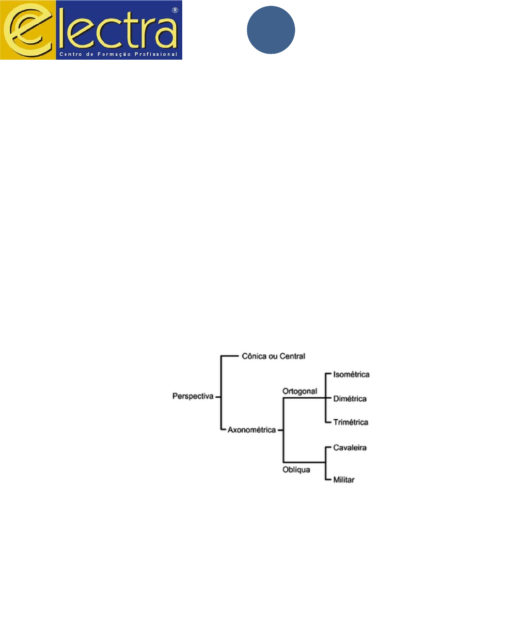 DESENHO TÉCNICO 1 1 1 1 Material de Consulta do Aluno 4º Tópico – Perspectivas Perspectiva ou perspetiva é um campo de estudo da geometria e, em especial, da geometria projetiva. Suas aplicações estendem-se para: arte, arquitetura, design, engenharia etc. Trata-se de uma ciência que abarca os métodos de representação dos objetos em seus tamanhos e posições "corretas", tal qual a visão humana supostamente os compreenderia, a partir de um observador. A perspectiva subdivide-se em várias modalidades como: cônica, isométrica, cavaleira, militar, entre outras, e foi desenvolvida pelos artistas e geômetras na transição da Idade Média para o Renascimento, na sua forma estrita de entendimento. 4.1 – Perspectiva Isométrica A perspectiva isométrica é um caso particular de projeção cilíndrica ortogonal. O sistema de eixos da situação a ser projetada ocorrerá na perspectiva, se vistos no plano, de forma equi-angular a 120º. Desta forma, é possível traçar uma perspectiva isométrica através de uma malha de retas desenhadas a partir de ângulos de 30º. DESENHO TÉCNICO 2 2 2 2 O termo “isométrico” vem do grego: "mesma medida", já que as medidas ortogonais, retiradas das vistas ortogonais, são redesenhadas nos eixos x, y e z com os tamanhos indicados pelas cotas. As linhas inclinadas, que estão fora do tri-eixo ortogonal, não têm as mesmas medidas. Entre todas as perspectivas paralelas, as isométricas são as mais comuns de serem utilizadas no dia-a-dia de escritórios de projetos de mecânica, devido à sua versatilidade e facilidade de montagem. Ela, no entanto, tem suas desvantagens, dado que vários pontos nos objetos representados podem gerar ilusões de óptica. Roteiro para a elaboração da perspectiva isométrica: O primeiro passo é traças os três eixos isométricos. Sobre o eixo X representa-se a largura da vista frontal. Sobre o eixo Z a altura da vista frontal e sobre o eixo Y a profundidade. DESENHO TÉCNICO 3 3 3 3 4.2 – Perspectiva à cavaleira A perspectiva cavaleira é um tipo de projeção cilíndrica obliqua, na qual o objeto tem uma face paralela ao quadro (plano de projeção). Ela é considerada um método de perspectiva rápida, em virtude da facilidade com que se pode obter o desenho de objetos de dimensões reduzidas, principalmente se este tiver superfícies planas. Geralmente, o quadro é posicionado na vertical, mas se for colocado na horizontal, constituirá a projeção cilíndrica obliqua uma variedade da perspectiva cavaleira, a qual os autores franceses, no começo do século XIX, denominaram de perspectiva militar. Como a face que está paralela se projeta em tamanho real no quadro, o eixo perpendicular (que indica a profundidade) é chamado de eixo das fugantes. DESENHO TÉCNICO 4 4 4 4 Obs.: Dependendo da inclinação da linha, onde será representada a profundidade, há um coeficiente de redução a ser aplicado na dimensão, conforme indica a tabela. 4.3 – Perspectiva Cônica A perspectiva cônica é um sistema de representação gráfica com base na projeção de um corpo tridimensional em um plano, através de linhas salientes que passam por um ponto; lugar a partir do qual o observador deve procurar. O resultado final é uma representação no plano da visão realista obtida quando o olho está nesse ponto, lugar a partir do qual aumenta a sensação de estar dentro da imagem representada. Usado em arquitetura e design de interiores para representar edifícios e volumes. É aquele que se aproxima mais da visão real e é equivalente à imagem que observamos ao olhar para um objeto com um único olho. Isso nos permite perceber uma profundidade espacial semelhante à visão estereoscópica. Ela pode ter um, dois ou três pontos de fuga. DESENHO TÉCNICO 5 5 5 5 DESENHO TÉCNICO 6 6 6 6 Links de acesso aos vídeos do YouTube. Perspectiva isométrica – https://www.youtube.com/watch?v=_qft_InKvA4 Perspectiva à cavaleira – https://www.youtube.com/watch?v=bUgvK2bAhrw Perspectiva cônica (1 ponto de fuga) – https://www.youtube.com/watch?v=UHVnRypaeWI