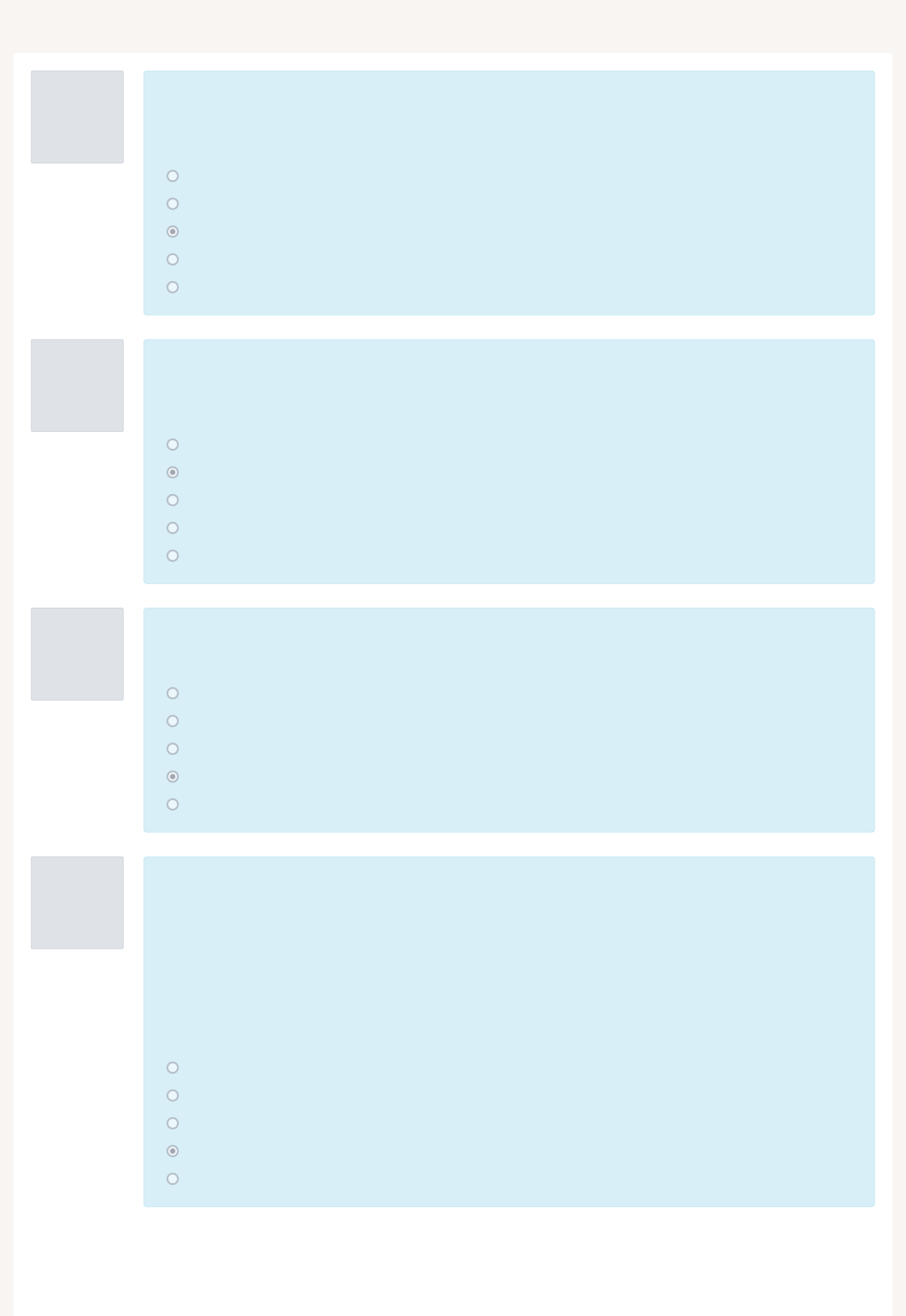 Questão 1 Correto Atingiu 1,00 de 1,00 Questão 2 Correto Atingiu 2,00 de 2,00 Questão 3 Correto Atingiu 2,00 de 2,00 Questão 4 Correto Atingiu 1,00 de 1,00 Uma amostra de nove trabalhadores revelou os seguintes salários recebidos, em R$: 1.200,00; 850,00; 1.250,00; 980,00; 1.250,00; 1.150,00; 800,00; 1.500,00; 1.150,00. Qual é o salário que corresponde ao segundo quartil? Escolha uma opção: a. R$ 980,00 b. R$ 1.250,00 c. R$ 1.150,00 d. R$ 1.500,00 e. R$ 915,00 Uma empresa encomenda uma pesquisa de mercado que utilize o método de amostragem aleatória simples. Esse é um caso de amostra probabilística em que cada entrevistado: Escolha uma opção: a. define o seu grau de satisfação com os serviços prestados pela companhia. b. tem a mesma chance, entre o universo da pesquisa, de ser abordado. c. está presente numa lista segmentada por renda, faixa etária e sexo. d. é conhecido dos entrevistadores e dos diretores da organização. e. indica outro entrevistado e assim sucessivamente até o preenchimento da amostra. Amostragem probabilística é considerada: Escolha uma opção: a. por acessibilidade. b. por julgamento. c. por conveniência. d. aleatória simples. e. por cotas. Sobre as vantagens da amostragem por conglomerados, avalie as afirmativas a seguir. I - O plano amostral é mais eficiente já que dentro dos conglomerados os elementos tendem a ser mais parecidos. II - Não há necessidade de uma lista de identificação dos elementos da população. III - Tem, em geral, menor custo por elemento, principalmente quando o custo por observação cresce se aumenta a distância entre os elementos. Está correto o que se afirma em: Escolha uma opção: a. I, II e III. b. I, apenas. c. I e II, apenas. d. II e III, apenas. e. I e III, apenas. Questão 5 Correto Atingiu 2,00 de 2,00 Com base em uma amostra aleatória de tamanho 12 obtiveram-se, pelo método dos momentos, as estimativas pontuais dos parâmetros a e b de uma variável aleatória X uniformemente distribuída no intervalo (a, b), sendo 0 < a < b. A média amostral apresentou um valor igual a 1,5 e a amplitude do intervalo encontrado foi igual a 6. O segundo momento, não centrado, referente à amostra foi igual a: Escolha uma opção: a. 5,25. b. 4,75. c. 4,50. d. 3,00. e. 4,25.