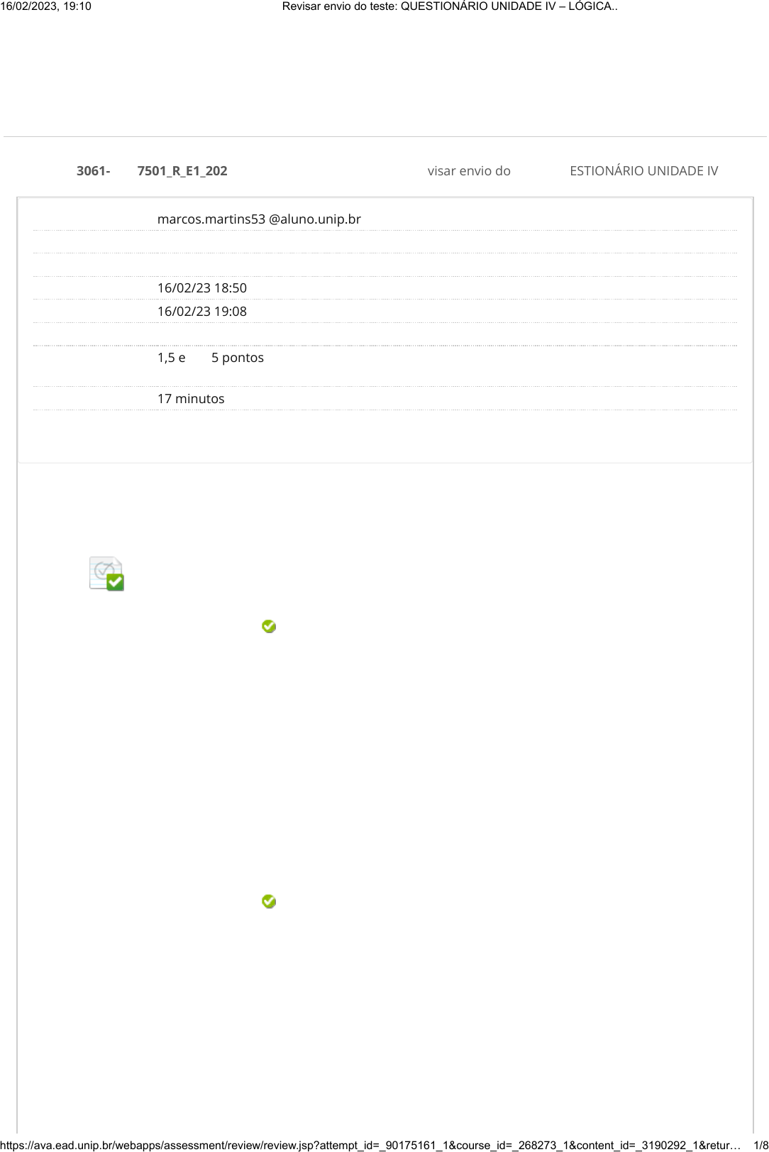 Revisar envio do teste: QUESTIONÁRIO UNIDADE IVLÓGICA 3061-60_57501_R_E1_20231 CONTEÚDO