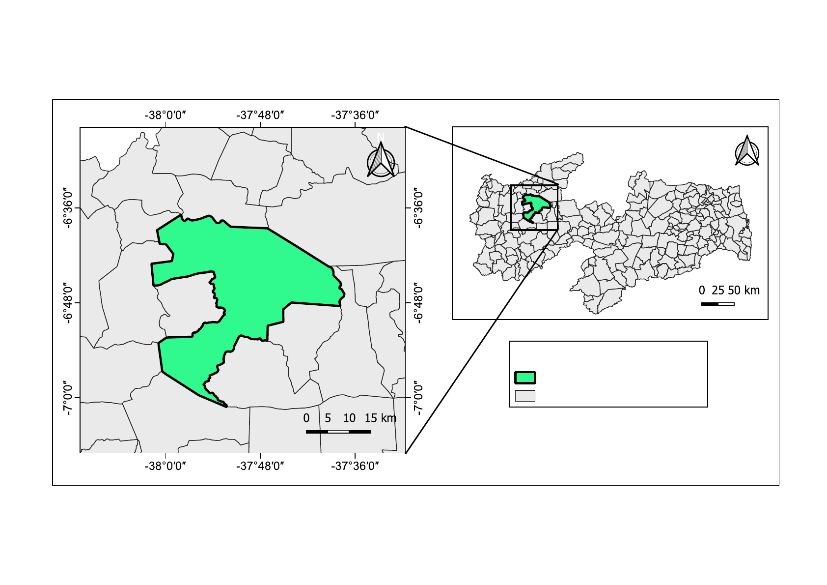 Paraíba-PB Pombal-PB Paraíba LEGENDA DATUM Sirgas 2000 Coordenadas UTM, Zona 24 Sul Base Cartográfica: IBGE (2021) POMBAL-PB