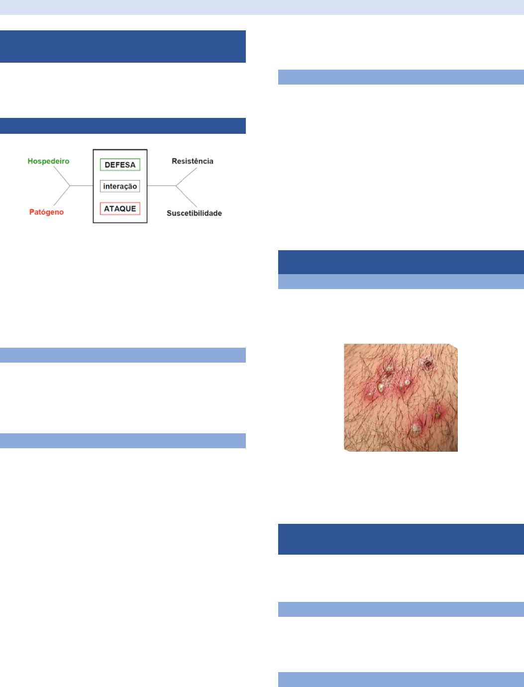 Camila Shelly de V. Ramos PIODERMITES -Pústulas • PATOGÊNESE -Bioma natural da pele -> disbiose -> infecção bacteriana ↳Varia com: *estado do hospedeiro (imunossuprimido) *força da bactéria (kpc) →FOCOS DA PIODERMITE -Primário -> início na pele -Secundário -> inicia em outro órgão e depois atinge pele →MECANISMOS DE DEFESA DA PELE -Características mecânicas da camada córnea ↳Descontinuidade da pele -> maior chance de penetração de microrganismos capazes de infectar -Baixo PH (5,5) ↳Ácido *sabonetes, atb -> alteração do PH -> quebra de mecanismo de defesa da pele -> maior propensão a infecções -Ácidos graxos presentes na secreção sebácea ↳Maior quantidade de ácido graxo na pele -> maior proteção -Sequidão da pele -Interferência bacteriana (microbioma natural da pele) ↳Staphylococcus epidermidis *uso de atb -> proliferação inadequada de bactérias -> infecções →FATORES DETERMINANTES -Patogenicidade do microrganismo ↳Presença de elementos antifagocitários e produção de toxina -Resposta do hospedeiro ↳Imunossupressão *quimioterapia -Porta de entrada do germe • LESÃO ELEMENTAR →PÚSTULA -Supurativas -> presença de bactérias ↳Halo eritematoso -> foco infeccioso -Não supurativas -> sem bactérias ↳Reação de hipersensibilidade a antígenos bacterianos • PIODERMITES X REGIÕES DE ACOMETIMENTO -Quanto mais profundo -> maior propensão para deixar cicatriz →NA EPIDERME -Impetigo -Ectima →DERME** -Foliculite ↳Único folículo sebáceo acometido -Furúnculo ↳Acometimento de 1 folículo piloso e sua respectiva glândula sebácea Camila Shelly de V. Ramos -Carbúnculo ↳Acometimento de inúmeros folículos pilosos e suas respectivas glândulas sebáceas -Abcesso ↳Inúmeros folículos pilosos e glândulas sebáceas acometidas -> unidos -> piodermite • IMPETIGO -Infecção contagiosa →CLASSIFICAÇÃO QUANTO A CAUSA -Impetigo estafilocócico ↳Bolhoso (pústulas íntegras) ↳Região de colonização? Mucosa nasal *depois do tratamento do impetigo -> necessidade de descolonização da mucosa nasal -Impetigo estreptocócico ↳Bolhas que já foram rompidas ou se rompem com facilidade ↳Região de colonização? Grande área corporal (flexuras) *depois do tratamento do impetigo -> necessidade de descolonização de áreas flexurais corporais →EPIDEMIOLOGIA -Comum em crianças -Raro em adultos →FATORES CORRELACIONADOS -Falta de higiene -Outros acometimentos cutâneos que impetignaram ↳Escabiose ↳Eczemas →MANIFESTAÇÕES CLÍNICAS -Crosta melicérica ↳Amareladas *dessecamento de lesões que estavam supurando ↳Se tornam maiores com o decorrer do tempo *tendência de crescimento centrífugo ↳Local? Quaisquer áreas do corpo, mas principalmente em proximidades da mucosa →COMPLICAÇÕES -Glomerulonefrite (GNDA) ↳Principalmente por estreptococos ↳Decorrente, principalmente, por falta de tratamento adequado do impetigo →TRATAMENTO -Para lesão pequena ↳Antibiótico tópico (mupirocina, ácido fusídico) -Para lesão grande/extensa ↳Antibiótico oral (cefalosporina, penicilina, azitromicina) -Para pacientes com lesões disseminadas (não respondem ao tratamento, imunossupressos) ↳Antibiótico endovenoso -Medidas de higiene ↳Banho + sabonete Camila Shelly de V. Ramos OBS:TRATAMENTO IMPETIGO X ECZEMA IMPETIGINADO Prurido intenso + pele ressecada -Antibiótico tópico com corticoide →DIAGNÓSTICO Clínico AUXILIADORES -Bacterioscopia e culturas ↳Análise do tipo (gram + ou -) *em geral -> gram + (estafilo, estrepto) *em pacientes imunossuprimidos -> gram – →DIAGNÓSTICO DIFERENCIAL -Micose -Herpes simples -Escabiose impertigiada • ECTIMA -Mais profundo e mais localizado ↳Bordas bem definidas (necrosadas) →CAUSA Imunossupressão + alta patogenicidade da bactéria -Complicação do impetigo, picada de muriçoca →ETIOLOGIA -Pseudomonas aeruginosa -Estafilococo →CLÍNICA -Lesão ulcerada com borda necrótica ↳Fundo com secreção amarelada/pustulosa ↳Única (profunda, bem localizada) →TRATAMENTO -Tópico (para lesões pequenas, e localizadas) ↳Antibiótico (mudirocina, ácido fusídico) -Oral (para lesões grandes) ↳Penicilinas (mais usadas) ↳Macrolídeos • SD ESTAFILOCÓCICA DA PELE ESCALDADA (SSSS) -Não costuma gerar cicatriz -Doença de Ritter Von Ritter Shein →EPIDEMIOLOGIA -Infecções (otite, amigdalite, conjuntivite) em recém-nascidos ↳A distância -> hipersensibilidade -> disseminação para pele -> destacamento na pele *foco infeccioso não é na pele -Raro em adultos →CAUSA -Toxina do estafilococo ↳Infecção a distância -> toxina -> destacamento/descamação da pele (epiderme) *lesão intraepidermica -> não costuma gerar cicatriz -Foco infeccioso a distância →CLÍNICA -Bolhas flácidas ↳Evoluem com erosões superficiais ↳Áreas epidérmicas destacadas *destacamento intraepiderme (não deixa cicatriz) -Eritema difuso Camila Shelly de V. Ramos -Febre ✓ EXAME FÍSICO -Sinal de nikolsky positivo →TRATAMENTO -Tratamento da doença de base ↳Antibiótico oral (penicilina) = suficiente na maioria dos casos ↳Antibiótico endovenoso (oxacilina) -Medidas gerais ↳Hidratação →DIAGNÓSTICOS DIFERENCIAIS -Pênfigos ↳Foliáceo, vulgar, penfigoide -Necrose epidérmica tóxica (NET) ↳Clivagem subepidérmica OBS:SSSS X NET -SSSS -> intraepiderme ↳Bem superficial -NET -> entre a epiderme e a derme ↳Mais profundo + necrose -> mais grave *maior propensão para deixar cicatriz ↳Tratamento? Retirada da medicação causadora • FOLICULITE -Piodermite que se inicia no folículo piloso ↳Superficial -> não pega bulbo capilar *não interfere no crescimento do pelo →CAUSAS -Traumas -> infecção ↳estafilococo plasmo-coagulase positivo ↳estafilococo plasmo-coagulase negativo e bacilos coliformes (imunossuprimidos) →TIPOS -Superficial ↳Ostiofoliculite OBS:SICOSE DA BARBA -Ostiofoliculite -Pústula folicular centralizada no pelo -Pl