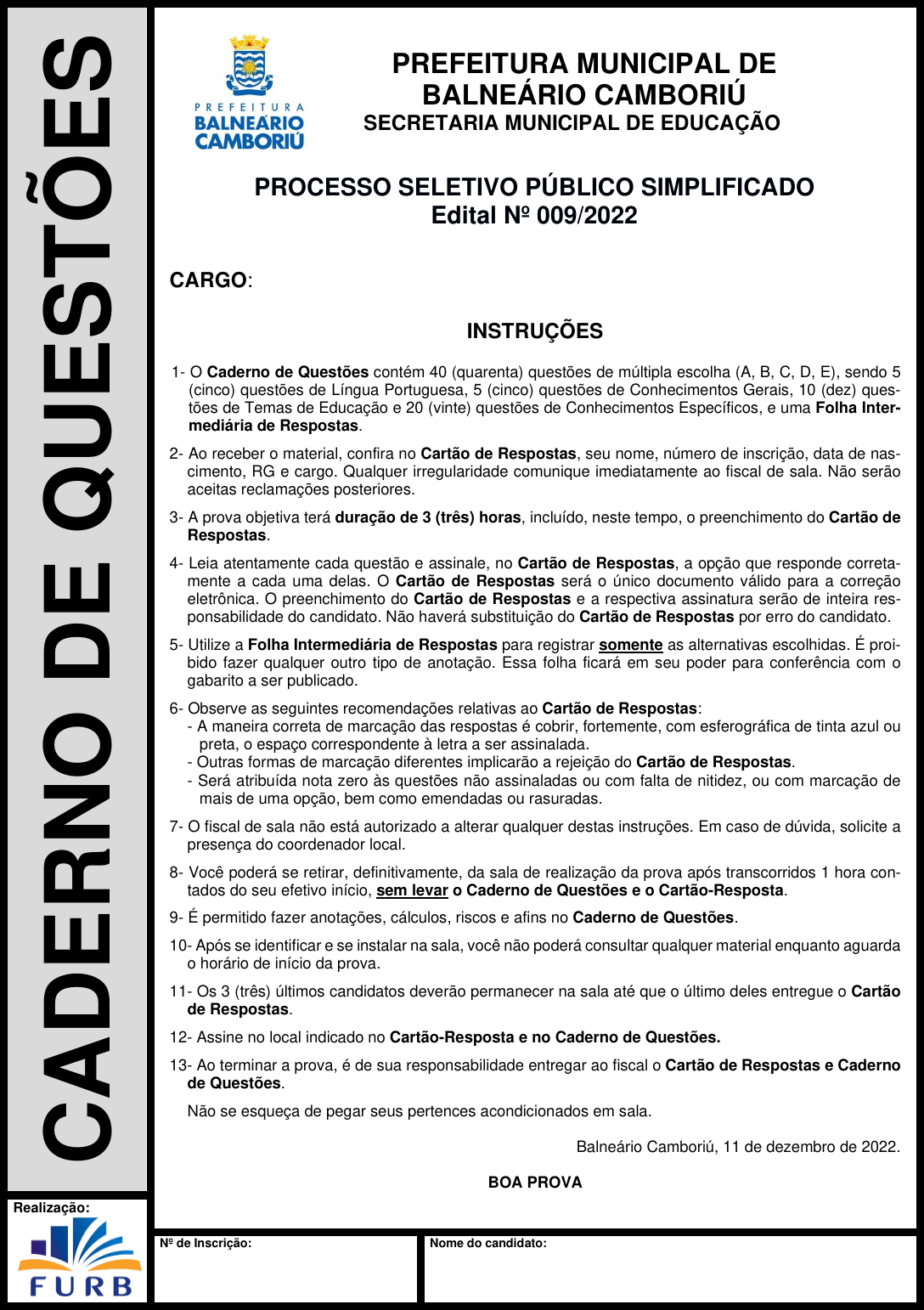 C A D E R N O D E Q U E S T Õ E S PREFEITURA MUNICIPAL DE BALNEÁRIO CAMBORIÚ SECRETARIA MUNICIPAL DE EDUCAÇÃO PROCESSO SELETIVO PÚBLICO SIMPLIFICADO Edital Nº 009/2022 CARGO: F INSTRUÇÕES 1- O Caderno de Questões contém 40 (quarenta) questões de múltipla escolha (A, B, C, D, E), sendo 5 (cinco) questões de Língua Portuguesa, 5 (cinco) questões de Conhecimentos Gerais, 10 (dez) ques- tões de Temas de Educação e 20 (vinte) questões de Conhecimentos Específicos, e uma Folha Inter- mediária de Respostas. 2- Ao receber o material, confira no Cartão de Respostas, seu nome, número de inscrição, data de nas- cimento, RG e cargo. Qualquer irregularidade comunique imediatamente ao fiscal de sala. Não serão aceitas reclamações posteriores. 3- A prova objetiva terá duração de 3 (três) horas, incluído, neste tempo, o preenchimento do Cartão de Respostas. 4- Leia atentamente cada questão e assinale, no Cartão de Respostas, a opção que responde correta- mente a cada uma delas. O Cartão de Respostas será o único documento válido para a correção eletrônica. O preenchimento do Cartão de Respostas e a respectiva assinatura serão de inteira res- ponsabilidade do candidato. Não haverá substituição do Cartão de Respostas por erro do candidato. 5- Utilize a Folha Intermediária de Respostas para registrar somente as alternativas escolhidas. É proi- bido fazer qualquer outro tipo de anotação. Essa folha ficará em seu poder para conferência com o gabarito a ser publicado. 6- Observe as seguintes recomendações relativas ao Cartão de Respostas: - A maneira correta de marcação das respostas é cobrir, fortemente, com esferográfica de tinta azul ou preta, o espaço correspondente à letra a ser assinalada. - Outras formas de marcação diferentes implicarão a rejeição do Cartão de Respostas. - Será atribuída nota zero às questões não assinaladas ou com falta de nitidez, ou com marcação de mais de uma opção, bem como emendadas ou rasuradas. 7- O fiscal de sala não está autorizado a alterar qualquer destas instruções. Em caso de dúvida, solicite a presença do coordenador local. 8- Você poderá se retirar, definitivamente, da sala de realização da prova após transcorridos 1 hora con- tados do seu efetivo início, sem levar o Caderno de Questões e o Cartão-Resposta. 9- É permitido fazer anotações, cálculos, riscos e afins no Caderno de Questões. 10- Após se identificar e se instalar na sala, você não poderá consultar qualquer material enquanto aguarda o horário de início da prova. 11- Os 3 (três) últimos candidatos deverão permanecer na sala até que o último deles entregue o Cartão de Respostas. 12- Assine no local indicado no Cartão-Resposta e no Caderno de Questões. 13- Ao terminar a prova, é de sua responsabilidade entregar ao fiscal o Cartão de Respostas e Caderno de Questões. Não se esqueça de pegar seus pertences acondicionados em sala. Balneário Camboriú, 11 de dezembro de 2022. BOA PROVA Realização: Nº de Inscrição: Nome do candidato: ESPECIALISTA EM EDUCAÇÃO: SUPERVISOR ESCOLAR 1 Língua Portuguesa O texto seguinte servirá de base para responder às questões de 1 a 5. Hábito de leitura estimula o cérebro e promove benefícios para a saúde mental Quem nunca estipulou como meta ler mais? Uma atividade com múltiplas funções, ler pode ser uma forma de entretenimento, um meio para se informar ou um dos caminhos mais simples e acessíveis para construir conhecimento. Independente da motivação, o processo de leitura também é capaz de auxiliar no desenvolvimento de habilidades, contribuindo, inclusive, para a saúde mental. De acordo com pesquisador do Instituto do Cérebro (InsCer) e professor da Escola de Ciências da Saúde e da Vida, Augusto Buchweitz, ler pode atuar como um exercício que estimula o cérebro. "O hábito de leitura tem relação comprovada com uma melhor qualidade de saúde mental. A leitura, por envolver imaginação, mentalização, antecipação e aprendizagem (sempre aprendemos, ao menos, palavras novas), funciona como um 'exercício' para o cérebro humano. Apesar de não ser um músculo, o nosso cérebro precisa ser estimulado", destaca o pesquisador.Outro fator que enfatiza a relação entre a leitura e a qualidade de saúde mental é ação da atividade na redução do estresse. A professora Aline Fay, coordenadora do curso de licenciatura em Letras com ênfase na Língua Inglesa, ressalta que pesquisas já demonstram resultados positivos sobre essa contribuição. "Uma pesquisa realizada pela Universidade de Sussex mostrou que ler ajuda a reduzir em até 68% os níveis de estresse. Durante o estudo, os sujeitos analisados diminuíram a frequência cardíaca e aliviaram a tensão dos músculos", salienta a professora. Os benefícios da leitura não atuam no nosso cérebro apenas no presente. Estudos apontam que ler pode ser uma forma de proteger a mente contra o surgimento de doenças neurodegenerativas. Segundo a professora Aline Fay, quando lemos, melhoramos o funcionamento cerebral, o que ajuda a "atrasar" sintomas de doenças como demência e Alzheimer. Ela destaca que inúmeras pesquisas comprovam o aumento das conexões neurais durante a leitura. Um desses estudos, realizado pela Universidade Emory, descobriu que ler afeta nosso cérebro da mesma forma como se realmente tivéssemos vivenciado os eventos sobre os quais estamos lendo. Diante disso, a professora ainda aponta que, ao lermos, podemos aumentar nossa empatia, ou seja, a capacidade de compreender ese solidarizar emocionalmente com o outro. Mas nem todos os gêneros agem da mesma forma. O professor Augusto Buchweitz afirma que, de acordo com o conteúdo de cada história, outras regiões cerebrais são ativadas, resultando em comportamentos, emoções e experiências distintas. "Durante a leitura de histórias de suspense, por exemplo, a ativação do cérebro tem relação direta com a experi