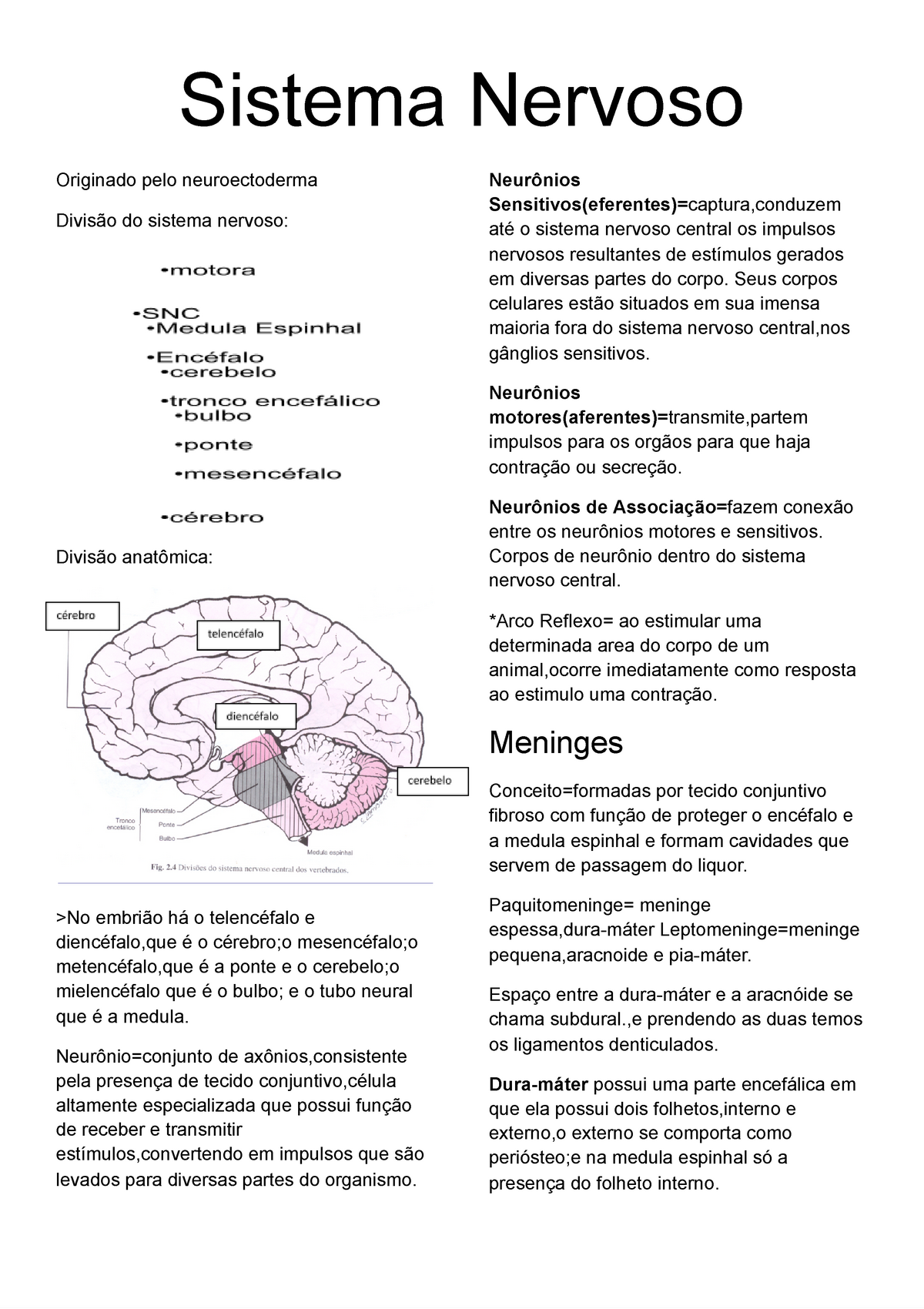 Apostila de Neuroanatomia (Medicina) - Resumo