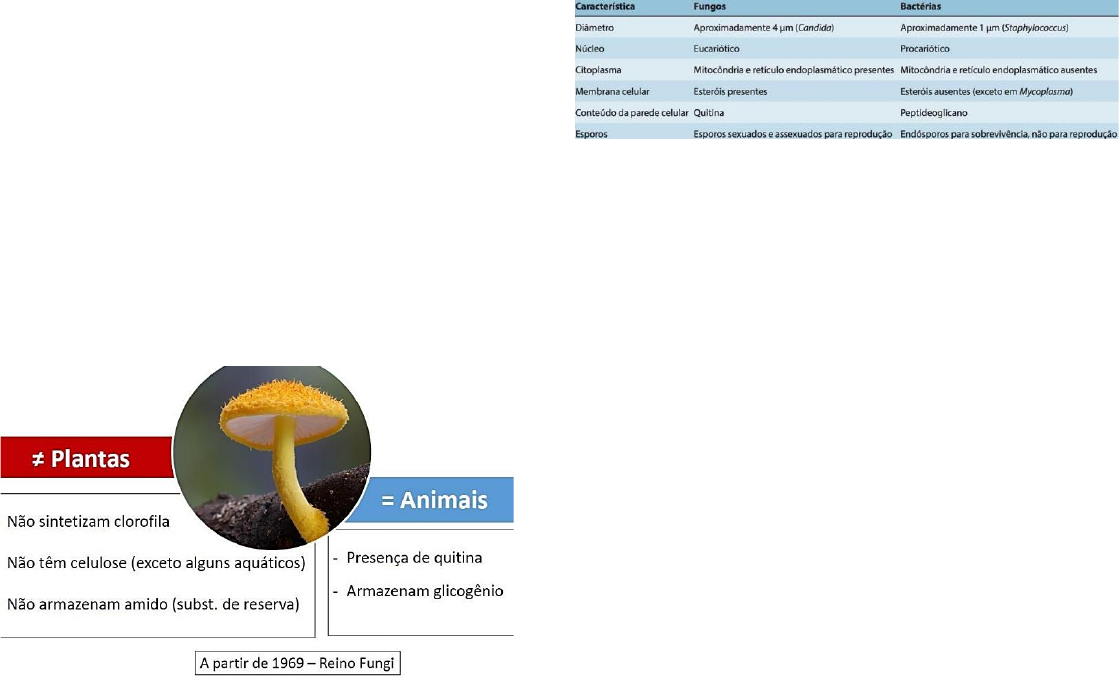Fungos, Micologia Função: - Papel ecológico de decomposição; - Ciclagem de nutrientes da natureza; • Reciclagem da matéria orgânica em cadeia alimentar Características gerais dos fungos: - Micologia: Mykes- cogumelo +logos- estudo; - Eucariotos; - Ubíquos; - Unicelulares e/ou pluricelulares; - Heterotróficos= nutrição absortiva. - Reprodução: sexuada e assexuada; - Dispersão: disseminação dos propágulos na água, animais, homem, sementes, insetos e pelo ar; - Aeróbicos ou anaeróbicos facultativos; - Crescem bem à temperatura ambiente e em meios ácidos; Fungos: levedura- cogumelo- bolores. Estrutura: - Fungos podem ser uni ou pluricelulares. A célula fúngica é constituída pelos principais componentes encontrados nos organismos eucarióticos: • Núcleo • Ribossomo • Complexo de Golgi • Retículo endoplasmático • Mitocôndria • Vacúolos Comparação entre Fungos e Bactérias: Parede celular dos fungos: - A parede da célula fúngica é composta basicamente por quitina (e não por peptideoglicano, como nas bactérias). Citoplasma: - O citoplasma é onde ocorrem as sínteses e o metabolismo energético. São encontrados: inclusões de glicogênio, que é a principal substância de reserva de energia dos fungos. Mitocôndrias responsáveis pelos mecanismos energéticos; Ribossomos e retículo endoplasmático, responsáveis pela síntese de proteínas. Nucleo: - Os fungos podem ter um, dois ou mais núcleos natureza lipídi - envoltos por uma carioteca de ca. No interior do núcleo encontra-se o nucléolo, que contém DNA, RNA e proteínas. Cápsula: - Alguns fungos, apresentam uma cápsula mucopolissacarídica com estrutura fibrilar composta de amilose e de um poliosideo semelhante a goma arábica. A cápsula é importante na patogênese desse fungo por dificultar a fagocitose. Morfologia: - A identificação da maioria das espécies fúngicas é realizada considerando-se suas variadas características morfológicas; - Os fungos incluem as leveduras, os bolores ou mofos, que são fungos microscópicos, e os cogumelos, que são considerados fungos superiores, macroscópicos. Leveduras: - As leveduras, de maneira geral, são unicelulares, esferoidais ou ovais, e podem se reproduzir assexuada ou sexuadamente. - Quando o núcleo das células em desenvolvimento se divide em dois, e um septo divide a célula original em duas células filhas exatamente iguais à célula de origem. Cissiparidade ou Divisão Direta: - Quando ocorre a formação de um broto ou gêmula num determinado ponto da célula. O nu ́cleo se divide em dois, e um deles migra para o broto, que cresce e se separa da célula mãe. Brotamento ou Gemulação: - Em meios de cultivo, as leveduras apresentam colônias pastosas ou cremosas, de cor branca, creme, rosa, laranja ou preta, dependendo da espécie. - A Malassezia sp. é um fungo leveduriforme pertencente a microbiota normal, é um patógeno oportunista do meato acústico externo e tegumento de cães e gatos; - Os fatores predisponentes estão associados à dermatite seborréica decorrente de distúrbios endócrinos e metabólicos, alterações cutâneas por hipersensibilidade, defeitos de queratinização, tratamentos recentes com antibióticos e determinadas características raciais; - O prognóstico é bom quando a causa é identificada e corrigida. A doença não é considerada contagiosa para outros animais ou para humanos, exceto para indivíduos imunossuprimidos. Bolores: - Os bolores são filamentosos, multicelulares, com células tubulares denominadas hifas, cujo conjunto é denominado micélio. - O micélio dos bolores pode ser dividido em duas partes morfologicamente distintas: • o micélio vegetativo, que cumpre as funções de crescimento da espécie. • o micélio reprodutivo, tem func ̧ões de reprodução e disseminac ̧ão da espécie, através da formação de esporos(propágulos). • Micélio vegetativo é a parte correspondente a sustentação e absorção de nutrientes, se desenvolvendo no interior ou sobre o substrato; o O micélio que se projeta na superfície e cresce acima do meio de cultivo é o micélio aéreo. o Quando o micélio aéreo se diferencia para sustentar os propágulos de reprodução ou os corpos de frutificação, constitui o micélio reprodutivo - Em cultivo, esses fungos apresentam colônias filamentosas, que podem ser algodonosas, aveludadas ou com outras características e com os mais variados tipos de pigmentaça ̃o. Fungos: - Reprodução Sexuada e Assexuada: • A reprodução sexual dos fungos é extremamente variada em detalhes e assegura a flexibilidade que permite a adaptação a condições adversas, ou seja, a variabilidade genética necessária à manutenc ̧ão das espécies o A reprodução sexuada ocorre entre fungos filamentosos, cogumelos e também entre algumas espécies de leveduras. Crescimento de Hifa: Ciclo de vida Generalizado: - A reprodução assexuada ocorre com a formação de esporos endógenos ou exógenos e tem grande importância na dispersão dos fungos, pois origina grande número de propágulos. • Endósporos: são formados em hifas especiais denominadas esporangióforos, que aumentam de volume na extremidade, originando o esporângio. • Ectosporos: são esporos que se formam na extremidade de hifas especiais denominadas conidióforos e que recebem o nome de conídios. - Esporos de origem assexuada: - Na dependência de condições ambientais, os fungos reproduzem-se de maneira diversa durante o seu ciclo de vida; - Grande parte das espécies fúngicas utiliza, para sua manutenção e disseminação, a reprodução assexuada, que possibilita a formação de grande quantidade de esporos, facilitando a dispersão e a reproduc ̧ão sexual, que possibilita a variabilidade genética necessária para enfrentar as adversidades ambientais, em constantes modificações. - Os fungos habitam os mais variados substratos. A maioria das espécies vive no solo, tend