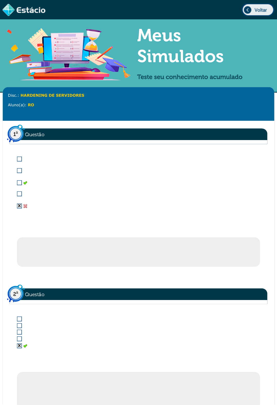 Meus Simulados Teste seu conhecimento acumulado Disc.: HARDENING DE SERVIDORES Aluno(a): RODOLPHO HELIODORO LOPES NEVES 202104652577 Acertos: 9,0 de 10,0 09/03/2023 Acerto: 0,0 / 1,0 Qual das alternativas a seguir melhor define o conceito de Política de Segurança da Informação? É um documento que estabelece como será efetuado o processo de hardening dos sistemas computacionais de uma organização. É o documento que define a baseline de hardening mais adequada aos níveis de segurança da informação de cada organização. É o documento que estabelece diretrizes relacionadas à utilização dos recursos de tecnologia da informação. É um documento que contém o planejamento das aquisições de sistemas de segurança para a implementação de uma estrutura de defesa em camadas. É um conjunto de costumes e de boas práticas relacionadas à segurança da informação desenvolvidas a partir da cultura organizacional. Respondido em 09/03/2023 17:40:38 Explicação: A Política de Segurança da Informação (PSI) pode ser definida como um documento que reúne um conjunto de ações, técnicas e boas práticas para o uso seguro de dados empresariais. Em outras palavras, é um manual que determina as medidas mais importantes para certificar a segurança de dados da organização. Acerto: 1,0 / 1,0 Assinale a alternativa a seguir que corresponde a um aspecto positivo na utilização do comando sudo. Permite alterar a senha do root. Permite o compartilhamento da senha do root. Permite que um simples usuário tenha os mesmos privilégios do usuário root. Permite executar comandos sem vincular à conta deste usuário. Permite a implementação do princípio do menor privilégio. Respondido em 09/03/2023 17:40:50 Explicação: O Sudo é um comando utilizado no Sistema Operacional Linux, para que usuários comuns tenham privilégios de outro usuário e que consigam executar tarefas específicas dentro do sistema. Questão1 a Questão2 a https://simulado.estacio.br/alunos/inicio.asp javascript:voltar(); Com o Sudo, o usuário executa essas tarefas com segurança, de uma maneira que o super usuário ou, se preferir, administrador consegue controlar. Acerto: 1,0 / 1,0 Dentre as alternativas a seguir assinale a única que corresponde a uma característica do OpenSSL que não é observada no Ncat. Permite realizar a captura de banner. Permite criar certificados no padrão X.509. Estabelece conexões criptografadas. Permite o envio e o recebimento de shell reverso. Realiza transferência de arquivos. Respondido em 09/03/2023 17:42:34 Explicação: A única alternativa que se encontra em desacordo com o assunto relacionado é: "Permite criar certificados no padrão X.509." Acerto: 1,0 / 1,0 Você deseja estabelecer uma conexão SSH com um host "C" (IP 192.168.20.100). Entretanto, a máquina não está acessível por meio de seu host local "A" (IP 192.168.10.15), o que requer a utilização de um host intermediário "B" (IP 192.168.20.10) para viabilizar o acesso. Qual é o comando correto para estabelecer um túnel SSH, a partir do host local "A", que utilize o host "B" como gateway para alcançar o host "C"? ssh -L 127.0.0.1:8022:192.168.20.10:22 estudante@92.168.20.100 ssh -L 127.0.0.1:8000:192.168.20.100:80 estudante@192.168.20.10 ssh -L 127.0.0.1:8000:192.168.20.10:80 estudante@92.168.20.100 ssh estudante@192.168.10.20 -p 22 ssh -L 127.0.0.1:8022:192.168.20.100:22 estudante@192.168.20.10 Respondido em 09/03/2023 17:43:40 Acerto: 1,0 / 1,0 Dentre as alternativas abaixo, assinale a que melhor apresenta o conjunto de funcionalidades implementáveis a partir do Bind9. Servidor DNS Direto e Transparente. Servidor DNS Direto e Reverso. Servidor DNS Direto e Autoritativo. Servidor DNS Local e Autoritativo. Servidor DNS Direto, Recursivo, Autoritativo e Reverso. Respondido em 09/03/2023 17:44:53 Explicação: A alternativa que corresponde a correta é "Servidor DNS Direto, Recursivo, Autoritativo e Reverso." Acerto: 1,0 / 1,0 Questão3 a Questão4 a Questão5 a Questão 6 a Um arquivo em lote é, na realidade, um arquivo de texto que contém uma sequência de comandos com o objetivo de realizar determinadas tarefas. Ao invocar um arquivo em lote no prompt de comando, o Windows executa os comandos na sequência em que foram inseridos nesse arquivo. Qual a extensão de nome deste arquivo de texto não formatado? .com .txt .bat .exe .dll Respondido em 09/03/2023 17:45:32 Explicação: Arquivos .BAT são arquivos de lote que armazenam diversas instruções para serem executadas pelo Windows. É possível criar e executar desde rotinas simples, até rotinas complexas, tal como realizar recuperação de banco de dados, realizar a automatizar backups, mapear unidades de rede e muito mais. Acerto: 1,0 / 1,0 Dentre as alternativas a seguir, acerca das características do Active Directory (AD), assinale a única alternativa incorreta: Ele utiliza o protocolo Lightweight Directory Access Protocol (LDAP) para organizar os recursos de rede de forma hierárquica. Ele permite gerenciar remotamente um grupo de hosts. Ele foi desenvolvido com base no PowerShell, de maneira que o seu gerenciamento pode ser realizado não só pela interface gráfica, mas também via linha de comando. Ele permite redefinir a senha ou mover a conta de um usuário por meio cmdlets do PowerShell. Ele não permite atribuir permissões em múltiplos domínios. Respondido em 09/03/2023 17:54:18 Explicação: A única alternativa que se encontra em desacordo com os conceitos abordados na questão é: "Ele não permite atribuir permissões em múltiplos domínios". Acerto: 1,0 / 1,0 Dentre as alternativas a seguir assinale a que corresponde ao processo de testagem da segurança de sistemas capaz de gerar evidências sobre os riscos e as consequências da exploração de determinadas vulnerabilidades. Enumeração de Vulnerabilidades. Gerenciamento de Ameaças. Scanning de Vulnerabilidades. Penetration Tests. Análise de Vulnerabilidades. Respo