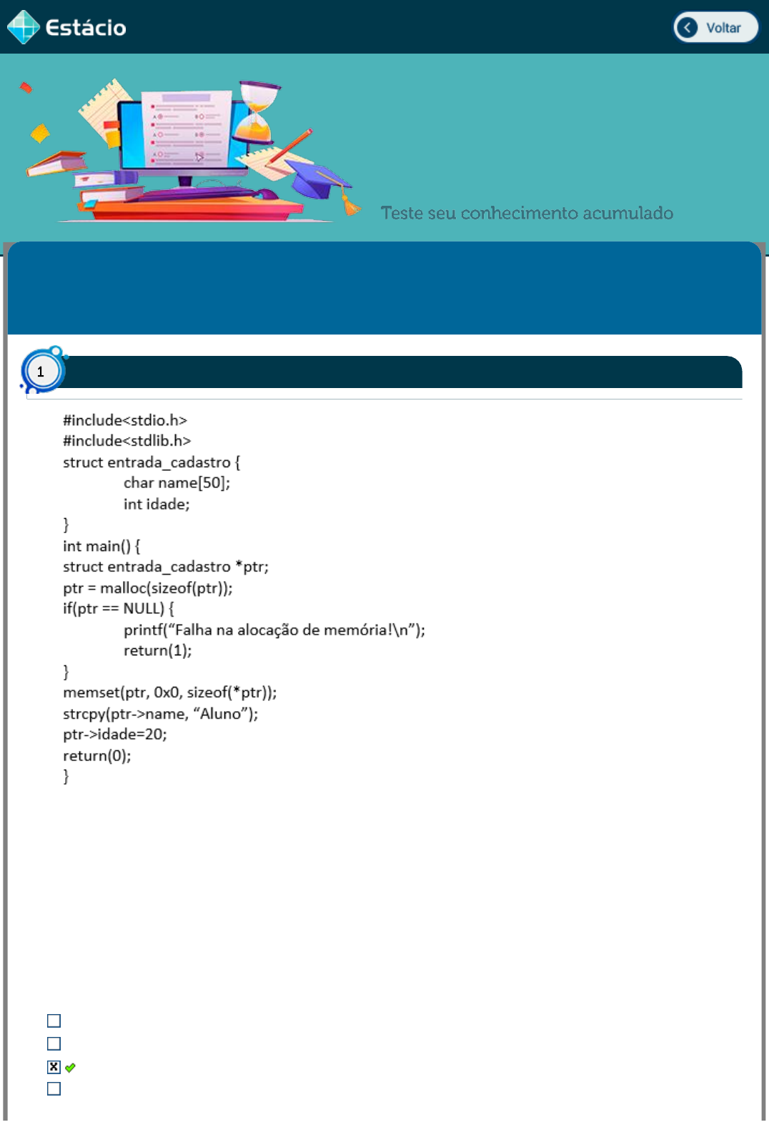 ( ) A função strcpy copia a palavra Aluno para o vetor name da struct entrada_cadastro.