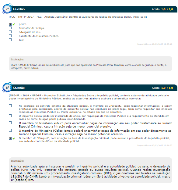 Dentre auxiliares da justiça no processo penal, inclui-se perito. Promotor de advogado do assistente do Ministério Juiz. Sobre inquérito policial controle externo da atividade policial e poder do Ministério Público, analise as assertivas abaixo e assinale a alternativa incorreta: No controle externo da atividade policial, o membro do Ministério Público pode requisitar informações, a serem prestadas pela autoridade policial acerca de inquérito policial não concluído no prazo legal, bem como requisitar sua imediata remessa ao Ministério Público ou Poder Judiciário, no estado em que se encontra. O inquérito policial pode ser instaurado de ofício ou por requisição do Ministério Público e a requerimento do ofendido em casos de crime de ação penal pública. O membro do Ministério Público pode encaminhar peças de informação em seu poder diretamente ao Juizado Especial caso a infração seja de menor potencial. O membro do Ministério Público jamais poderá encaminhar peças de informação em seu poder diretamente ao Juizado Especial caso a infração seja de menor potencial.