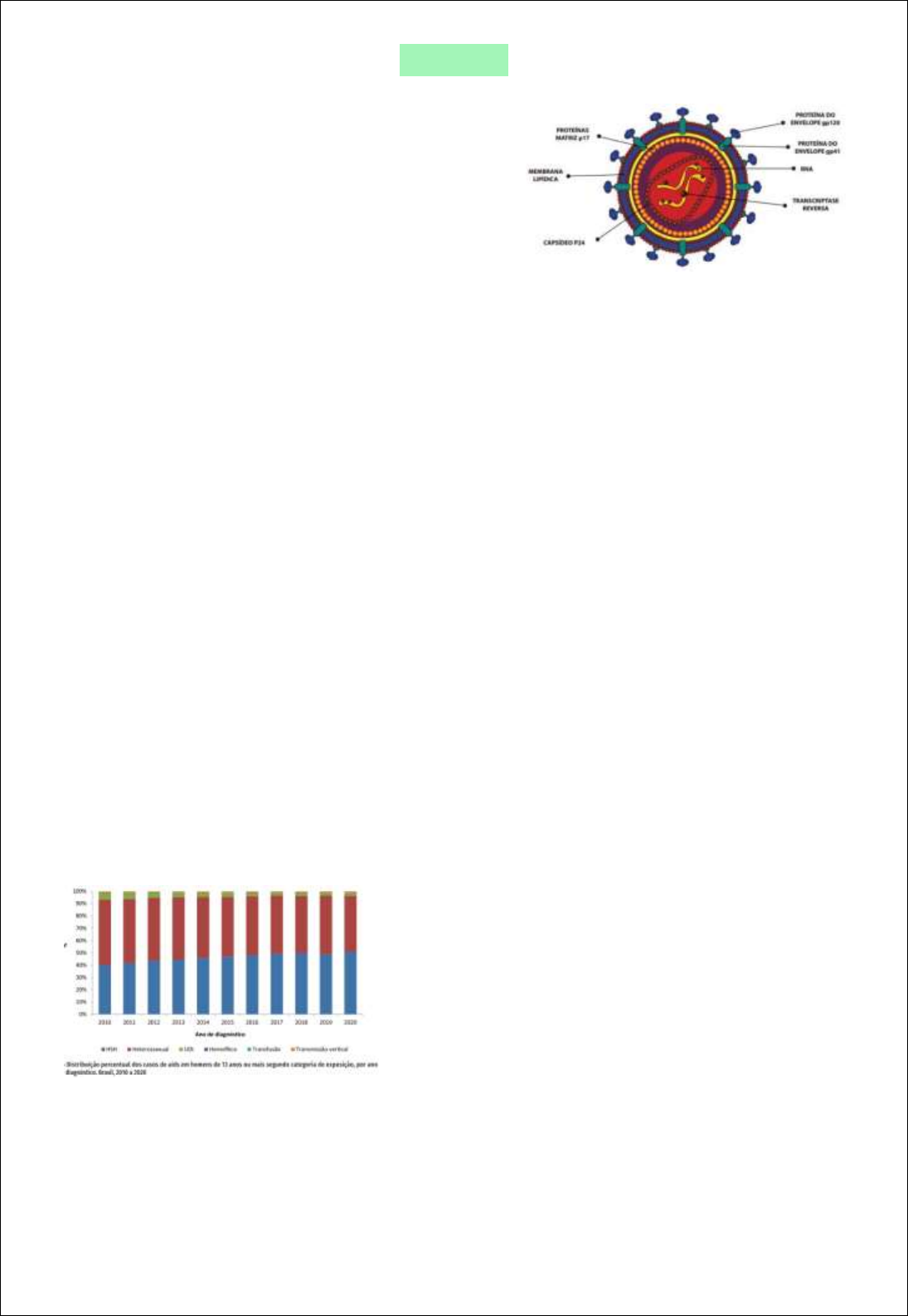 HIV e AIDS Surgimento do HIV • Acredita-se que o vírus de imunodeficiência símia (SIV), de chimpanzés, foi transmitido a seres humanos por contato com sangue durante a caça desses animais → se transformou em HIV • Surgimento na África Ocidental Epidemiologia • Primeiros casos em 1981/1982 o 1° → casos em homo e bissexuais o Logo depois → novos casos em usuários de drogas injetáveis, hemofílicos, pacientes de transfusão e heterossexuais caribenhos/africanos • Primeira droga licenciada → azidotimidina ou AZT em 1987 • Advento do “coquetel” ou TARV → modificação da história natural da doença • Infecção pelo HIV e AIDS fazem parte da lista nacional de notificação compulsória de doenças • É uma pandemia mundial • Possui status de doença crônica → tem tratamento mas não tem cura • No Brasil (atualmente): o Mais de 1 milhão de casos e mais de 360 mil óbitos o Número de casos vem reduzindo o Mais prevalente em homens e em indivíduos de 20-34 anos o Não tem mais diferença significativa entre o número de heterossexuais ou homossexuais portadores o Hemofílicos, transmissão vertical e transfusão são minoria Vírus da imunodeficiência humana • Retrovírus (vírus de RNA) com dois tipos biológicos: HIV-1 e HIV-2 o HIV-2 ↓ imunodeficiência que HIV-1 • Classificação filogenética: o Grupos: HIV-1 (M, N, O, P) e HIV-2 (A- H) o Existem ainda subtipos dos grupos e sub-subtipos • Estrutura: • Infecção: o 1) Glicoproteína GP-120 liga a receptores CD4 o 2) Entra na célula e faz replicação com transcrição reversa o 3) As células infectadas se fundem com linfócitos CD4 e disseminam o vírus no organismo → sintomas da fase aguda o 4) Organismo ativa imunidade específica contra HIV → L-TCD8 o 5) Controle da carga viral → sintomas da fase aguda desaparecem o 6) Vírus entra em latência por anos -> indivíduo assintomático Transmissão • Tipos: o Sexual → hetero e homossexual o Parenteral → sangue e hemoderivados o Vertical → gestação, intraparto e amamentação • Fluidos corporais que contêm o vírus: o Sangue o Sêmen o Secreção vaginal o Leite materno o Outras secreções que estejam com sangue • Não contêm o vírus: o Saliva, urina, fezes, vômitos Transmissibilidade do HIV • Todas as vias de transmissão podem contaminar, porém a transmissibilidade vai depender de: o Tipo de exposição o Tipo de agulha ou material biológico o Presença de outras IST’s o Carga viral do portador do vírus HIV o Imunidade do indivíduo exposto Fisiopatogenia • Deficiência progressiva quantitativa e qualitativa dos linfócitos T CD4 o HIV altera TCD4 e os destroi por ação direta e indireta • Principais células alvo do HIV: o Linfócitos T CD4 e macrófagos ▪ Macrófagos servem de reservatório, têm suas funções alteradas e podem ser destruídos nas fases tardias • Outros: células dendríticas, megacariócitos, linfócitos B, células NK e outras • Anticorpos específicos contra o HIV são sintetizados 1-2 semanas após a infecção → são identificados em sangue e fluidos o Essas primeiras semanas são conhecidas como janela imunológica História natural da doença Progressão da infecção pelo HIV para AIDS • Progressores rápidos: queda rápida da contagem LT-CD4 e carga viral elevada / evolução para AIDS 1 a 2 anos após a transmissão → 5 a 10% o Progressores intermediários: queda mais lenta da contagem LT-CD4 / evolução para AIDS 8-10 anos após transmissão → 80% • Progressores lentos ou não progressores: discreta queda contagem LT-CD4, e carga viral baixa / evolução para AIDS em > 10 anos ou mesmo não progressão da doença → 10 a 15% o Controladores de elite → mantém viremia menor que 50 cópias/ml FASES Infecção aguda • Em 40% é assintomática, no restante há SRA Síndrome retroviral aguda (SRA): • Entre 1ª e 3ª semana • Vírus está com alta carga viral e os níveis de LT descendentes → mais fácil de transmitir • 50-90% dos indivíduos infectados • Semelhante a quadro de dengue, gripe ou mononucleose • Principais achados: o Febre, adenopatia, faringite, exantema, mialgia e cefaleia • Outros: o Esplenomegalia, letargia, astenia, anorexia, náuseas, vômitos, diarreia, perda de peso, úlceras orais o Meningite asséptica, neurite periférica sensitiva ou motora, paralisia do nervo facial ou síndrome de Guillain Barré • Autolimitada → desaparece em 3-4 semanas o Linfadenopatia, letargia e astenia podem persistir por meses Latência clínica • Nessa etapa, HIV está ativo mas reproduz em níveis muito baixos • Pode durar várias décadas para individuo em tratamento, e cerca de 1 década para não tratados • Exame físico normal, exceto pela linfadenopatia • Exames laboratoriais podem estar alterados → plaquetopenia (comum), anemia (normocítica e normocrômica) e leucopenia • Enquanto a contagem de LTCD4 permanece acima de 350 células/mm3 → episódios infecciosos mais frequentes são bacterianos Fase sintomática (síndrome pré-aids) • Alta carga viral e diminuição na contagem de LTCD4 → entre 200 e 300 células/mm³ • Maior susceptibilidades a doenças oportunistas • Sintomas: o Constitucionais (febre baixa, perda ponderal, sudorese noturna, fadiga) o Diarreia crônica o Cefaleia o Alterações neurológicas o Infecções bacterianas (pneumonia, sinusite, bronquite) o Lesões orais (leucoplasia oral pilosa e candidíase oral de repetição) o Candidíase vulvovaginal persistente o Herpes-zoster Síndrome da imunodeficiência adquirida (AIDS) • Critério do CDC modificado (Brasil) → evidência laboratorial de infecção pelo HIV + TCD4 < 350 ou doença definidora de AIDS • Critério do RJ / Caracas → evidência laboratorial de infecção pelo HIV + > ou = 10 pontos de acordo com escala de sinais/sintomas ou doenças AIDS avançada → CD4 < 200 células ou estágio clinico 3 ou 4 pela OMS Gr