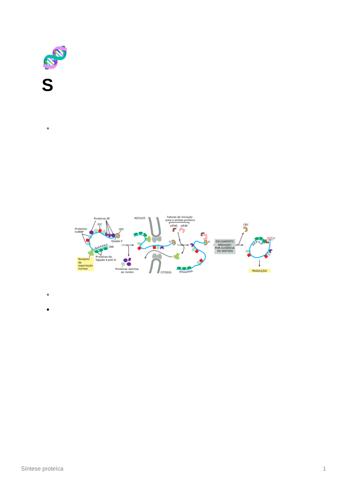Síntese proteíca 1 🧬 Síntese proteíca Transporte do núcleo para o citoplasma Os RNAsm adequadamente processados são transportados através dos complesxos do poro nuclear, para isso um receptor de transporte nuclear específico deve ser ligado ao RNAm (isso ocorre simultaneamente à clivagem e poliadenização 3’). Após ajudar a mover a molécula de RNA através do complexo do poro nuclear, o receptor se dissocia do mRNA, penetra novamente no nucleo, e é utilizado para exportar uma nova molécula de RNAm. Processamento do RNAr Montagem das unidades ribossomais (RNAr + proteina) O nucleolo é a região onde ocorre o processamento do rRNAs e sua oganizaçãi sob a forma de subunidades ribossômicas. Diferente de muitas das principais organelas da célua, o nucleoo não está delimitado por membrana, ele é um enorde agregadp de macromoléculas, incluindo os próprios genes do rRNA, percursores dos rRNAs, rRNAs maduro, enzimas de processamento de rRNAs, snoRNPs, um grande conjunto de fatores de associação (incluindo ATPases, GTPases, proteínas-cinase e RNA-helicases), proteínas ribossômicas e ribossomos parcialmente formados. Síntese proteíca 2 Tradução As proteínas são sintetizadas dos moldes de mRNA, além disso todo RNAm são lidos na direção 5’→ 3’ e as cadeias polipeptidicas são sintetizadas da extremidade amina para a carboxila terminal. Cda aminoácido é especificado por três bases (um códon) no RNAm de acordo com um código genético. Características do código genético. As regras pelas quais a sequência de nucleotídeo de um gene, passando por uma molécula intermediária de RNAm, é traduzida na sequência de aminoácido é chamada de codigo genético. A sequência de nucleotídeos em uma molécula de RNAm é lida em grupos consecutivos de três. Sendo assim, como o RNA é composto 4 nucleotídeos diferentes por combinação 4x4x4 da 64 nucleotídeo diferentes, mas há 20 aminoácido, logo, há triplete que nuca serão usados, ou alguns aminoácidos são especificados por mais de um triplete. Cada grupo de três nucleotídeo consecutivos sobre o RNA é denominado códon e cada códon especifica um aminoácido. No processo Síntese proteíca 3 de tradução de uma sequência nucleotídica em uma sequência de aminoácidos, a sequências nucleotídica é lida da extremidade 5’ para a 3’ em grupos consecutivos de 3 nucleotídeo. Uma sequência de RNA pode ser traduzida em 3 fases de leitura, mas apenas uma delas sintetiza a proteína correta. O papel do RNAt na síntese proteíca O RNAt são moléculas adaptadoras composta por 80 nocleotídeo. Ele possui uma estrutura semelhante a folha de trevo, uma vez que há complementariedade do pareamento de bases entre seguimentos do RNAt formando regiões de dupla-hélice deixando essa molécula com esse aspecto. 💡 Essa estrutura é submetida a enovelamentos adicionais para formar uma estrutura compacta em forma de L mantidas por ligações de hidrogênio adicionais entre diferentes regiões da molécula. O anticódon está presente em uma das extremidades não pareadas do RNAt, alça anticódon, ele é um conjunto de 3 nucleotídeo consecutivos que pareiam com o códon complementar presente no RNAm. Além disso, nessa estrutura, na extremidade 3’, possui um sítio onde o aminoácido que corresponde aquele códon é ligado ao transportador. Assim, o RNAt tem como função transportar os aminoácidos para os códons do RNAm, uma vez que possui na sua estrutura o anticódon que correste a uma sequência consecutiva de 3 nucleotídeo, a qual reconhece o códon e se liga a ele, além disso na sua outra extremidade 3’ possui um sítio, no qual se liga o aminoácido correspondente ao códon para sintetizar a proteína. Síntese proteíca 4 A importância das aminoacil sintetases para a síntese proteica. O reconhecimento e a ligação ao aminoácido correto dependem de enzimas denominadas aminoacil sintetases, elas têm como função ligar covalentemente cada aminoácido ao seu conjunto apropriado de molécula de RNAt, ligando a sua extremidade 3’ onde há o sítio de ligação do aminoácido. No processo de aminoacilação, ativação do aminoácido, Inicialmente, ele é ativado por meio da ligação do seu grupo carboxila diretamente a um AMP, formando um um aminoácido adenilado. Para isso, há a hidrólise do ATP, o qual doa o AMP que vai se ligar ao aminoácido. O grupo carboxila do aminoácido ligado ao AMP é transferido para uma hidroxila presente no açúcar na extremidade 3’ do RNAt, formando o aminoacil-tRNA. Essa reação produz uma ligação de alta energia entre o RNAt e o aminoácido. O anticódon presente no RNAt se liga ao codon no RNAm e, logo, o aminoácido é selecionado por seu códon. Síntese proteíca 5 💡 Essa reação produz uma ligação de alta energia entre o RNAt acregado e o aminoácido, sendo que a energia dessa ligação é posteriormente usada para ligar o aminoácido covalentemente à cadeia polipeptídica crescente. Síntese proteíca 6 💡 Fidelidade do processo de aminoacilação A aminoasi sintetase seleciona o aminoácido correto, uma vez que o aminoácido correto tem alta afinidade pela fenda do sítio da sua sintetase, sendo os aminoácidos maiores excluidos do sítio ativo. A sintetase faz isso forçando, quando o RNAt se liga, o aminoácido para o seu sitío de edição, como ele possui alta afinidade pelas dimesões exatas do aminoácido correto, se o aminoácido for o errado ele é removido por hidrólise. Os ribossomos procarióticos e eucarióticos, além da ação catalítica do RNAr na reação da peptidil transferase. A sintese proteica é realizada nos ribossomos, o qual é composto por proteínas e diversas moléculas de RNAs ribossômico. Os ribossomos de procariontes e os de eucariontes possuem estruturas semelhantes, sendo que os ribossomos são usualmente designados de acordo com suas taxas de sedimentação: 70’s para os ribossomos ba