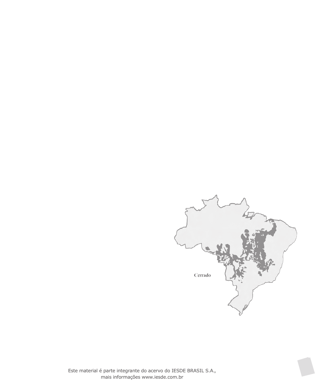 Cerrado I Introdução N esta etapa de nosso trabalho estaremos apresentando o cerrado brasileiro, um típico represen-tante do bioma savana, por isso algumas vezes também denominado de savana brasileira.Vamos estudar suas características geográficas, como clima, solo e hidrografia. Também teremos a oportunidade de conhecer sua flora, que é rica e diversificada, sua fauna e as adaptações que seus representantes têm para sobreviverem nesse ecossistema. Vamos descobrir qual é a influência que o fogo tem sobre seus componentes e as especificações que desenvolvem as plantas como consequência de sua adaptação a este elemento. Uma característica bastante interessante é que apesar de possuir sua área definida, pode apare- cer como manchas em outros ecossistemas, distribuídos pelo Brasil. É necessário conhecermos para podermos valorizá-lo e conservá-lo, pois sabemos que cada ecossistema, dentro das suas características específicas, tem uma grande importância no contexto geral, e é um ecossistema ameaçado, assim como outros. Tire o máximo de informações possíveis e faça bom uso delas. Características geográficas do ecossistema Cerrado é o nome regional dado às “savanas tropicais brasileiras”. O cerrado é o segundo maior bioma do país, supera- do apenas pela Floresta Amazônica. Está localizado no Planalto Central Brasileiro e em uma parte no Sul do Brasil, no estado do Paraná, em Jaguariaíva. Com uma extensão de mais de 2 milhões de quilômetros quadrados, e dimensão de 25% do território nacional, não é de admirar que esteja representado em grande parte dos estados do país. É o ecossistema brasileiro mais ameaçado nos dias de hoje. A partir dos anos de 1960, com a interiorização da capital e a aber- tura de uma nova rede rodoviária, os ecossistemas deram lugar à pecuária e à agricultura extensiva, como da soja, do arroz e do trigo. Tais mudanças se apoiaram, sobretudo, na implantação de novas infraestruturas viárias e energéticas, bem como na descoberta de novas vocações desses solos regionais, permitindo novas atividades agrárias rentáveis, em detrimento de uma biodiversidade até então pouco alterada. 93 Este material é parte integrante do acervo do IESDE BRASIL S.A., mais informações www.iesde.com.br Nos anos 1970 e 1980, a fronteira agrícola se expandiu com os desmatamen- tos, queimadas, uso de fertilizantes químicos e agrotóxicos, provocando a altera- ção de 67% de áreas do cerrado, restando 20% de área em estado conservado. O ecossistema é caracterizado por tipos específicos de vegetação, como a caatinga, o cerrado, entre outros. É cortado por três das maiores bacias hidrográficas da América do Sul. Abrange os estados de Mato Grosso, Mato Grosso do Sul, Goiás, Minas Ge- rais, Piauí, Distrito Federal, Tocantins e parte dos estados da Bahia, Ceará, Ma- ranhão, São Paulo, Paraná e Rondônia. Ocorre também em outros estados como Roraima, Pará, Amapá e Amazonas, aparecendo como manchas. Compreende os extensos chapadões, cobertos por uma vegetação de peque- nas árvores retorcidas, dispersas em meio a um tapete de gramíneas. Faz fronteira com outros ecossistemas, podendo ocorrer em manchas no Amapá e Roraima, até o Paraná. Aparece em Pernambuco, Alagoas, Sergipe, Pará e no Amazonas, como encraves dentro da floresta. Sua diversidade de vida está relacionada ao fato de ali se encontrarem nas- centes que fazem parte das três grandes bacias hidrográficas brasileiras: Amazô- nica, do Paraná e do São Francisco. A rede hidrográfica apresenta características diferenciadas, em função da sua localização, extensão territorial e diversidade fisiográfica. Ao sul, abrange parte da bacia do Paraná; à sudeste, o Paraguai; ao norte, a Bacia Amazônica; à nordeste, Parnaíba e à leste, o São Francisco. O clima típico da região dos cerrados é quente, semiúmido e sazonal, com verão chuvoso e inverno seco. A temperatura média anual fica em torno de 22ºC a 23ºC. As máximas absolutas mensais não variam muito, podendo chegar a mais de 40ºC. Já as mínimas absolutas mensais possuem uma grande variação, poden- do atingir temperaturas próximas ou até abaixo de zero, nos meses de maio, junho e julho. A ocorrência de geadas no cerrado não é incomum. A pluviosidade anual fica em torno de 800 a 1 600 milímetros. Ao contrário da temperatura, a precipitação média mensal apresenta uma gran- de estacionalidade, concentrando-se nos meses de primavera e verão (outu- bro a março), que é a estação chuvosa. Durante os meses quentes de verão, quando as chuvas se concentram e os dias são mais longos, tudo se torna muito verde. Curtos períodos de seca, chamados de veranicos, podem ocor- rer em meio a esta estação, criando sérios problemas para a agricultura. No período de maio a setembro os índices pluviométricos mensais reduzem-se bastante, podendo chegar a zero. No inverno, ao contrário, o ca- pim amarela e seca; quase todas as árvores e arbustos, por sua vez, trocam a folhagem por outra totalmente nova. Disto resulta uma estação seca de três a cinco meses de duração. No início deste período a ocorrência de nevoeiros é comum nas primeiras horas das manhãs, formando-se grande quantidade de orvalho sobre as plantas Cerrado I 94 Este material é parte integrante do acervo do IESDE BRASIL S.A., mais informações www.iesde.com.br Cerrado I e umedecendo o solo. Já no período da tarde os índices de umidade relativa do ar caem bastante, podendo baixar a valores próximos a 15%, principalmente nos meses de julho e agosto. Os solos são geralmente muito antigos, quimicamente pobres e profundos, azonados, de cor vermelha ou vermelho-amarelada, porosos, permeáveis, bem drenados e, por isso, intensamente lixiviados. Em sua textura predomina a areia, em seguida a argila e por último o silte. São predominantemente arenosos, areno- -argilosos, argilo-arenosos e ainda eventu