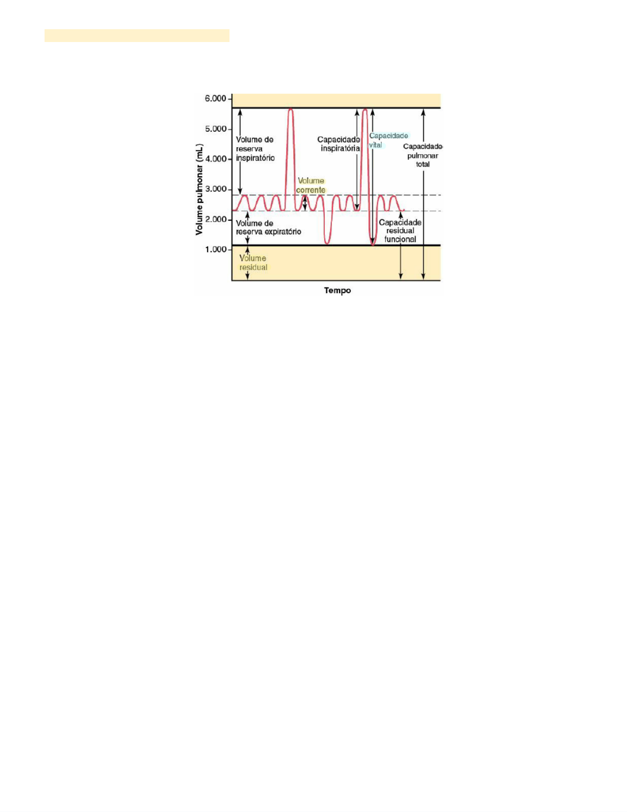 Júlia Demuner - MED UVV XXIX Volumes e Capacidades Pulmonares Os volumes pulmonares são convencionalmente divididos em quatro volumes primários e quatro capacidades . Fisiologicamente, os volumes e capacidades pulmonares variam em função de muitos fatores tais como: gênero, idade, superfície corporal, atividade física, postura. - Volume corrente: quantidade de ar inspirada ou expirada espontaneamente em cada ciclo respiratório, em geral, oscila entre 350 e 500 mℓ. - Volume de reserva inspiratório: volume máximo que pode ser inspirado voluntariamente a partir do final de uma inspiração espontânea. - Volume de reserva expiratório: volume máximo que pode ser expirado voluntariamente a partir do final de uma expiração espontânea. - Volume residual: volume de gás que permanece no interior dos pulmões após a expiração máxima (não pode ser medido pelo espirógrafo simples). - Capacidade vital: quantidade de gás mobilizada entre uma inspiração e uma expiração máximas, é a soma de três volumes primários, corrente, de reserva inspiratório e de reserva expiratório. - Capacidade inspiratória: volume máximo inspirado a partir do final de uma expiração espontânea , corresponde à soma dos volumes corrente e de reserva inspiratório. - Capacidade residual funcional: quantidade de gás contida nos pulmões no final de uma expiração espontânea , corresponde à soma dos volumes de reserva expiratório e residual (não pode ser medido pelo espirógrafo simples). - Capacidade pulmonar total: quantidade de gás contida nos pulmões ao final de uma inspiração máxima, equivale à adição dos quatro volumes primários (não pode ser medido pelo espirógrafo simples). Júlia Demuner - MED UVV XXIX Espirometria - Aires, cap.41 A espirometria é a medida da quantidade de ar inspirado e expirado e dos fluxos respiratórios. Aplicações: exame utilizado para determinar a causa ventilatória da dispnéia, quantificar a disfunção ventilatória, assim como, acompanhar a função pulmonar e a resposta ao tratamento. Indicações: Tosse crônica; Fumante (diagnóstico precoce); Asma (avaliação da dispneia); Volumes Pulmonares Esses volumes e capacidades recebem denominações próprias: - Volume corrente: quantidade de ar inspirada ou expirada espontaneamente em cada ciclo respiratório, em geral, oscila entre 350 e 500 mℓ. - Volume de reserva inspiratório: volume máximo que pode ser inspirado voluntariamente a partir do final de uma inspiração espontânea. - Volume de reserva expiratório: volume máximo que pode ser expirado voluntariamente a partir do final de uma expiração espontânea. - Volume residual: volume de gás que permanece no interior dos pulmões após a expiração máxima (não pode ser medido pelo espirógrafo simples). - Capacidade vital: quantidade de gás mobilizada entre uma inspiração e uma expiração máximas, é a soma de três volumes primários, corrente, de reserva inspiratório e de reserva expiratório. - Capacidade inspiratória: volume máximo inspirado a partir do final de uma expiração espontânea , corresponde à soma dos volumes corrente e de reserva inspiratório. - Capacidade residual funcional: quantidade de gás contida nos pulmões no final de uma expiração espontânea , corresponde à soma dos volumes de reserva expiratório e residual (não pode ser medido pelo espirógrafo simples). - Capacidade pulmonar total: quantidade de gás contida nos pulmões ao final de uma inspiração máxima, equivale à adição dos quatro volumes primários (não pode ser medido pelo espirógrafo simples). Exame A espirometria permite medir o volume de ar inspirado e expirado e os fluxos respiratórios, sendo especialmente útil a análise dos derivados da manobra expiratória forçada. Para realização deste exame é fundamental a compreensão e colaboração do paciente, equipamentos exatos e técnicas padronizadas. A espirometria não é capaz de medir o VR, CRF e CPT . Parâmetros Avaliados - Capacidade vital forçada (CVF): volume máximo de ar exalado com esforço máximo, a partir do ponto de máxima inspiração (L). Júlia Demuner - MED UVV XXIX - Volume expiratório forçado no 1º segundo (VFE1): volume de ar exalado no primeiro segundo da manobra de capacidade vital forçada (gravidade da obstrução de vias aéreas) (L) → gravidade da obstrução. - VEF1/CVF (índice de Tiffeneau): relação volume expiratório forçado no primeiro segundo/capacidade vital forçada → se reduzido abaixo de 70, indica obstrução de vias aéreas. - Fluxo expiratório forçado médio (FEF): representa o fluxo expiratório forçado médio de um segmento obtido na manobra de capacidade vital forçada (L/s). - Fluxo expiratório forçado médio (FEF) (25-75%): fluxo expiratório forçado de 25% a 75% da capacidade vital forçada (L/s). Representa a resistência das vias aéreas de médio calibre (na asma, como em outras doenças respiratórias, a resistência ao fluxo aéreo torna-se particularmente grande durante a expiração. - Pico de fluxo expiratório (PFE): representa o fluxo máximo de ar durante a manobra de capacidade vital forçada (L/s). Curvas da Espirometria Fluxo - Volume O fluxo expiratório, geralmente, se inicia com o fluxo alto que vai decaindo até que chegue a zero (pessoa soltou todo ar que consegue soltar). Consiste em uma análise gráfica do fluxo gerado durante a manobra de CVF desenhado contra a mudança de volume, cujas características da curva podem demonstrar quadros obstrutivos e restritivos. Volume - Tempo Inspiração é sempre ramo descendente e a expiração é sempre o ramo ascendente . Na expiração, observamos que a capacidade vital forçada atinge um platô (volume máximo que a pessoa consegue exalar). Critérios de Aceitação Mínimo de 3 manobras aceitáveis (caso uns dos itens abaixo seja feito de maneira errônea, o sistema não registrará a espirometria): - Inspiração máxima antes 