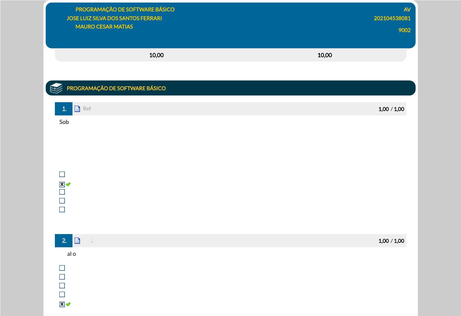 Avaliação: 10,00 pts Nota SIA: 10,00 pts