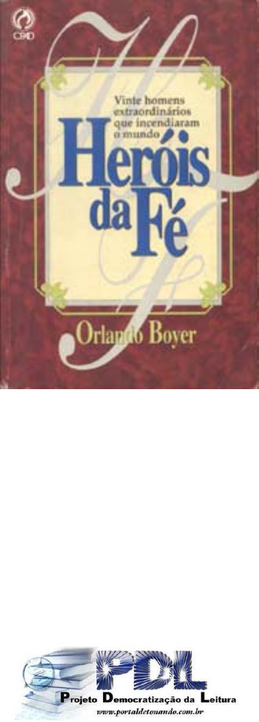 HHeerróóiiss ddaa FFéé Vinte homens extraordinários que incendiaram o mundo Orlando S. Boyer Biografias cristãs CPAD – Casa Publicadora das Assembléias de Deus Rio de Janeiro, RJ 15ª Edição – 1999 Digitalizado, revisado e formatado por SusanaCap WWW.PORTALDETONANDO.COM.BR/FORUMNOVO/ Sumário APRESENTAÇÃO O SALVADOR ESPERA E O MUNDO CARECE O SOLUÇO DE UM BILHÃO DE ALMAS JERÔNIMO SAVONAROLA MARTINHO LUTERO JOÃO BUNYAN JÔNATAS EDWARDS JOÃO WESLEY JORGE WHITEFIELD DAVI BRAINERD GUILHERME CAREY CHRISTMAS EVANS HENRIQUE MARTYN ADONIRAM JUDSON CARLOS FINNEY JORGE MÜLLER DAVI LIVINGSTONE JOÃO PATON HUDSON TAYLOR CARLOS SPURGEON PASTOR HSI DWIGHT LYMAN MOODY JÔNATAS GOFORTH Apresentação "Visitei o velho templo de Nova Inglaterra onde Jônatas Edwards pregou o comovente sermão: ''Pecadores nas mãos de um Deus irado". Edwards segurava o manuscrito tão perto dos olhos, que os ouvintes não podiam ver-lhe o rosto. Porém, com a continuação da leitura, o grande auditório ficou abalado. Um homem correu para a frente, clamando: Sr. Edwards, tenha compaixão! Outros se agarraram aos bancos, pensando que iam cair no Inferno. Vi as colunas que eles abraçaram para se firmarem, pensando que o Juízo Final havia chegado. "O poder daquele sermão não cessa de operar no mundo inteiro. Mas convém saber algo mais da parte da história geralmente suprimida. Imediatamente antes desse sermão, por três dias Edwards não se alimentara; durante três noites não dormira. Rogara a Deus sem cessar: 'Dá-me a Nova Inglaterra!' Ao levantar-se da oração, dirigindo-se para o púlpito, alguém disse que tinha o semblante de quem fitara, por algum tempo, o rosto de Deus. Antes de abrir a boca para proferir a primeira palavra, a convicção caiu sobre o auditório." Assim escreveu J. Wilbur Chapman acerca de Jônatas Edwards. Esse célebre pregador, contudo, não foi o único que lutou com Deus em oração. Ao contrário, depois de ler cuidadosamente as biografias de alguns dos maiores vultos da Igreja de Cristo, concluímos que nunca se pode atribuir o êxito de qualquer deles unicamente a seus próprios talen- tos e força de vontade. Certamente um biógrafo que não crê no valor da oração, nem conhece o poder do Espírito Santo que opera nos corações, não mencionaria a oração como sendo o verdadeiro mistério da grandeza dos heróis da fé. Lemos, por exemplo, dois livros, bem escritos, da vida de Adoniram Judson. Quando estávamos quase a concluir que houvesse alguns verdadeiros heróis da Igreja, realmente grandes em si mesmos, encontramos outra biografia dele, escrita por um de seus filhos, Eduardo Judson. Nessa preciosa obra descobre-se que esse talentoso missionário passava diariamente horas a fio, de noite e de madrugada, em íntima comunhão com Deus, em oração. - Qual é, então, o mistério do incrível êxito dos heróis da fé, da Igreja de Cristo? - Esse mistério foi a profunda comunhão com Deus que esses homens observaram. Confessamos que a bibliografia abaixo muito nos inspirou ao escrever este livro: Jerônimo Savonarola: Lawson. Martinho Lutero: Lindsay, Lima, Olson, Stwart, Canuto, Saussure, Knight- Anglin e Frodsham. João Bunyan: Gulliver e Lawson. Jônatas Edwards: Allen, Hickman e Howard. João Wesley: Beltaz, Lawson, Telford, Miller, Fitchett, Winchester, Joy e Buyers. Jorge Whitefield: Gledstone, Lawson e Olson. Davi Brainerd: Smith, Harrison, Lawson e Edwards. Guilherme Carey: Harrison, Dalton, Olson e Marshman. Christmas Evans: Davis e Lawson. Henrique Martyn: Harrison e Page.Adoniram Judson: Harrison e Judson. Carlos Finney: Day, Beltz e Finney. Também nos inspiraram obras sobre a vida de outros homens de Deus (heróis também) que figuram neste livro: Jorge Muller Davi Livingstone João Paton Hudson Taylor Carlos Spurgeon Pastor Hsi Dwight Lyman Moody Jônatas Goforth Não empregamos aqui a palavra "herói" no sentido pagão, isto é, grandes vultos humanos divinizados. A Bíblia fala de "homens ilustres em valor", "os valentes", "os fiéis", "os vencedores" ...A vida desses homens foi que nos inspirou, com seus sermões ardentes e empolgantes. Muitos crentes ficam satisfeitíssimos por, apenas, escapar da perdição! Eles ignoram "a plenitude do Evangelho de Cristo" (Romanos 15.29). "A vida em abundância" (João 10.10) é muito mais do que ser salvo, como se vê ao ler as biografias referidas. Que o exemplo dos Heróis da Fé nos incite a procurar as bênçãos sem medida, citadas em Malaquias 3.10! O autor O Salvador espera e o mundo carece "Foi quando Stanley Smith e Carlos Studd se hospedaram em nossa casa, que iniciei o maior período de bênçãos da minha vida. Antes eu era crente precipitado e inconstante: às vezes ardia de entusiasmo, para depois passar dias inteiros triste e desanimado. Percebi que esses dois jo- vens possuíam uma coisa que eu não tinha: algo que lhes era uma fonte perene de sossego, força e gozo. Nunca me esquecerei de uma manhã, no mês de novembro, ao nascer o sol, quando a luz entrava pela janela a dentro do quarto, onde eu meditava sobre as Escrituras desde a madrugada. A palestra que tive, então, com os dois moços, influenciou o resto da minha vida. - Não devia eu fazer o que eles tinham feito? "— Não devia eu ser, também, um vaso (apesar de ser barro) para o uso do Mestre?" Assim escreveu o amado e santo pregador F. B. Meyer, sobre a mudança da sua vida que resultou em tanta glória para Cristo, na Terra.Iniciamos a leitura das biografias de alguns dos maiores servos de Deus. - Não devemos reler e meditar sobre a fiel vida de Savonarola, a estupenda obra de Lutero, o zelo incansável de Wesley, o grande avivamento de Edwards... enfim, sobre cada história? Não devemos dei- xar cada herói hospedar-se conosco, como Stanley Smith e Carlos Studd hospedaram-se na casa de F. B. Meyer, para nos falarem e influenciarem, transformando-nos profundamente para todo o resto da vida? Isso é o que o Salvador 