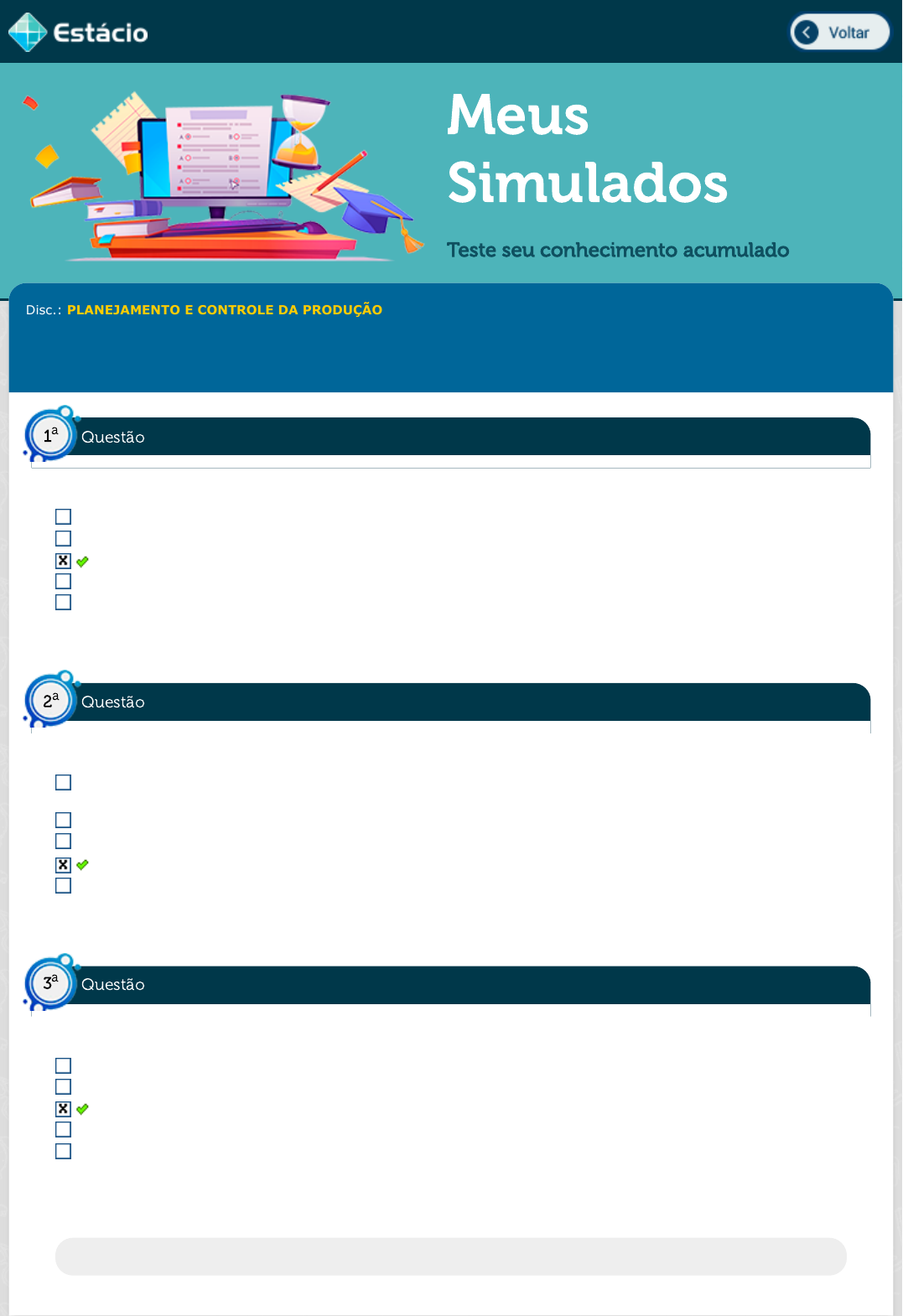 13/03/2023, 21:05 Estácio: Alunos https://simulado.estacio.br/alunos/ 1/4 Meus Simulados Teste seu conhecimento acumulado Disc.: PLANEJAMENTO E CONTROLE DA PRODUÇÃO Aluno(a): Acertos: 10,0 de 10,0 13/03/2023 Acerto: 1,0 / 1,0 No(a) _______________, define-se quais são os objetivos e como fazer para atingi-los. Produção. Controle. Planejamento. Execução. Verificação. Respondido em 13/03/2023 20:54:32 Acerto: 1,0 / 1,0 SOBRE AS ANÁLISES FUTURAS DE MERCADO E PREVISÕES DE DEMANDA, NÃO É CORRETO AFIRMAR: AS ANÁLISES DE MÉDIO PRAZO AUXILIAM NO PLANO AGREGADO DE PRODUÇÃO E NO PLANO MESTRE DE PRODUÇÃO AS ANÁLISES DE CURTO PRAZO ESTÃO RELACIONADAS AO CONTROLE DE ESTOQUES TAIS ANÁLISES SÃO FUNDAMENTAIS PARA A ELABORAÇÃO DO PLANEJAMENTO. EXISTEM AS ANÁLISES DE CURTO E LONGO PRAZO SOMENTE. AS ANÁLISES DE LONGO PRAZO AUXILIAM NAS DECISÕES ESTRATÉGICAS Respondido em 13/03/2023 20:55:35 Acerto: 1,0 / 1,0 Nos métodos de controle da produção, o controle de amostragem parcial é feito: Manual, pelas pessoas encarregadas Automaticamente pelo operador da maquina Com amostras escolhidas ao acaso Com amostras escolhidas planejadamente Apenas pelas maquinas Respondido em 13/03/2023 20:56:28 Explicação: O MÉTODO DE AMOSTRAGEM É QUE GARANTE A QUALIDADE DOS PRODUTOS E SERVIÇOS. Questão1 a Questão2 a Questão3 a https://simulado.estacio.br/alunos/inicio.asp javascript:voltar(); 13/03/2023, 21:05 Estácio: Alunos https://simulado.estacio.br/alunos/ 2/4 Acerto: 1,0 / 1,0 Observe as afirmações com relação aos cinco objetivos de desempenho: I ¿ Fazer corretamente as coisas proporciona vantagem em qualidade. II ¿ Fazer as coisas com velocidade proporciona vantagem em rapidez III ¿ fazer as coisas mais baratas proporciona vantagem em flexibilidade IV ¿ fazer as coisas no tempo certo proporciona vantagem em confiabilidade V ¿ Realizar mudanças no que se está fazendo proporciona vantagem de custo Assinale a afirmativa correta: Apenas as afirmativas I, III e IV estão corretas Apenas as afirmativas I, II e IV estão corretas Apenas as afirmativas I, III e V estão corretas Apenas as afirmativas II, III e IV estão corretas Apenas as afirmativas I, II e V estão corretas Respondido em 13/03/2023 20:57:23 Explicação: Os objetivos de desempenho estão muito bem descritas como: I -Fazer corretamente as coisas proporciona vantagem em qualidade. II ¿ Fazer as coisas com velocidade proporciona vantagem em rapidez IV ¿ fazer as coisas no tempo certo proporciona vantagem em confiabilidade Acerto: 1,0 / 1,0 Uma empresa precisa definir o Estoque de segurança de determinado produto que tem uma demanda média mensal de 800 unidades e o gerente de materiais e logística está prevendo um aumento de demanda de 31% e recebeu informações de seu fornecedor que haverá um atraso de 15 dias na entrega do pedido, cujo prazo normalmente é de um mês. Qual será o Estoque de segurança 772 248 1048 523 249 Respondido em 13/03/2023 20:58:14 Explicação: O ETOQUE DE SEGURANÇA É NECESSÁRIO PARA ATENDER AS VARIAÇÕES DE DEMANDA. Acerto: 1,0 / 1,0 O PCP abrange níveis de planejamentos que obedecem a uma hierarquia, alcançam horizontes de tempos diferentes e são divididos em unidades de tempos diferentes. Leia as afirmações a seguir e identifique as verdadeiras e as falsas. Depois escolha a alternativa de resposta correta. 1a)O horizonte de tempo coberto pelo Planejamento Mestre é normalmente igual ou menor que três meses. 2a) O planejamento mestre é normalmente subdividido em períodos de uma semana. 3a) O horizonte de tempo coberto pelo Planejamento Agregado normalmente é de 12 a 18 meses. 4a) O planejamento agregado é normalmente subdividido, no mínimo, em períodos mensais. Apenas a segunda está certa Apenas a quarta está certa Apenas a primeira está certa Apenas a terceira está certa Todas estão certas Respondido em 13/03/2023 20:58:58 Questão4 a Questão5 a Questão6 a 13/03/2023, 21:05 Estácio: Alunos https://simulado.estacio.br/alunos/ 3/4 Acerto: 1,0 / 1,0 As atividades de ______________________exigem estimativas acuradas dos volumes de produtos e serviços a serem manipulados na cadeia de suprimento. Recursos Humanos. Vendas. Comunicação. Marketing. Produção. Respondido em 13/03/2023 21:00:36 Acerto: 1,0 / 1,0 Os gráficos de controle da qualidade são elementos visuais para o monitoramento de características dos produtos e processos, de forma a indicar alterações numa linha de produção. Para planejar um gráfico de controle, é preciso estabelecer ações complexas no processo e agregar valor ao produto. a meta da organização e um grande volume de produção a variância e envolver toda a empresa nos processos. a frequência de amostragem e o tamanho da amostra. uma linha para novos produtos e retirar uma grande amostra diversas vezes. Respondido em 13/03/2023 21:02:05 Explicação: . Acerto: 1,0 / 1,0 O processo de previsão de demanda consiste em determinar as quantidades de vendas futuras com base em informações históricas, mudanças tecnológicas e tendências de mercado. É um processo que utiliza análise quantitativa e qualitativa. Existem diversos métodos de previsões, cada método sendo mais adequado a determinadas situações específicas. Analise as afirmações abaixo, identifique as verdadeiras e as falsas e depois marque a opção de resposta correta. 1 - O método das médias móveis é um método quantitativo e é adequado para séries que apresentam tendência. 2- O método das médias móveis é um método quantitativo e é adequado para séries estacionárias. 3- O método da suavização (alisamento) exponencial de primeira ordem é um método qualitativo que tem como principal vantagem oferecer a possibilidade de cálculos de previsões considerando vários períodos à frente. 4- O método da suavização (alisamento) exponencial de primeira ordem é um método quantitativo e é adequado para séries estacionárias. Apenas