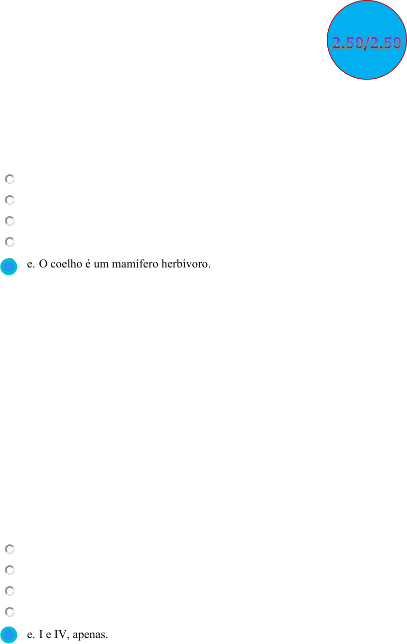 LÓGICA QUESTIONÁRIO UNIDADE I LÓGICA QUESTIONÁRIO UNIDADE I Pergunta 1 1. Do ponto de vista da lógica formal, uma proposição pode ser definida como uma sentença declarativa classificada como verdadeira ou falsa, assumindo um, e apenas um, desses dois valores lógicos. Dessa forma, sentenças imperativas ou interrogativas não são consideradas proposições. Nesse contexto, assinale a alternativa que apresenta uma proposição. a. Qual é a sua cor preferida? b. Boa noite! c. Estude todos os dias. d. Qual é o seu nome? e. O coelho é um mamífero herbívoro. 0,25 pontos Pergunta 2 1. Quando uma proposição apresenta apenas uma ideia que não pode ser subdividida, temos uma proposição simples. É possível unirmos proposições simples utilizando conectivos lógicos. Esses conectivos, também chamados de operadores, são palavras que empregamos na nossa linguagem cotidiana, que ganham destaque no estudo da lógica por serem capazes de formar proposições compostas. Considerando esse contexto, avalie as proposições lógicas a seguir. I. Se o interruptor for desligado, a luz se apagará. II. A Terra gira no sentido anti-horário. III. A garota veste uma blusa verde. IV. A estrela-do-mar é um animal e o dente-de-leão é uma planta. São proposições compostas as afirmativas: a. I, apenas. b. IV, apenas. c. I e II, apenas. d. III e IV, apenas. e. I e IV, apenas. 0,25 pontos Pergunta 3 ormiz Realce ormiz Realce LÓGICA QUESTIONÁRIO UNIDADE I 1. (COPS-UEL/2019) Observe a imagem a seguir. Assinale a alternativa que apresenta corretamente a regra lógica que fundamenta o efeito cômico da tirinha. a. P → Q é verdadeira se, e somente se, P é verdadeiro. b. P → Q é verdadeira se, e somente se, Q é verdadeiro. c. P → Q é falsa se, e somente se, P é verdadeiro. d. P → Q é falsa se, e somente se, P é falso ou Q é verdadeiro. e. P → Q é falsa se, e somente se, P é verdadeiro e Q é falso. 0,25 pontos Pergunta 4 1. Avalie as afirmativas a seguir, que trazem proposições lógicas. I. O número 8 é ímpar. II. O número 2 é par e o número 10 é ímpar. III. Aracaju é a capital de Sergipe ou Santos é a capital de São Paulo. É verdade o que se afirma em: a. I, apenas. b. II, apenas. c. III, apenas. d. I e II, apenas. e. I e III, apenas. 0,25 pontos Pergunta 5 ormiz Realce ormiz Realce ormiz Realce LÓGICA QUESTIONÁRIO UNIDADE I 1. (IBFC/2019 - adaptada) Considere o seguinte quadro de referência de símbolos. Dada a frase abaixo, com estrutura p ∧ q, selecione a alternativa que expresse corretamente a sentença: ~p ∨ ~q. “O dia se renova todo dia e eu envelheço cada dia, cada mês”. a. O dia não se renova todo dia e eu não envelheço cada dia, cada mês. b. O dia não se renova todo dia e eu envelheço cada dia, cada mês. c. O dia não se renova todo dia ou eu não envelheço cada dia, cada mês. d. O dia se renova todo dia ou eu envelheço cada dia, cada mês. e. O dia se renova todo dia se, e somente se, eu envelheço cada dia, cada mês. 0,25 pontos Pergunta 6 1. O diagrama de Venn-Euler a seguir representa o comportamento de uma operação lógica. Qual é essa operação? a. Conjunção. b. Disjunção inclusiva. c. Disjunção exclusiva. d. Condicional. ormiz Realce LÓGICA QUESTIONÁRIO UNIDADE I e. Bicondicional. 0,25 pontos Pergunta 7 1. Considere a expressão lógica 𝑆 = 𝑎 ∧ ~𝑏, que representa o circuito digital que será desenvolvido por um projetista. Sabe-se que o operador “não” é prioritário em relação ao operador “e”. Se tivermos 𝑎 verdadeiro e 𝑏 falso, qual expressão nos leva corretamente ao valor lógico da saída 𝑆? a. 𝑆 = 𝑎 ∧ ~𝑏 = V ∧ ~F = V ∧ V = V b. 𝑆 = 𝑎 ∧ ~𝑏 = V ∧ ~V = V ∧ F = F c. 𝑆 = 𝑎 ∧ ~𝑏 = F ∧ ~F = F ∧ V = F d. 𝑆 = 𝑎 ∧ ~𝑏 = F ∧ ~F = F ∧ V = V e. 𝑆 = 𝑎 ∧ ~𝑏 = V ∧ ~F = V ∧ F = F 0,25 pontos Pergunta 8 1. Considere a expressão 𝑆 = (~𝑎 ∨ 𝑏) ∧ 𝑐, que representa a expressão lógica a ser testada em um comando condicional de um código-fonte. Se tivermos 𝑎 verdadeiro, 𝑏 falso e c falso, qual expressão nos leva corretamente ao valor lógico da saída 𝑆? a. 𝑆 = (~𝑎 ∨ 𝑏) ∧ c = (~F ∨ F) ∧ F = (F ∨ V) ∧ F = V ∧ F = F b. 𝑆 = (~𝑎 ∨ 𝑏) ∧ c = (~V ∨ F) ∧ F = (F ∨ F) ∧ F = F ∧ F = F c. 𝑆 = (~𝑎 ∨ 𝑏) ∧ c = (~V ∨ F) ∧ F = (V ∨ F) ∧ F = V ∧ F = V d. 𝑆 = (~𝑎 ∨ 𝑏) ∧ c = (~V ∨ F) ∧ V = (F ∨ F) ∧ V = F ∧ V = V e. 𝑆 = (~𝑎 ∨ 𝑏) ∧ c = (~V ∨ V) ∧ F = (F ∨ V) ∧ F = V ∧ F = F 0,25 pontos Pergunta 9 1. (IBFC/2020 - adaptada) Sendo 𝑝 uma proposição lógica verdadeira e 𝑞 uma proposição lógica falsa, de acordo com a lógica proposicional e os conectivos lógicos, é correto afirmar que: a. 𝑝 → 𝑞 é verdadeira. b. 𝑝 ↔ 𝑞 é falsa. c. 𝑝 ∧ 𝑞 é verdadeira. ormiz Realce ormiz Realce ormiz Realce ormiz Realce LÓGICA QUESTIONÁRIO UNIDADE I d. 𝑝 ∨ 𝑞 é falsa. e. 𝑝 ⊻ 𝑞 é falsa. 0,25 pontos Pergunta 10 1. (IADES/2017) Considerando os principais símbolos dos conectivos utilizados na lógica matemática, assinale a alternativa cujo valor lógico é verdadeiro. a. A neve é branca ∧ 2 é maior que 5. b. Brasília é a capital do Brasil ∨ 10 é menor que 8. c. Brasília está no Distrito Federal → 100 é maior que 1.000. d. Goiânia está no Distrito Federal ↔ 4 é menor que 12. e. São Paulo é a capital do Brasil ∧ 0 é menor que 1. 0,25 pontos ormiz Realce