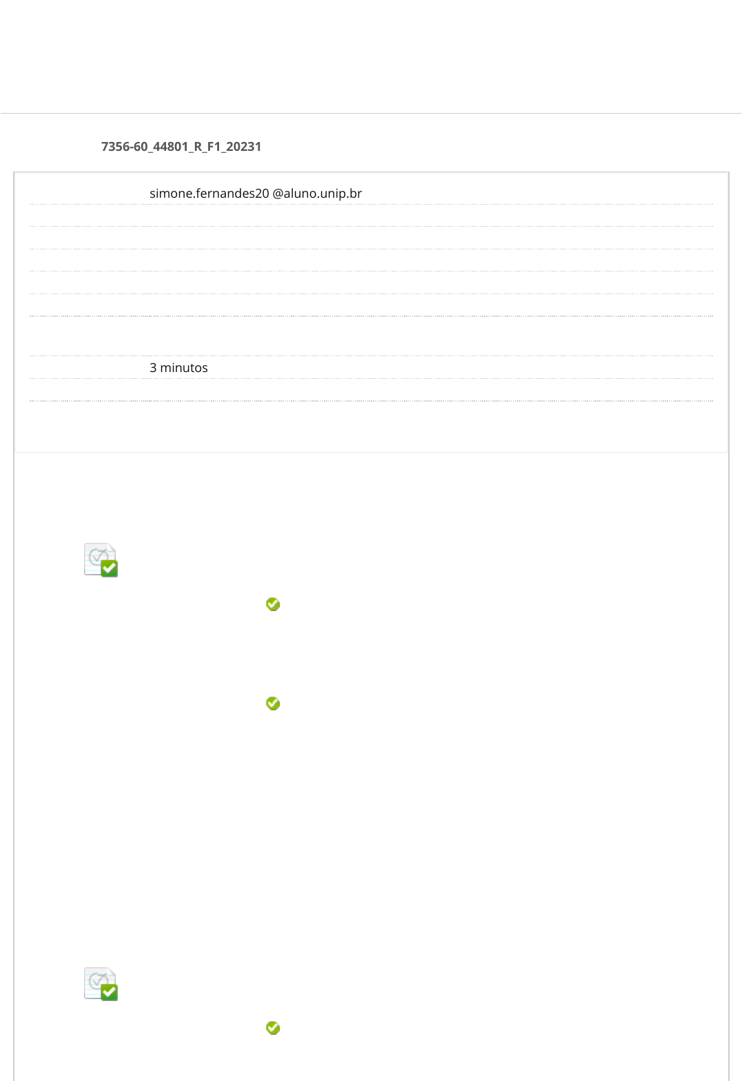 Revisar envio do teste: ATIVIDADE TELEAULA IIHISTOLOGIA 7356-60_44801_R_F1_20231 CONTEÚDO Usuário simone.fernandes20 @aluno.unip.br Curso HISTOLOGIA Teste ATIVIDADE TELEAULA II Iniciado 17/03/23 21:41 Enviado 17/03/23 21:44 Status Completada Resultado da tentativa 0 em 0 pontos Tempo decorrido 3 minutos Autoteste O aluno responde e o resultado do aluno não é visível ao professor. Resultados exibidos Todas as respostas, Respostas enviadas, Respostas corretas, Comentários, Perguntas respondidas incorretamente Pergunta 1 Resposta Selecionada: c. Respostas: a. b. c. d. e. Feedback da resposta: (Uece, adaptado) Na espécie humana, o tipo de tecido conjuntivo que forma o tendão calcâneo é: Tecido conjuntivo denso modelado. Tecido conjuntivo frouxo. Tecido conjuntivo denso não modelado. Tecido conjuntivo denso modelado. Tecido ósseo. Tecido cartilaginoso. Resposta Correta: c) Pergunta 2 Resposta Selecionada: c. Respostas: a. (UEMS) Tecido de ampla distribuição subcutânea, exercendo funções de reservas de energia, proteção contra choques mecânicos e isolamento térmico: Adiposo. Epitelial. UNIP EAD BIBLIOTECAS MURAL DO ALUNO TUTORIAISCONTEÚDOS ACADÊMICOS 0 em 0 pontos 0 em 0 pontos http://company.blackboard.com/ https://ava.ead.unip.br/webapps/blackboard/execute/courseMain?course_id=_268299_1 https://ava.ead.unip.br/webapps/blackboard/content/listContent.jsp?course_id=_268299_1&content_id=_3190151_1&mode=reset https://ava.ead.unip.br/webapps/portal/execute/tabs/tabAction?tab_tab_group_id=_10_1 https://ava.ead.unip.br/webapps/portal/execute/tabs/tabAction?tab_tab_group_id=_27_1 https://ava.ead.unip.br/webapps/portal/execute/tabs/tabAction?tab_tab_group_id=_47_1 https://ava.ead.unip.br/webapps/portal/execute/tabs/tabAction?tab_tab_group_id=_29_1 https://ava.ead.unip.br/webapps/portal/execute/tabs/tabAction?tab_tab_group_id=_25_1 https://ava.ead.unip.br/webapps/login/?action=logout Usuário Destacar Usuário Destacar Usuário Destacar b. c. d. e. Feedback da resposta: Cartilaginoso. Adiposo. Conjuntivo. Epitélio glandular. Resposta Correta: c) Pergunta 3 Resposta Selecionada: a. Respostas: a. b. c. d. e. Feedback da resposta: (UEMS) Indique a alternativa que se refere corretamente ao tecido ósseo. Tecido conjuntivo com matriz calci�cada composta por �bras orgânicas e sais inorgânicos; vascularizado. Tecido conjuntivo com matriz calci�cada composta por �bras orgânicas e sais inorgânicos; vascularizado. Tecido de origem mesodérmica, avascular; suas células, os condroblastos, produzem abundante material intercelular. Constituído de células arredondadas, com núcleo e grande parte do citoplasma restritos à periferia destas pelo acúmulo de gordura. Constituído de células alongadas, plurinucleadas, envolvidas por bainha de tecido conjuntivo; tem origem mesodérmica. Pode derivar-se embrionariamente da ectoderme, da mesoderme ou da endoderme e, com algumas exceções, é vascular. Resposta Correta: a) Pergunta 4 Resposta Selecionada: e. Respostas: a. (Unifor, CE) O sangue é constituído por plasma e três tipos de elementos celulares. As hemácias realizam (1), os (2) são especializados na defesa do organismo e as plaquetas atuam no processo de (3). Para completar corretamente a frase acima, 1, 2 e 3 devem ser substituídos, respectivamente, por: Transporte de oxigênio, leucócitos e coagulação. Osmose, dendritos e fagocitose. 0 em 0 pontos 0 em 0 pontos Sexta-feira, 17 de Março de 2023 21h44min32s GMT-03:00 b. c. d. e. Feedback da resposta: Sínteses, monócitos e fosforilação. Respiração celular, glóbulos vermelhos e absorção. Coagulação, amebócitos e transporte de gás carbônico. Transporte de oxigênio, leucócitos e coagulação. Resposta Correta: e) ← OK Usuário Destacar Usuário Destacar