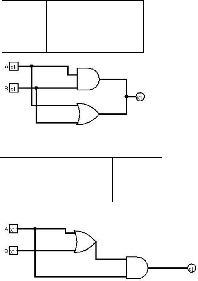 Exercícios: 1. Escreva a tabela verdade e desenhe o circuito para as funções booleanas simples, comprovando as simplificações: 0. A+A.B = A 0. A.(A+B) = A RESPOSTAS: A) A B A.B A+A.B 0 0 1 1 0 1 0 1 0 0 0 1 0 0 1 1 B) A B A+B A(A+B) 0 0 1 1 0 1 0 1 0 1 1 1 0 0 1 1 1. Faça um circuito para a expressão antes da igualdade e outro para após a igualdade e compare as tabelas verdades para comprovar a simplificação do circuito. a) A + Ā.B = A + B b) (A+B).(A+C) = A + B.C A B A\ A\ . B A+A\ . B 0 0 1 1 0 1 0 1 1 1 0 0 0 1 0 0 0 1 1 1 A B A+B 0 0 1 1 0 1 0 1 0 1 1 1 A) A B C B . C A+B . C 0 0 0 0 1 1 1 1 0 0 1 1 0 0 1 1 0 1 0 1 0 1 0 1 0 0 0 1 0 0 0 1 0 0 0 1 1 1 1 1 B) A B C A+B A+C A+B . A+C 0 0 0 0 1 1 1 1 0 0 1 1 0 0 1 1 0 1 0 1 0 1 0 1 0 0 1 1 1 1 1 1 0 1 0 1 1 1 1 1 0 0 0 1 1 1 1 1 Para cada exercício a seguir, você deve apresentar a função desenvolvida, o circuito e a explicação do raciocínio feito. 1. Um técnico de laboratório químico possui quatro produtos químicos, A, B, C e D, que devem ser guardados em dois depósitos. Por conveniência, é necessário mover um ou mais produtos de um depósito para o outro periodicamente. A natureza dos produtos é tal que é perigoso guardar B e C juntos, a não ser que A esteja no mesmo depósito. Também é perigoso guardar C e D juntos se A não estiver no depósito. Escreva uma expressão para uma função Z, tal que Z = 1 sempre que exista uma combinação perigosa em qualquer dos depósitos. Construa o circuito elétrico correspondente usando portas com duas entradas. RESPOSTA: A\ . C . D + A\ . B . C 1. Um avião a jato emprega um sistema de monitoração dos valores de rpm, pressão e temperatura dos seus motores usando sensores que operam conforme descrito a seguir: 1. Saída do sensor de RPM = 0 apenas quando a velocidade for < 4800 rpm; 1. Saída do sensor de Pressão = 0 apenas quando a pressão for < 1,33 N/m2; 1. Saída do sensor de Temperatura = 0 apenas quando a temperatura for < 93,3 oC. A figura abaixo mostra o circuito lógico que controla a lâmpada de advertência dentro da cabine para certas combinações da máquina. Admita que um nível alto na saída W ative a luz de advertência. A luz de advertência deverá ser acionada se a temperatura do motor for igual ou superior a 93,3 oC mas apenas se duas outras condições acontecerem: a pressão for superior ou igual a 1,33 N/m2 ou a velocidade for inferior a 4800 rpm. RESPOSTA: B . C + A . B 1. Uma unidade de corte de madeira de uma indústria de móveis utiliza uma bomba de lubrificação, um transportador, uma serra fita e uma serra circular. O controle desses dispositivos é feito através de 4 chaves ON/OFF. Projete um circuito que realize a lógica de controle dessa unidade de corte, a partir das seguintes especificações: Chave A controla a bomba de lubrificação (L) Chave B controla o transportador (T) Chave C controla a serra fita (F) Chave D controla a serra circular (R) Quando o transportador estiver ligado, a bomba de lubrificação deve estar funcionando. Assim, o transportador só pode estar ligado quando as chaves A e B estiverem acionadas. As serras não requerem lubrificação, mas nunca podem estar ligadas ao mesmo tempo. Assim, se as chaves C e D forem acionadas juntas, o sistema deve ser completamente desligado, incluindo o transportador e a bomba de lubrificação. Da mesma forma, o transportador e a serra circular não podem estar ligados ao mesmo tempo. Com isso, se as chaves B e D forem acionadas juntas, o sistema deve ser completamente desligado, incluindo a bomba de lubrificação e a serra fita. RESPOSTA: (A\ . B\ . C\ . D) + (A\ . B\ . C . D\) + (A . B .C\ . D\) + (A . B . C . D\)