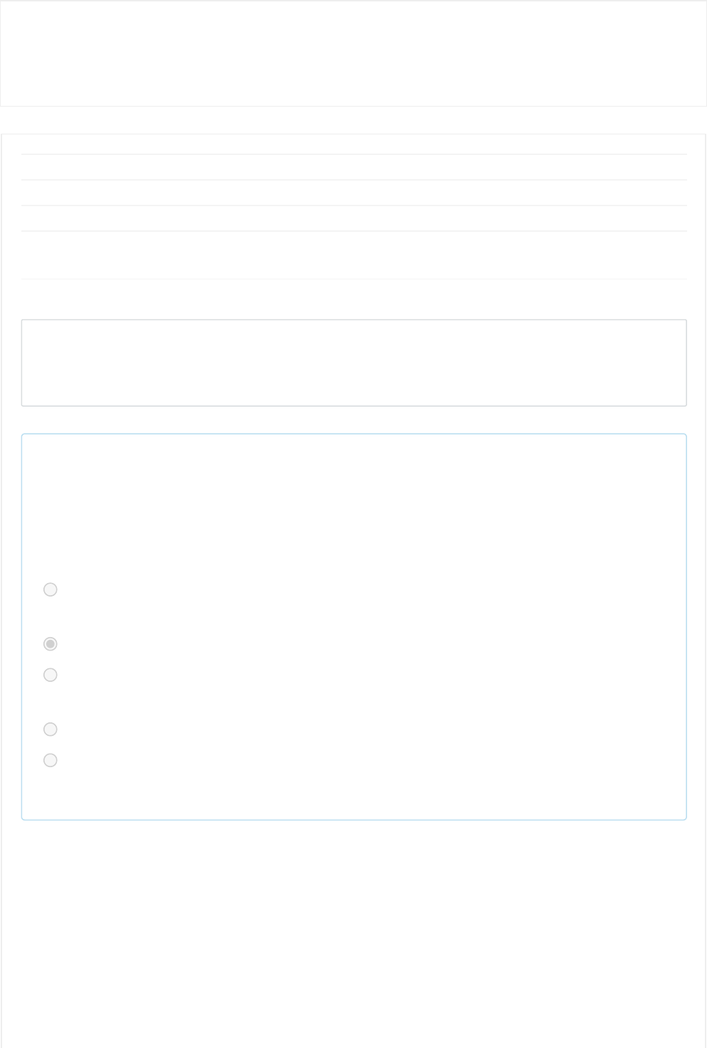 24/03/2023, 19:46 PROVA PRESENCIAL - ONLINE AVP2023/1 https://moodle.ead.unifcv.edu.br/mod/quiz/review.php?attempt=2431464 1/11 Painel / Meus cursos / Matemática Financeira / AVALIAÇÕES DO PERÍODO 2023/1 / PROVA PRESENCIAL - ONLINE AVP2023/1 Iniciado em sexta, 24 mar 2023, 16:35 Estado Finalizada Concluída em sexta, 24 mar 2023, 19:45 Tempo empregado 3 horas 10 minutos Avaliar 5,60 de um máximo de 6,00(93%) Questão 1 Correto Atingiu 0,40 de 0,40 Fabiane irá fazer um empréstimo de R$ 100.000,00 com prazo para pagamento de 25 meses e juros simples de 15% ao trimestre, qual o valor da taxa de juros mensal? Escolha uma opção: a. 1,25% a.m. b. 5,00% a.m. c. 1,80% a.m. d. 0,60% a.m. e. 1,60% a.m. https://moodle.ead.unifcv.edu.br/my/ https://moodle.ead.unifcv.edu.br/course/view.php?id=520 https://moodle.ead.unifcv.edu.br/course/view.php?id=520#section-9 https://moodle.ead.unifcv.edu.br/mod/quiz/view.php?id=42227 24/03/2023, 19:46 PROVA PRESENCIAL - ONLINE AVP2023/1 https://moodle.ead.unifcv.edu.br/mod/quiz/review.php?attempt=2431464 2/11 Questão 2 Correto Atingiu 0,40 de 0,40 Helen está com dificuldades para calcular seu Fluxo de Caixa (VPL), você se dispôs a ajuda-la. Observe as tabelas abaixo e assinale a alternativa correta do VPL a uma taxa efetiva de 4% ao ano. ANO INVESTIMENTO 0 -R$ 200.000,00 1 R$ 100.000,00 2 R$ 150.000,00 3 R$ 130.000,00 TAXA EFETIVA 4% VPL Escolha uma opção: a. R$ 92.200,00 b. R$ 101.200,00 c. R$ 115.600,02 d. R$ 150.406,80 e. R$ 100.000,00 24/03/2023, 19:46 PROVA PRESENCIAL - ONLINE AVP2023/1 https://moodle.ead.unifcv.edu.br/mod/quiz/review.php?attempt=2431464 3/11 Questão 3 Correto Atingiu 0,40 de 0,40 Pedro irá comprar uma televisão de R$ 2.300,00, mas irá parcelar em 12 meses com juros simples de 2% ao trimestre, qual o valor final que Pedro pagou na televisão? Escolha uma opção: a. R$ 2.184,00 b. R$2.484,00 c. R$ 184,00 d. R$ 2.300,00 e. R$ 4.484,00 Questão 4 Correto Atingiu 0,40 de 0,40 Maria irá fazer um empréstimo de R$ 200.000,00 com prazo para pagamento de 180 meses e juros simples de 2% ao mês, qual o valor dos juros a serem pagos? Escolha uma opção: a. R$ 360.000,00 b. R$ 4.000,00 c. R$ 720.000,00 d. R$ 560.000,00 e. R$ 920.000,00 24/03/2023, 19:46 PROVA PRESENCIAL - ONLINE AVP2023/1 https://moodle.ead.unifcv.edu.br/mod/quiz/review.php?attempt=2431464 4/11 Questão 5 Correto Atingiu 0,40 de 0,40 Roberto está procurando um smartphone na loja TelePhones, e o vendedor está fazendo uma promoção em um Super S45, sabe-se que esse smartphone custa R$ 2.600,00, mas que se Roberto pagar à vista, o smartphone irá custar R$ 2.350,00. Qual é taxa de desconto financeiro cobrado pela loja TelePhones? Assinale a alternativa correta: Escolha uma opção: a. 10,64% b. 90,38% c. 0,9038% d. 10,00% e. 5,00% Questão 6 Correto Atingiu 0,40 de 0,40 Paulo irá financiar uma casa de R$ 2.000.000,00, parcelada em 360 meses com juros compostos de1,75% ao ano, qual o valor final que Paulo pagou pela casa? Escolha uma opção: a. R$ 2.000.000,00 b. R$ 365.600,26 c. R$ 2.365.600,26 d. R$3.365.600,26 e. R$ 1.365.600,26 24/03/2023, 19:46 PROVA PRESENCIAL - ONLINE AVP2023/1 https://moodle.ead.unifcv.edu.br/mod/quiz/review.php?attempt=2431464 5/11 Questão 7 Correto Atingiu 0,40 de 0,40 Theus deseja calcular a TIR referente ao seu investimento na sua empresa de Álcool em gel, a uma taxa efetiva de 2,6% ao ano. Conforme Tabela abaixo de investimentos, assinale a alternativa correta que corresponde ao valor da TIR: ANO INVESTIMENTO 0 -R$ 11.000,00 1 R$ 1.000,00 2 R$ 5.000,00 3 R$ 4.000,00 4 R$ 2.000,00 5 R$ 6.000,00 TAXA EFETIVA 2,6% TIR Escolha uma opção: a. 19,01% b. 1,5% c. 2,22% d. 6,9% e. 16,34% 24/03/2023, 19:46 PROVA PRESENCIAL - ONLINE AVP2023/1 https://moodle.ead.unifcv.edu.br/mod/quiz/review.php?attempt=2431464 6/11 Questão 8 Correto Atingiu 0,40 de 0,40 Maria Helena optou por deixar o seu dinheiro no investimento Delmon. Considera-se que os depósitos de Maria são consecutivos e iguais a R$232,00 cada por 17 meses, em que a taxa de juros é de 2,75% a.m. Qual será o valor futuro de Maria Helena? Escolha uma opção: a. R$ 9.512,21 b. R$ 3.600,00 c. R$ 5.600,00 d. R$ 2.300,03 e. R$ 4.943,33 24/03/2023, 19:46 PROVA PRESENCIAL - ONLINE AVP2023/1 https://moodle.ead.unifcv.edu.br/mod/quiz/review.php?attempt=2431464 7/11 Questão 9 Correto Atingiu 0,40 de 0,40 Laila está com dificuldades para calcular seu Fluxo de Caixa (VPL), você se dispôs a ajuda-la. Observe as tabelas abaixo e assinale a alternativa correta do VPL a uma taxa efetiva de 6,2% ao ano. ANO INVESTIMENTO 0 R$ -520.000,00 1 R$ 100.000,00 2 R$ 150.000,00 3 R$ 250.000,00 4 R$ 300.000,00 TAXA EFETIVA 6,2% VPL Escolha uma opção: a. R$ 139.203,46 b. R$ 125.879,98 c. R$ 151.723,32 d. R$ 185.496,31 e. R$ 204.853,74 24/03/2023, 19:46 PROVA PRESENCIAL - ONLINE AVP2023/1 https://moodle.ead.unifcv.edu.br/mod/quiz/review.php?attempt=2431464 8/11 Questão 10 Correto Atingiu 0,40 de 0,40 Maria possui uma empresa de esmaltes e vendeu em um dia R$30.000,00 com o recebimento em 40 dias. Sendo que a taxa de desconto bancário é de 2%. Qual será o valor recebido de R$30.000,00 em 40 dias? Escolha uma opção: a. R$ 29.400,00 b. R$ 20.000,00 c. R$ 35.000,00 d. R$ 15.000,00 e. R$ 40.000,00 Questão 11 Correto Atingiu 0,40 de 0,40 Calcule o custo efetivo para o período de quatro meses de uma determinada operação. Em que, tem-se a taxa de desconto bancário nominal a 3,25% ao mês, o IOF a 0,025% ao dia e um prazo de desconto de 120 dias. Escolha uma opção: a. 9,5% a.b b. 19,05% a.b c. 24,66% a.b d. 15% a.b e. 17,02% a.b 24/03/2023, 19:46 PROVA PRESENCIAL - ONLINE AVP2023/1 https://moodle.ead.unifcv.edu.br/mod/quiz/review.php?attempt=2431464 9/11 Questão 12 Incorreto Atingiu 0,00 de 0,40 A empresa Maria Helen emitiu R$600.000,00 em notas promissórias por 6 meses (180 dias). Além disso, sabe-se que calculando com descontos e outras despesas, a empresa possui um valor líquido recebido de 