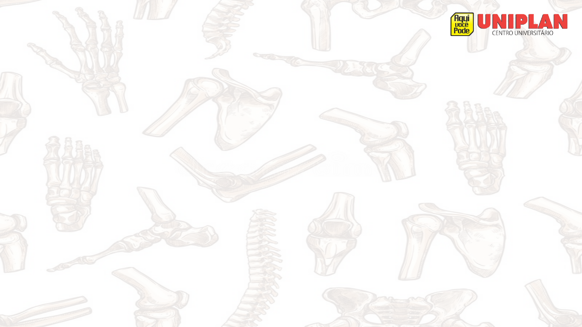 CONTINUANDO O SISTEMA ESQUELÉTICO CONTINUAÇÃO DOS OSSOS DO CRÂNIO, OSSOS DA CAIXA TORÁCICA, OSSOS DA COLUNA TORÁCICA, CINTURA ESCAPULAR E MEMBROS SUPERIORES Professora Rielle Mesquita CONTINUAÇÃO DO CÂNIO CAVIDADES DO CRÂNIO Fossa Anterior Fossa Média Fossa Posterior Forames, canais, sulcos e cristas importantes para a neuroanatomia* ACIDENTES ANATÔMICOS DENTRO DO CRÂNIO FORAMES CANAIS SULCOS CRISTAS Servem para abrigo das estruturas encefálicas: CÉREBRO, TÁLAMO, MESENCÉFALO, CEREBELO, PONTE E BULBO. FONTANELAS ou FONTÍCULOS Espaços amolecidos entre os ossos do crânio (suturas) dos recém-nascidos. 6 FONTANELAS Anterior Posterior Esfenoidal (2) Mastoidea (2) OSSOS DA CAIXA TORÁCICA Função: abrigo de órgãos Estruturas: Costelas, cartilagens costais, esterno, vértebras. 12 pares de costelas com suas cartilagens costais e o esterno. As costelas se articulam com as 12 vértebras torácicas (t1 a t2). Constituídos por 12 pares de costelas ligadas umas às outras pelos músculos intercostais. São ossos chatos e encurvados que se movimentam durante a respiração. COSTELAS 12 pares de costelas com suas cartilagens costais e o esterno. As costelas se articulam com as 12 vértebras torácicas (t1 a t12). 7 VERDADEIRAS 3 FALSAS 2 FLUTUANTES As costelas se articulam em 2 locais na vértebra: no processo transverso e no corpo vertebral. Coluna Vertebral A coluna é dividida em Cervical, Torácica, Lombar, Sacro e Cóccix 33 vértebras Estruturas diferentes Vértebras separadas por discos intervertebrais AINDA VAMOS EXPLORAR ESSE ASSUNTO. Coluna Vertebral A coluna é formada por vértebras que são ligadas entre si por articulações (atlantoaxial e interapofisárias) 7 cervicais (primeira atlas, segunda áxis) 12 torácicas – articulam-se com as costelas 5 lombares – corpos maiores 5 sacrais – fundidas em um único osso. Apoio para a cintura pélvica 4 coccígeas – pequenas e fundidas no início da idade adulta. Esterno Manúbrio Corpo Processo Xifóide Incisura Jugular Incisura Clavicular Incisura costal Ângulo esternal CINTURA ESCAPULAR Cíngulo do membro superior Une o esqueleto apendicular ao esqueleto axial Formada pela clavícula e escápula. A clavícula é longa e estreita, se articula com o esterno em uma extremidade e com a escápula, na outra. A escápula é um osso chato e triangular que se articula com o úmero (glenoumeral) CLAVÍCULA Face articular acromial Extremidade acromial Tubérculo conóide Corpo Extremidade esternal Face articular esternal ESCÁPULA Bordas (medial, lateral e superior) Ângulos (inferior e superior) Espinha da escápula Fossas supra e infraespinhal Acrômio Incisura da escápula Processo Coracóide Cavidade Glenóide Tubérculos supra e infraglenoidal Colo da escápula Fossa Subescapular (anterior) MEMBROS SUPERIORES BRAÇO, ANTEBRAÇO, PUNHO, MÃOS E DEDOS BRAÇO ÚMERO único osso do braço Cabeça Colo anatômico Colo Cirúrgico Tubérculos maior e menor Sulco intertubecular Crista do tubérculo maior Crista do tubérculo menor Tuberosidade deltoideana Sulco do nervo radial Côndilo Epicôndilo medial Epicôndilo lateral Fossa Coronoidea Fossa Radial Crista Supraepicondilar medial e lateral Tróclea Capítulo FOSSA DO OLÉCRANO RÁDIO Osso lateral do antebraço Circunferência articular + colo do rádio = CABEÇA DO RÁDIO (proximal) Tuberosidade do rádio Processo estiloide do rádio Crista supraestiloidea Face articular carpal (Escafoide) Inisura Ulnar Tubérculo dorsal ULNA Osso medial do antebraço Olécrano Incisura troclear Processo coronóide Tuberosidade da ulna Cabeça da ulna (distal) Circunferência articular Processo Estiloide da ulna Ossos do Carpo Ossos curtos que formam a parte distal do punho Favorecem a funcionalidade da mão BIZU: Escafoide, semilunar, piramidal, pisiforme Trapézio, trapezoide, capitato e hamato Pisiforme mais palpável e menor. Trapézio se articula com o 1° metacarpo. METACARPOS Ossos entre os pequenos ossos do carpo e as falanges. as mãos possuem cinco destes ossos em cada uma. eles são importantes para as mãos, pois otimizam o movimento de preensão. CABEÇA CORPO BASE FALANGES Proximais Médias Distais Formam os dedos CABEÇA CORPO BASE PRÓXIMA AULA COLUNA VERTEBRAL CINTURA PÉLVICA MEMBROS INFERIORES DÚVIDAS, PERGUNTAS ? LEMBREM-SE MEUS AMORES: VAI DAR CERTO! Pra descontrair Ótima semana de estudos!