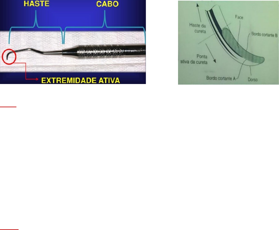INSTRUMENTAL EM PERIODONTIA Requisitos do Instrumental em Periodontia: 1-Delicado, confortável, forma adequada; (precisa entrar de forma suave) 2-Rígido sem ser grosseiro; (Para remover biofilme, cálculo dental) 3- Permitir manipulação e liberdade de movimento sem esforço excessivo; 4- Ponta ativa no prolongamento do longo eixo do cabo; 5- Ser afiado com facilidade e rapidez (para raspadores). * Quanto pior a qualidade do aço do instrumento mais rápido se desgasta. OS INSTRUMENTOS PODEM SER: - Manuais -Ultrassônicos Todos os instrumentos periodontais são divididos em três partes: CABO Variações em: →DIÂMETRO: Empunhadura confortável. Existem cabos finos, médios e grossos. Com os grossos se consegue raspar melhor, com mais eficiência e cansa menos. Com o fino é preciso fazer mais força, tem muita dificuldade e cansa bem mais rápido. Para instrumentos de raspagem não usar cabo fino. →TEXTURA: Na periodontia, na maioria das vezes, trabalha-se com sangue e isso faz com que escorregue muito, então o LISO não é recomendado, ESTRIADO – empunhadura segura. →ESTRUTURA: Instrumento OCO vai dar maior sensibilidade tátil, já com os instrumentos MACIÇOS isso não acontece, porém para raspar preferir os instrumentos maciços. *CABOS GROSSOS, ESTRIADOS E MACIÇOS para uma boa raspagem. * Os cabos também servem para indicar os instrumentos. HASTE CARACTERISTICAS: -Localizada entre o cabo e extremidade ativa; - Mais fina que o cabo; * Hastes curtas não chegam em bolsas profundas *Hastes retas não chegam em dentes posteriores * Quando acaba a Haste e começa a extremidade ativa, essa parte fica paralela ao longo eixo do dente. Se ela estiver paralela ao longo eixo do dente o ângulo de corte está correto e só raspar, se não estiver correta não consegue raspar. VARIAÇÕES: •COMPRIMENTO: - Longas→ posteriores e anteriores com recessão ou bolsa profunda; - Curtas→ anteriores •ANGULAÇÃO: -Menos Anguladas→Anteriores - Mais Anguladas→Posteriores EXTREMIDADE ATIVA •PARTE DO INSTRUMENTO QUE ENTRA EM ATIVIDADE: -Exploração e sondagem; - Remoção de cálculo; (Instrumentos raspadores) •FORMA: - Classificação do instrumento; - Emprego do instrumento; • NÚMERO DE EXTREMIDADES ATIVAS: - 1 extremidade ativa→ ponta simples; - 2 extremidades ativas → ponta dupla; •PONTAS FIXAS OU REMOVÍVEIS *A maioria dos instrumentos, principalmente os de raspagem são de ponta de pontas duplas e fixas. *Curetas de MC Call tem dois ângulos de corte, as curetas de Gracey tem apenas um ângulo de corte. * ÂNGULO DE CORTE= BORDO CORTANTE. IDENTIFICAÇÃO DOS INSTRUMENTOS •IDENTIFICADOS POR: - Classificação geral; - Nome; - Número; - Fabricante; CLASSIFICAÇÃO GERAL •USO DO INSTRUMENTO: - sondas exploradoras; - sondas periodontais; - foices; - curetas; NÚMERO •Curetas de Mc Call: - nº 13-14 - nº 17-18 •Curetas de Gracey: - nº 1-2 - nº 7-8 - nº 3-4 - nº 11-12 - nº5-6 - nº 13-14 INSTRUMENTOS EXPLORADORES •3 TIPOS: - PUROS: explorador nº 17, nº 23, Orban. - MEDIDORES: sonda periodontal milimetrada e Sonda de Nabers - MARCADORES: Krane-Kaplan (p/ gengivectomia) *Na periodontia o explorador deve ser pontiagudo, não pode ser rombo. EXPLORADOR PURO •INDICAÇÃO: - Melhor instrumento para detectar cálculos supra e subgengivais; * - Detectar cáries, descalcificações, irregularidades na superfície do cemento, anormalidades na morfologia dental; - examinar contorno de restaurações; IMPORTÂNCIA: -AVALIAR A SUPERFICIE RADICULAR ANTES, DURANTE E APÓS A RASPAGEM E APLAINAMENTO RADICULAR PARA: → Detectar a presença, distribuição (região que está) e a quantidade de cálculo; → Avaliar a qualidade da superfície radicular após a raspagem; CARACTERÍSTICAS: - delgado e flexível; - corte transversal circular; - extremidade aguda; - parte final → ponta; - PONTA ATIVA → milímetros finais; - EXTREMIDADES: • simples; • dupla: desenhos iguais ou diferentes; *Sem cálculo quando passar o explorador vai sentir tudo liso, vai passar facilmente. Quando tem cálculo tem mais dificuldade de passar, sente crepitação, aspereza. SONDA PERIODONTAL •INDICAÇÃO: sondar (achar) e medir profundidade de bolsas periodontais, sondar e medir perda de inserção; • IMPORTÂNCIA: DIAGNÓSTICO DA DOENÇA PERIODONTAL *Identifica se é gengivite ou periodontite. Se periodontite severa, moderada, generalizada, localizada. Tudo isso é em decorrência da sonda periodontal. *O instrumento periodontal que substitui a 49:25 é a Sonda periodontal. •CARACTERÍSTICAS: → EXTREMIDADE ATIVA: - milimetrada; (Sempre) - colorida; (Melhor para visualização) → SECÇÃO TRANSVERSAL: - triangular; - oval; - retangular; - cilíndrica; *As triangulares e retangulares são péssimas, pois machucam muito a gengiva(não usar). As cilíndricas são as melhores, podendo ser usadas também as ovais. *Sonda OMS tem essa bolinha para não machucar o epitélio juncional, suavizar a sonda. A sonda da Carolina do Norte vai até 15 mm. EMPREGO: Profundidade da bolsa periodontal é determinada introduzindo a sonda milimetrada paralela ao longo eixo do dente, entre o epitélio do sulco ou da bolsa periodontal e o dente, movendo-a suavemente até o epitélio juncional. SONDAGEM- Ponto de Contato SONDA PERIODONTAL GERAÇÃO DE SONDAS PERIODONTAIS: 1ª geração – convencionais; 2ª geração – pressão controlada; →consegue uniformizar todos os sítios com mesma pressão. 3ª geração – sonda computadorizada de pressão controlada (FLORIDA PROBE) → Software diz tudo da sondagem. PRESSÃO DE SONDAGEM: 20 a 25 gramas. SONDAGEM DE FURCAS SONDA DE NABERS: →BIFURCAÇÕES E TRIFURCAÇÕES → MOLARES INFERIORES (V e L) → FURCA VESTIBULAR – MOLARES SUPERIORES INSTRUMENTOS MANUAIS PARA RASPAGEM →FOICES →CURETAS: - UNIVERSAIS - ESPECÍFICAS FOICES *Não se usa foice em ambiente subgengival, ela é usada somente em ambiente supragengival. Não é utilizada na ve
