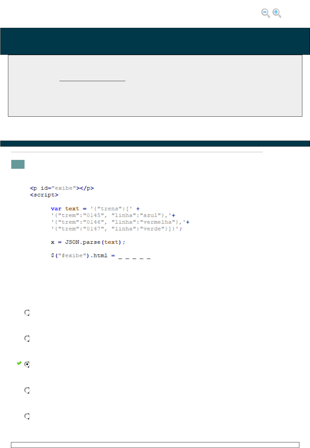 Considere o bloco de código abaixo que utiliza JavaScript e JSON.